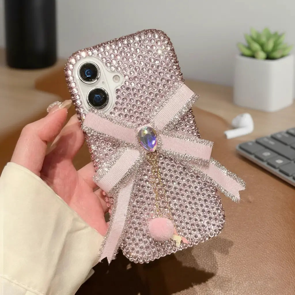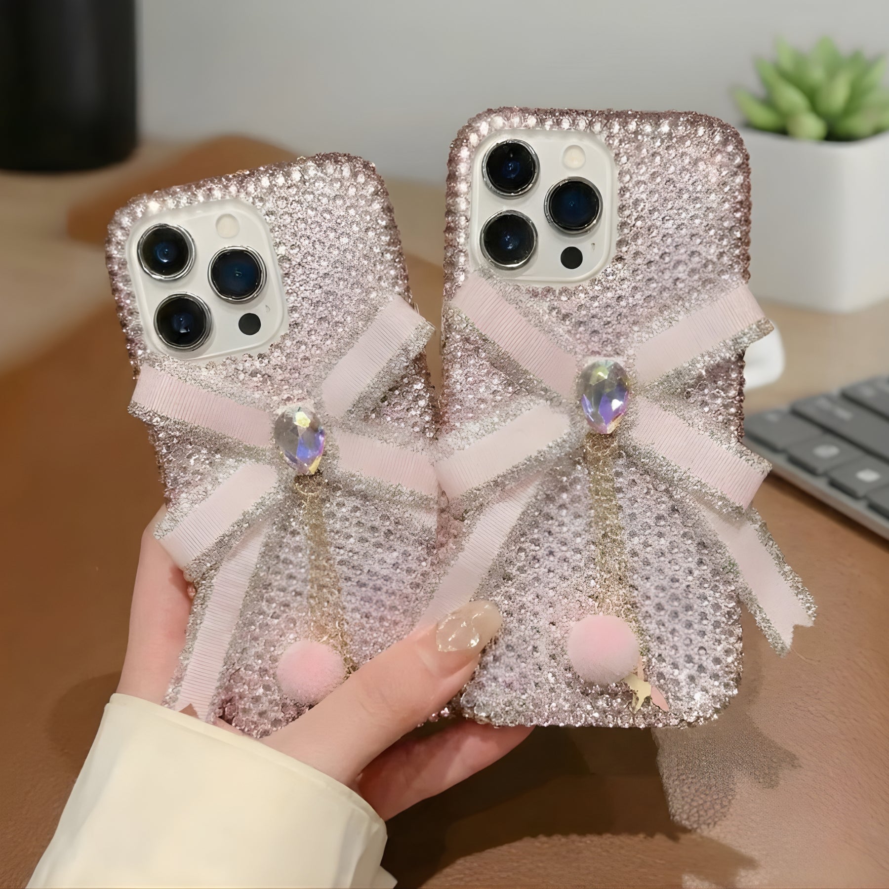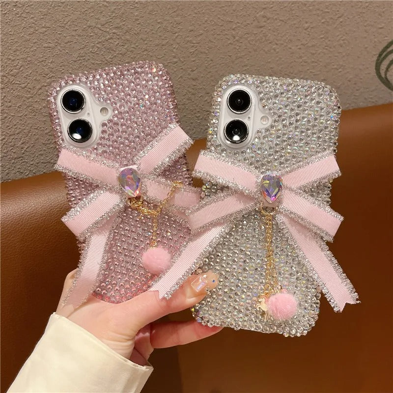 Turn every moment into a fairytale with the Princess Glow Ribbon Bow Rhinestone Case. Designed to sparkle with elegance, this case features a dazzling rhinestone finish, a soft satin ribbon bow, and a delicate charm accent that brings princess vibes to your everyday style.