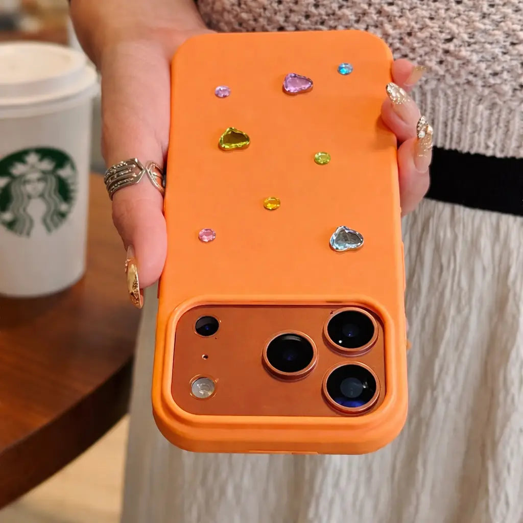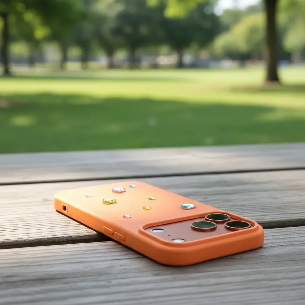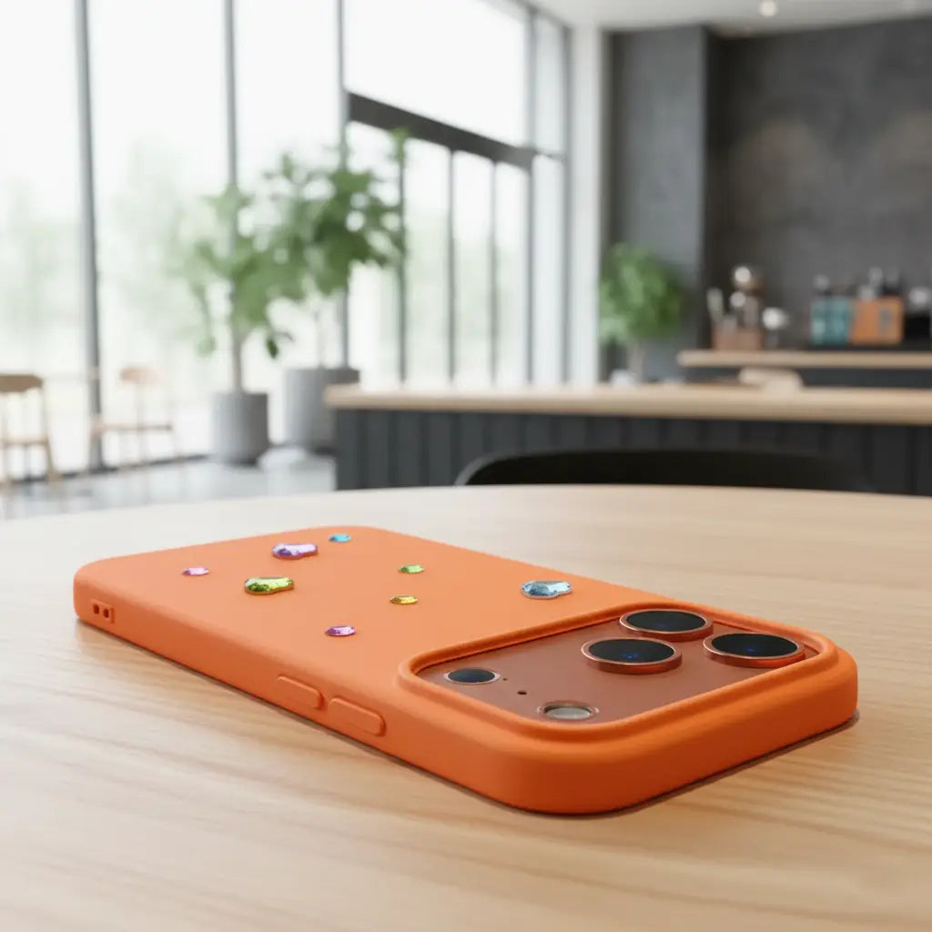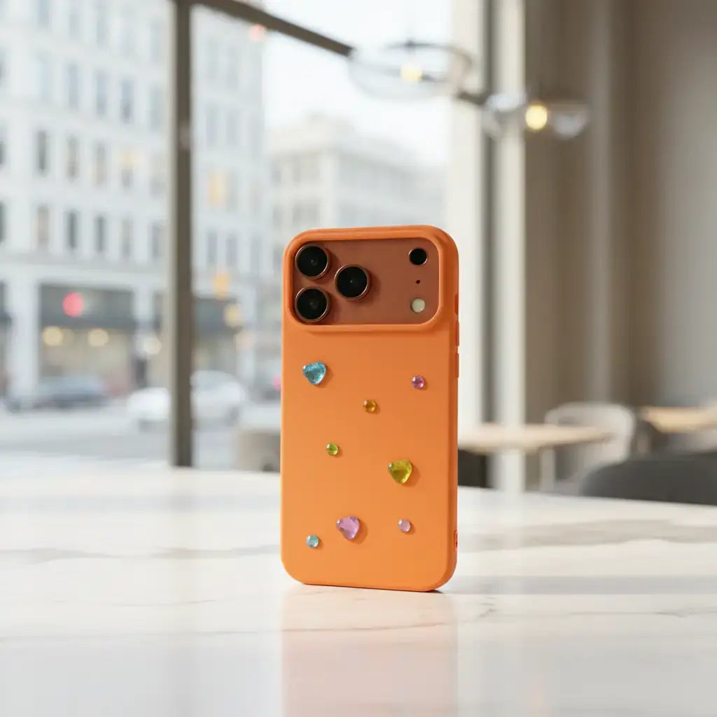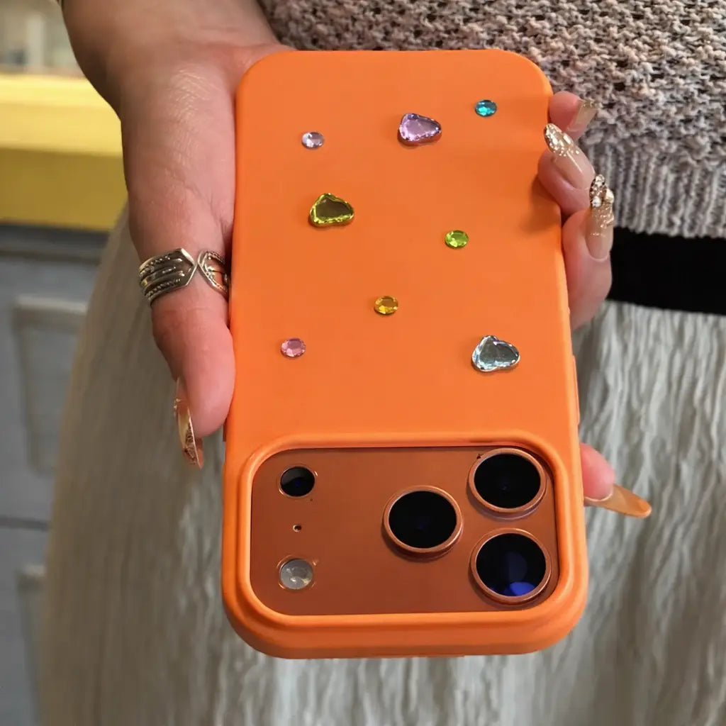 Brighten your everyday style with the Solar Pop Crystal Stud Case, a vibrant statement piece designed to stand out. Featuring a bold orange base accented with colorful crystal studs, this case blends playful charm with modern elegance.