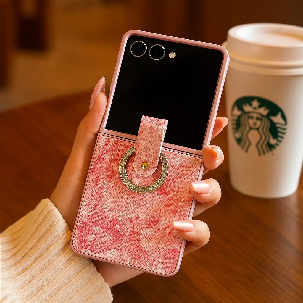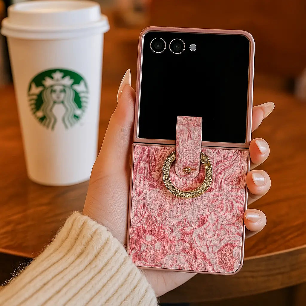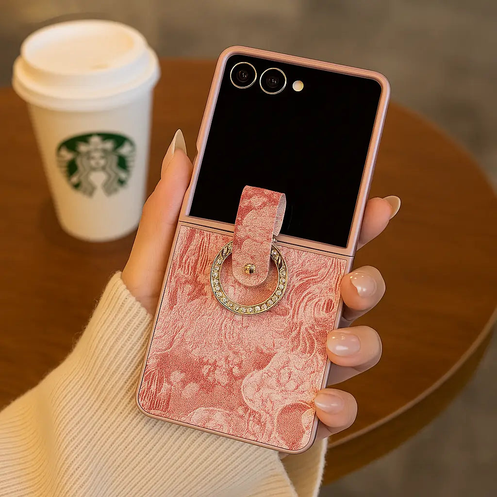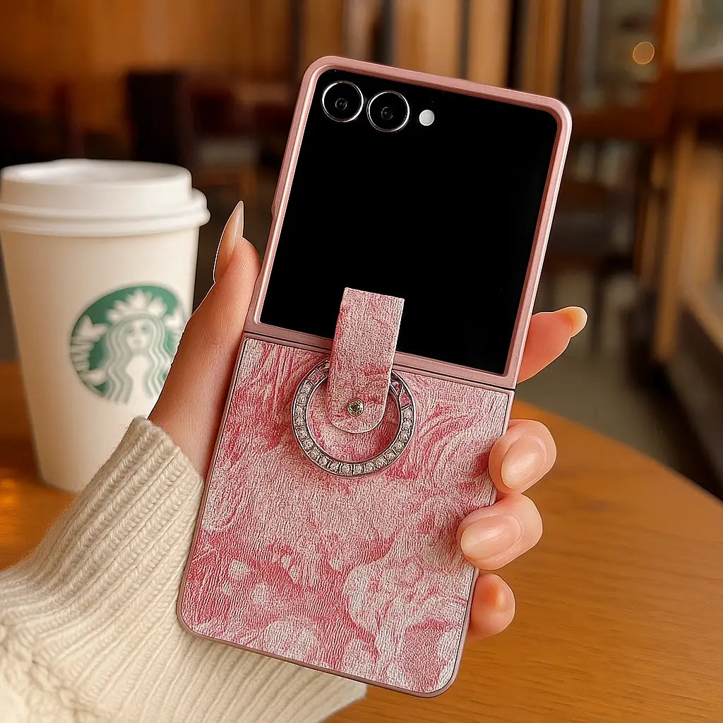 Designed with a textured rose pattern and a luxurious rhinestone-studded ring holder, this case captures the perfect blend of romance and sophistication. The soft blush tones and detailed vintage-style design give your phone a chic, feminine charm, while the sturdy build ensures reliable protection.