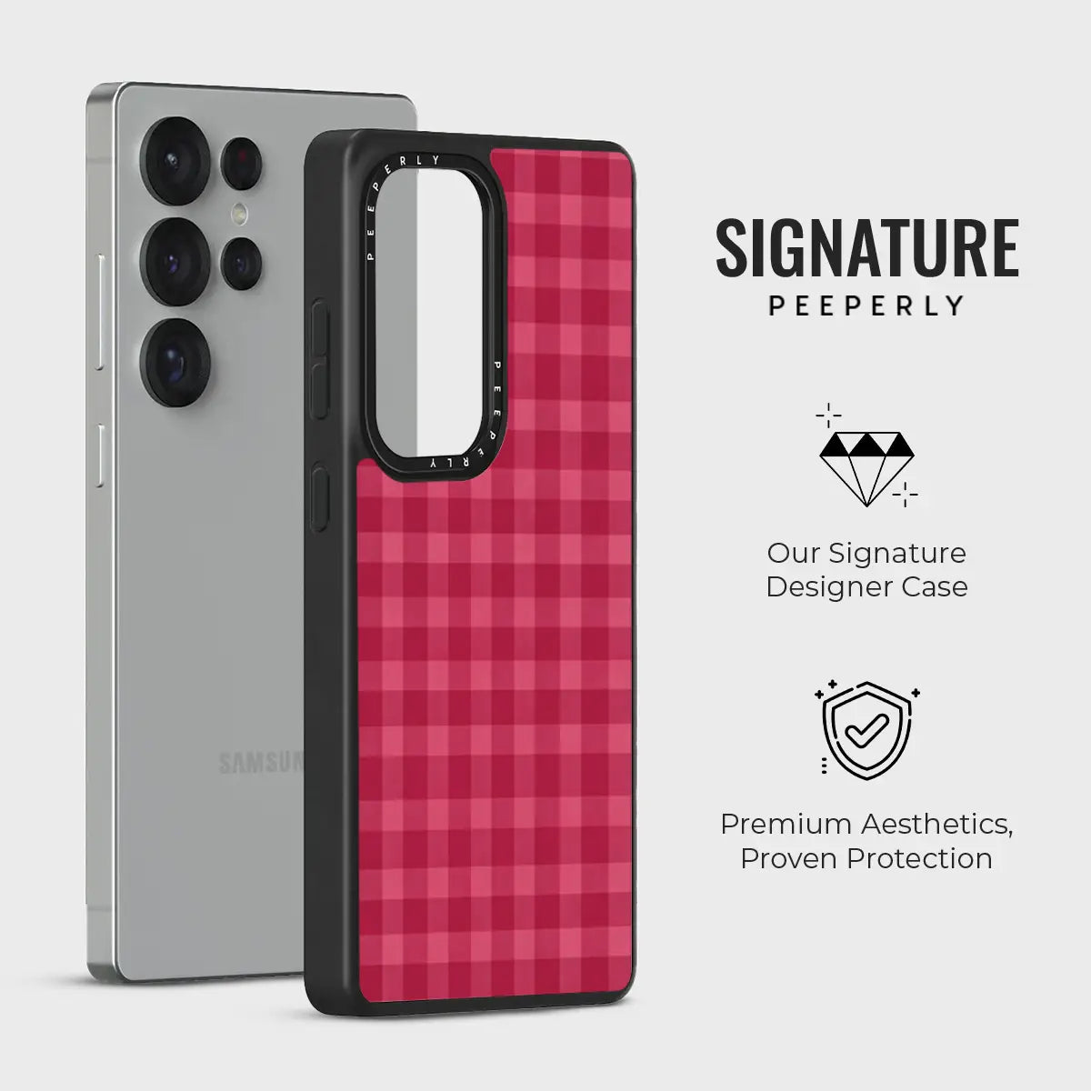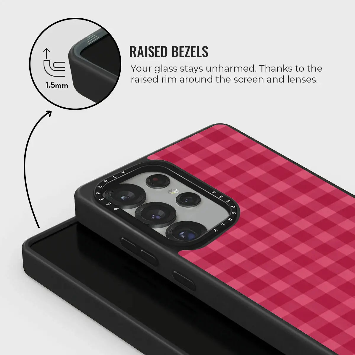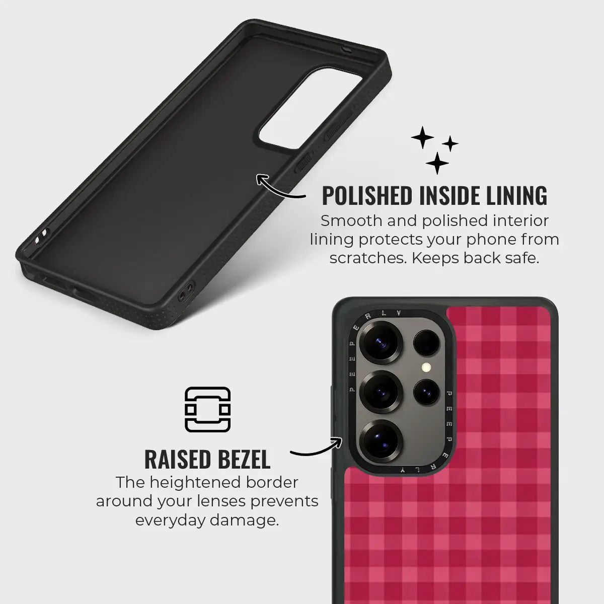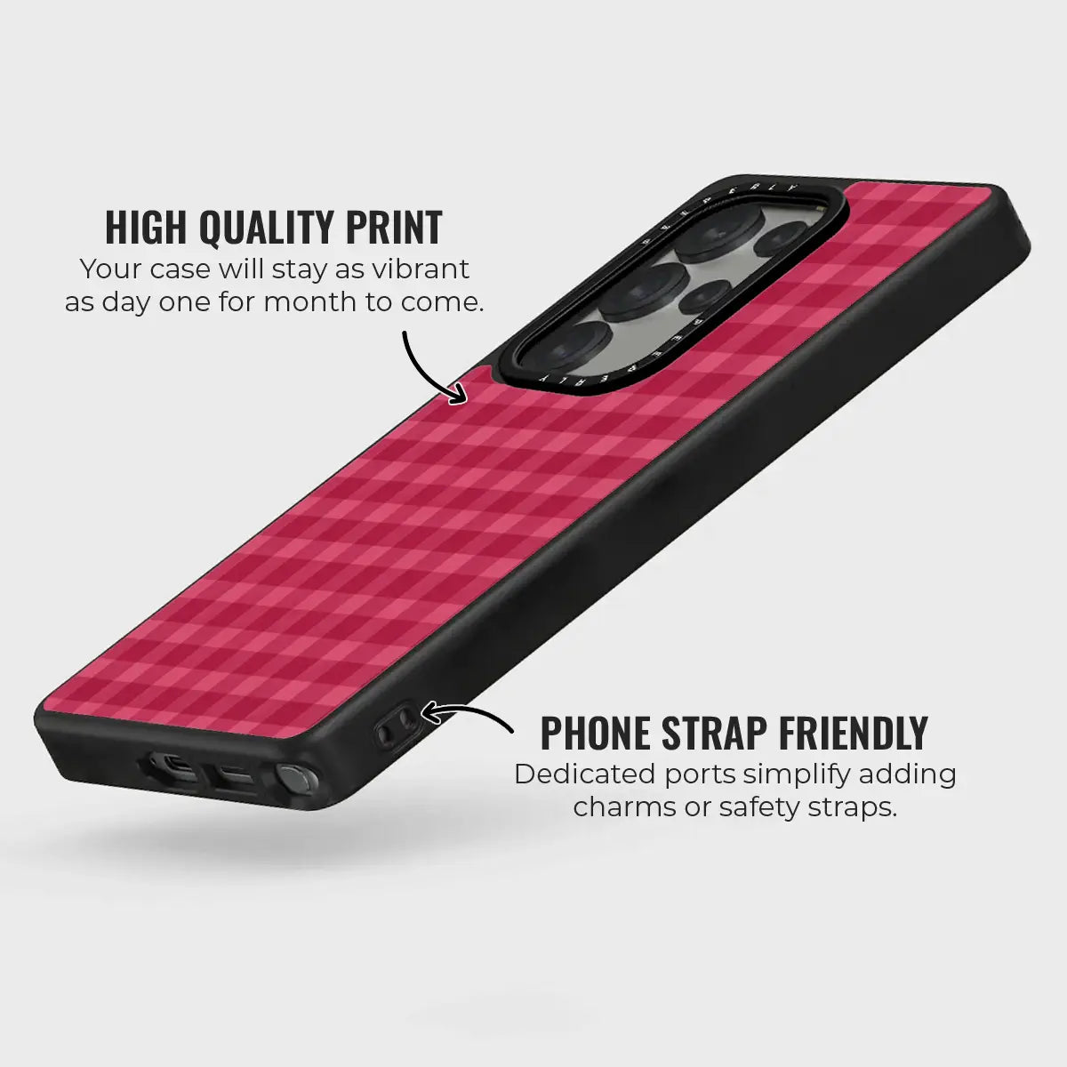 Sweet meets sophisticated with the Berry Gingham Case. Designed in a rich berry-red tone with a classic gingham pattern, this case adds timeless charm to your everyday style. The soft matte finish feels smooth in hand while the precise fit keeps your phone protected without adding bulk.