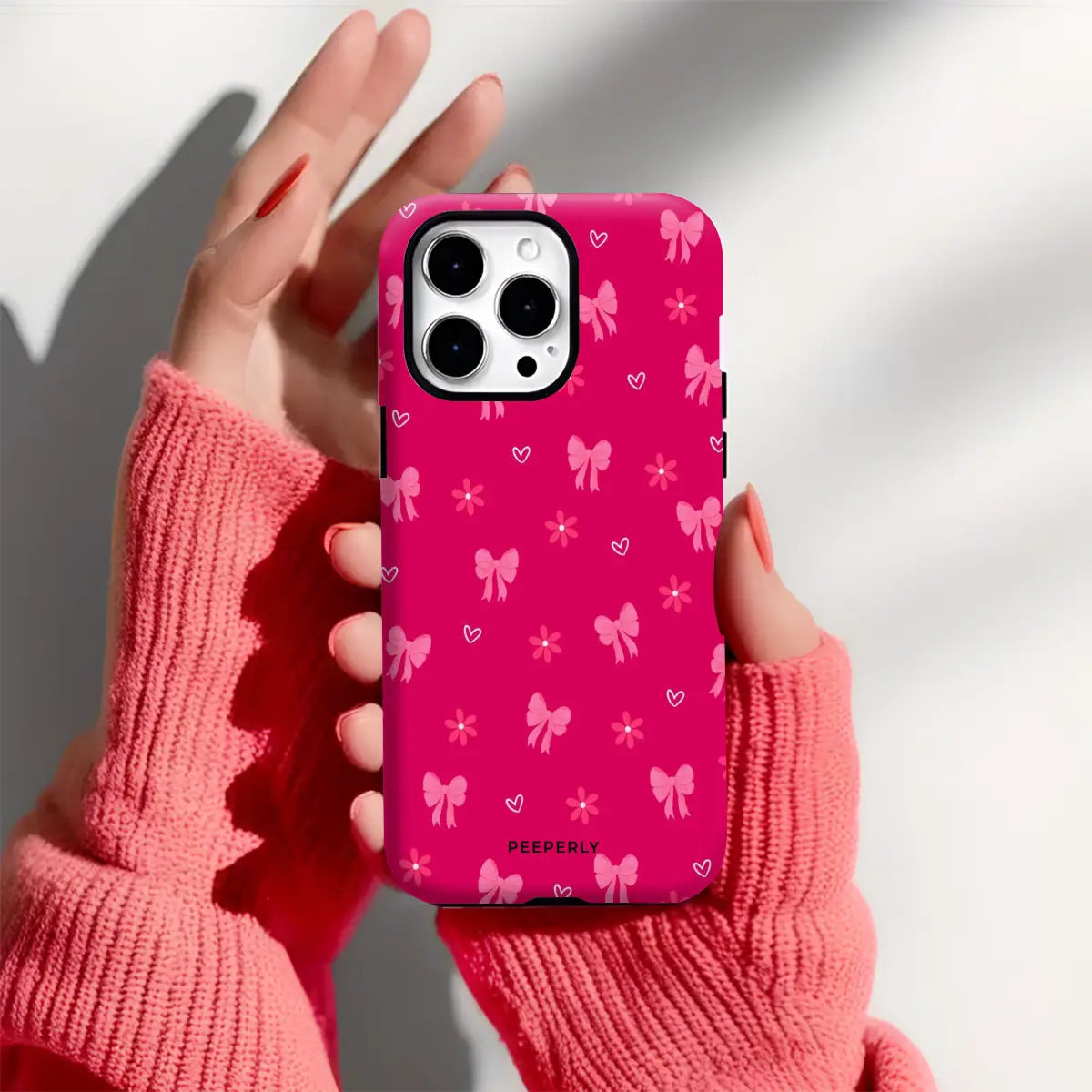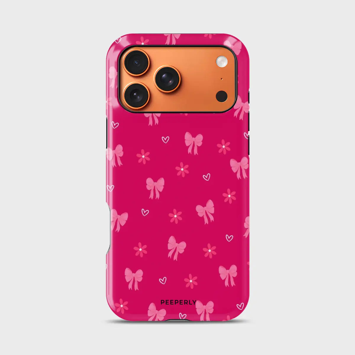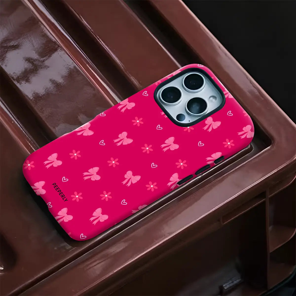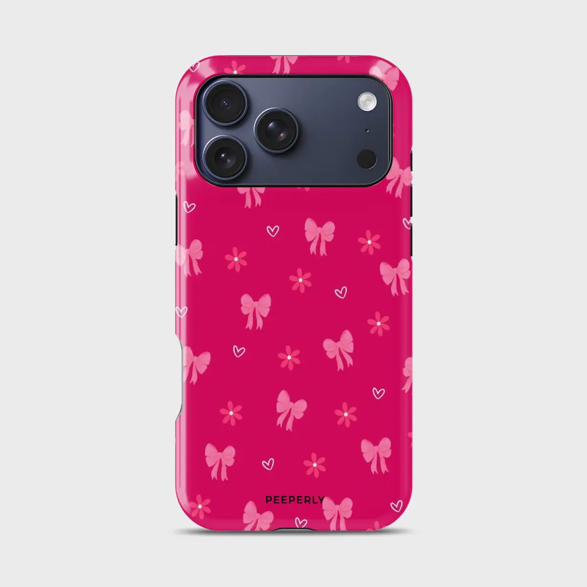 Bow Crush is a playful phone case featuring bright pink tones decorated with charming bow and heart details. The cheerful pattern adds a fun, flirty vibe while keeping the look cute and stylish. Finished with a smooth, durable design for everyday protection, Bow Crush is perfect for anyone who loves bold color and sweet, feminine charm.