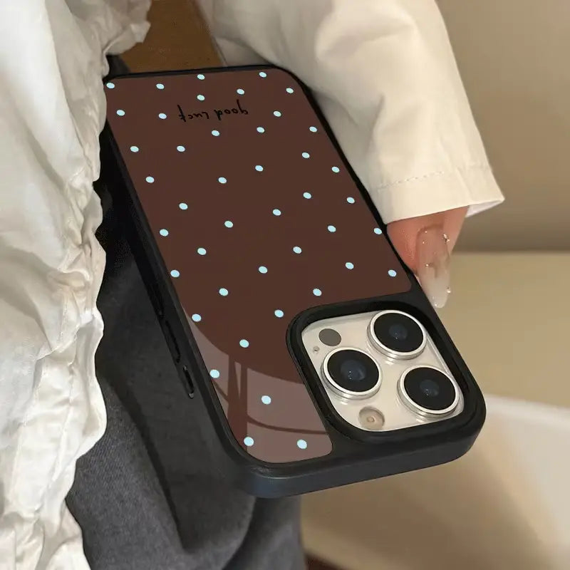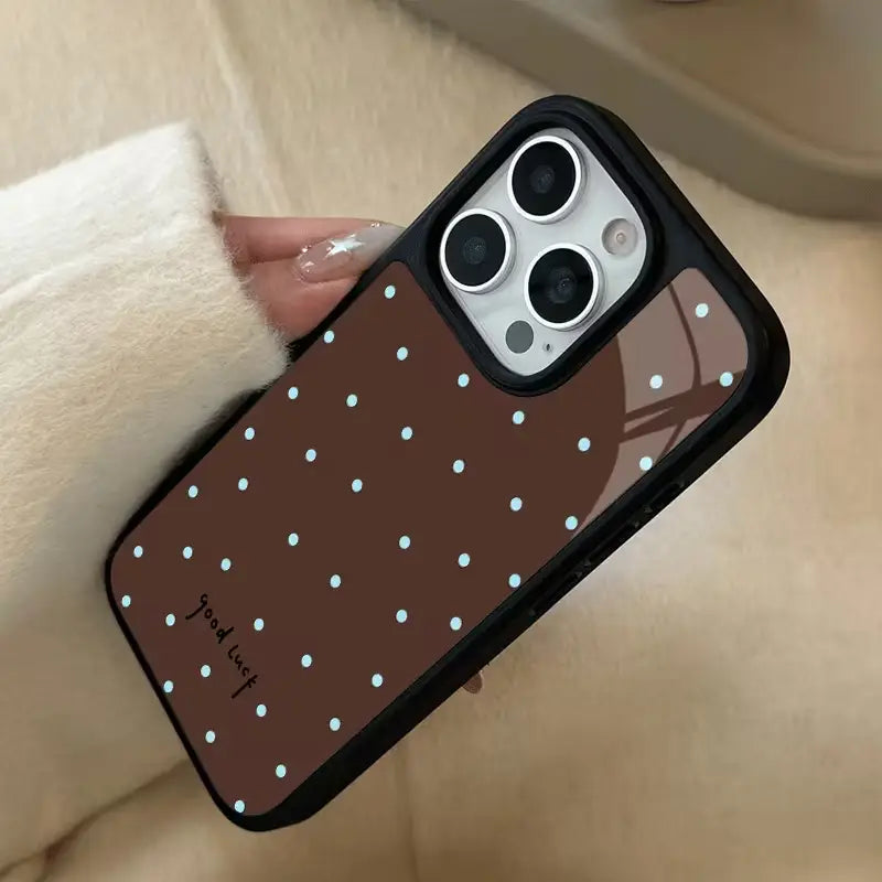 Warm, cozy, and effortlessly charming, the Brown Sugar Dots case blends rich mocha tones with soft pastel polka dots for a look that feels both playful and minimal. The subtle “good luck” detail adds a sweet, positive touch, making it perfect for everyday use.