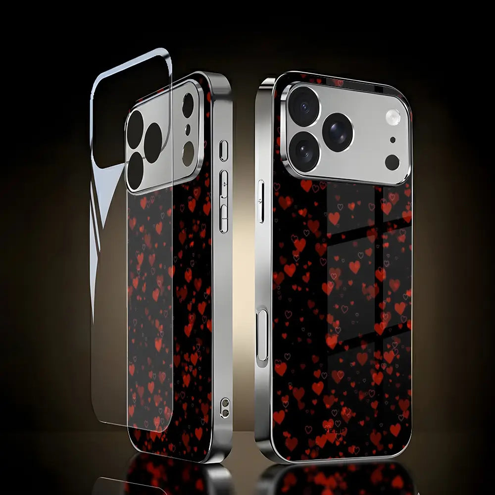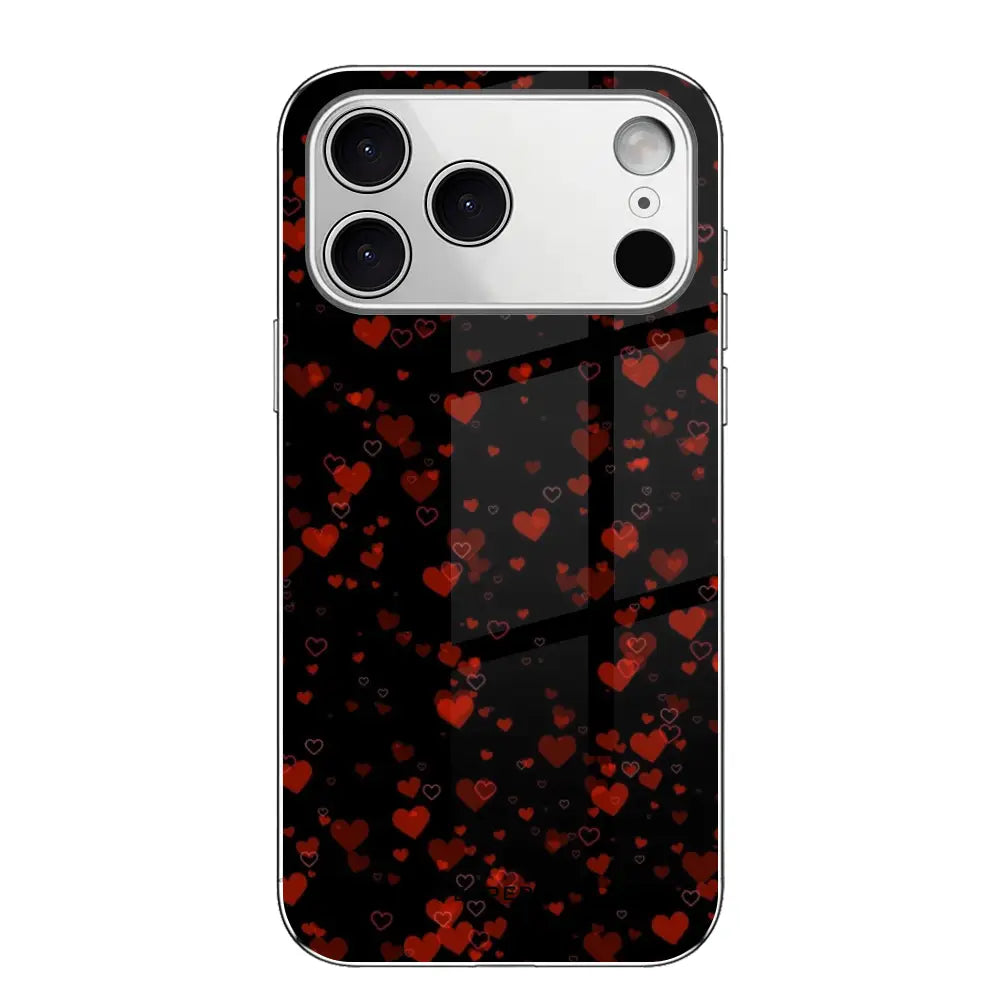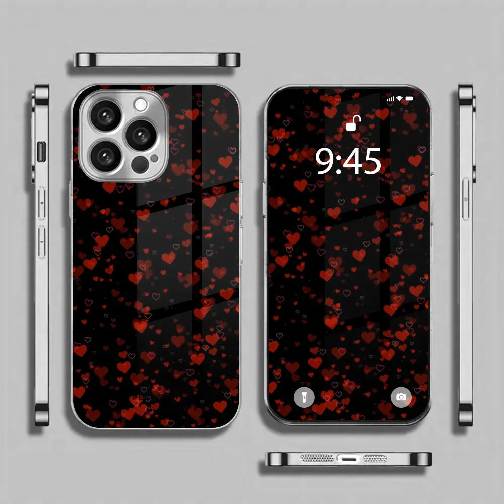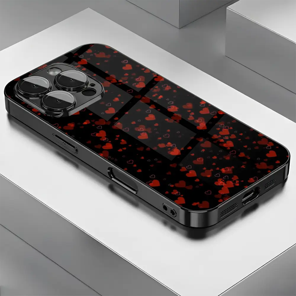 Ember Hearts is a bold, romantic phone case featuring glowing red hearts scattered across a deep black background. The contrast creates a dramatic, smoldering effect—like embers flickering in the dark.