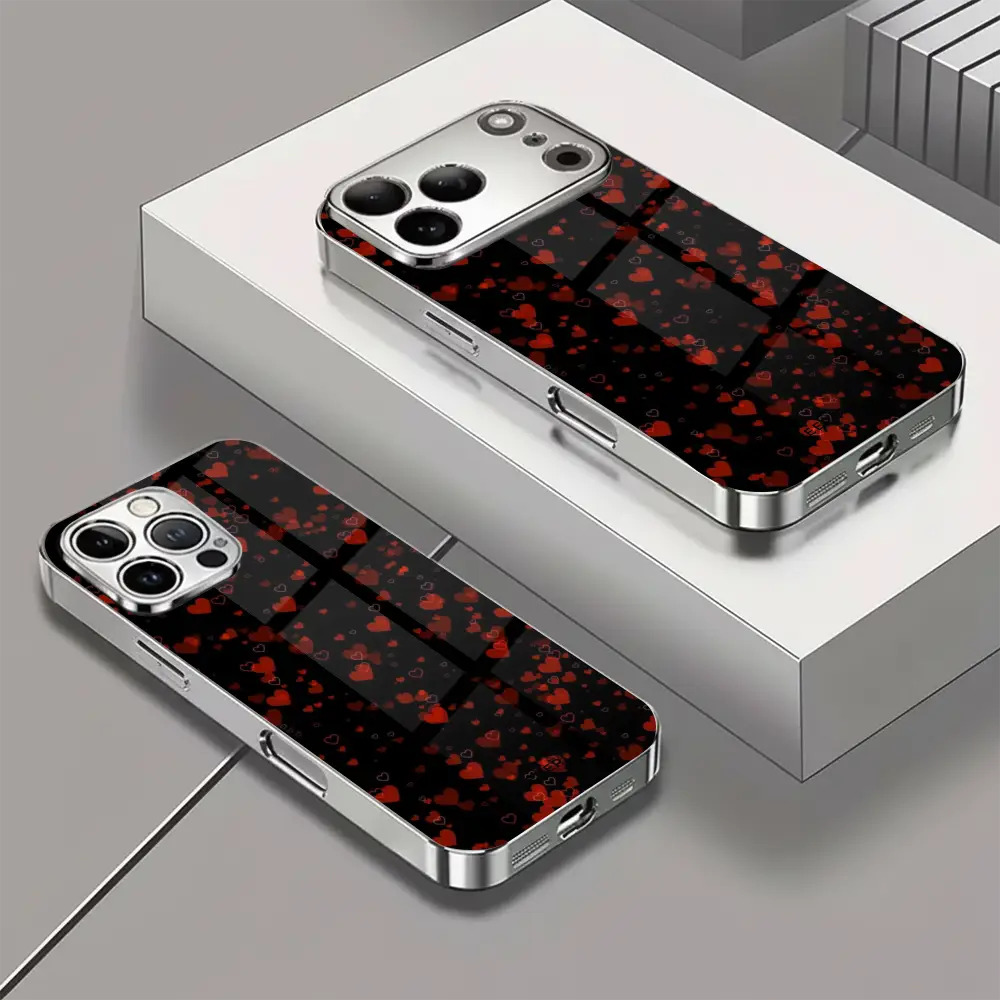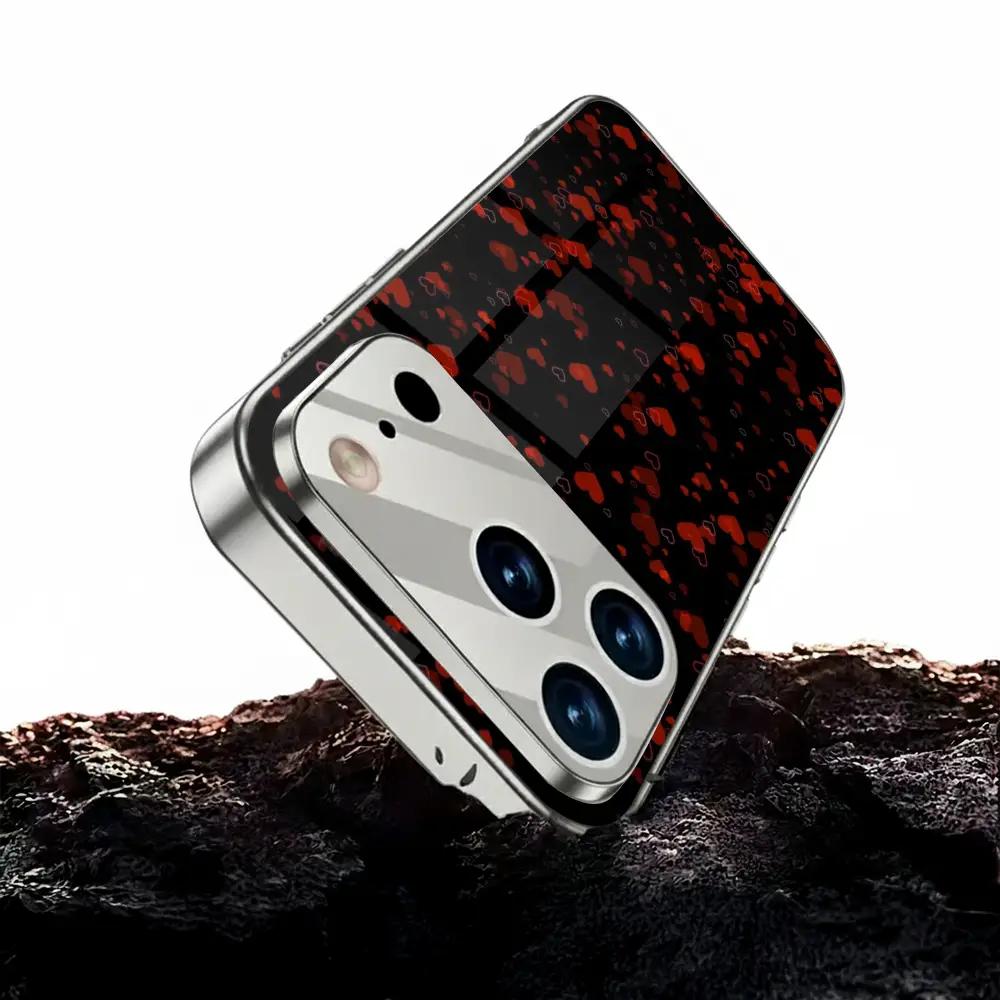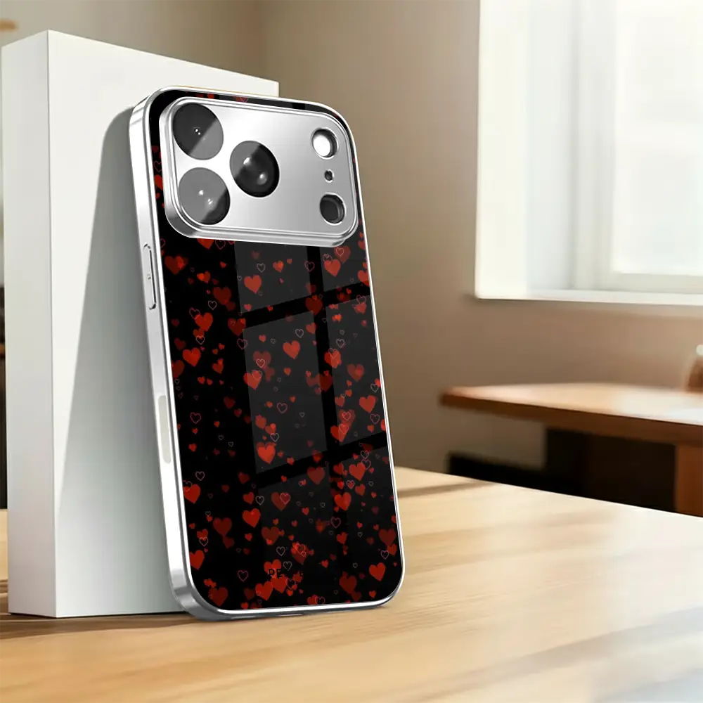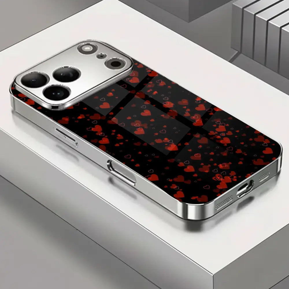 Ember Hearts is a bold, romantic phone case featuring glowing red hearts scattered across a deep black background. The contrast creates a dramatic, smoldering effect—like embers flickering in the dark.
