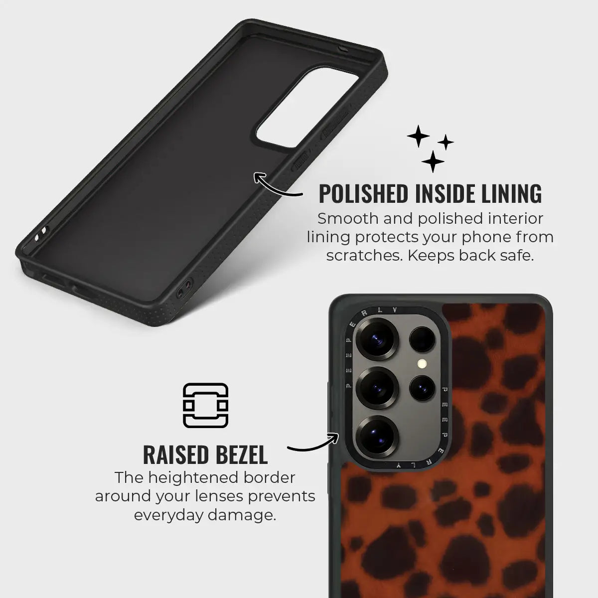 - Polished Inner Lining: Smooth lining shields the phone’s back from scratches.