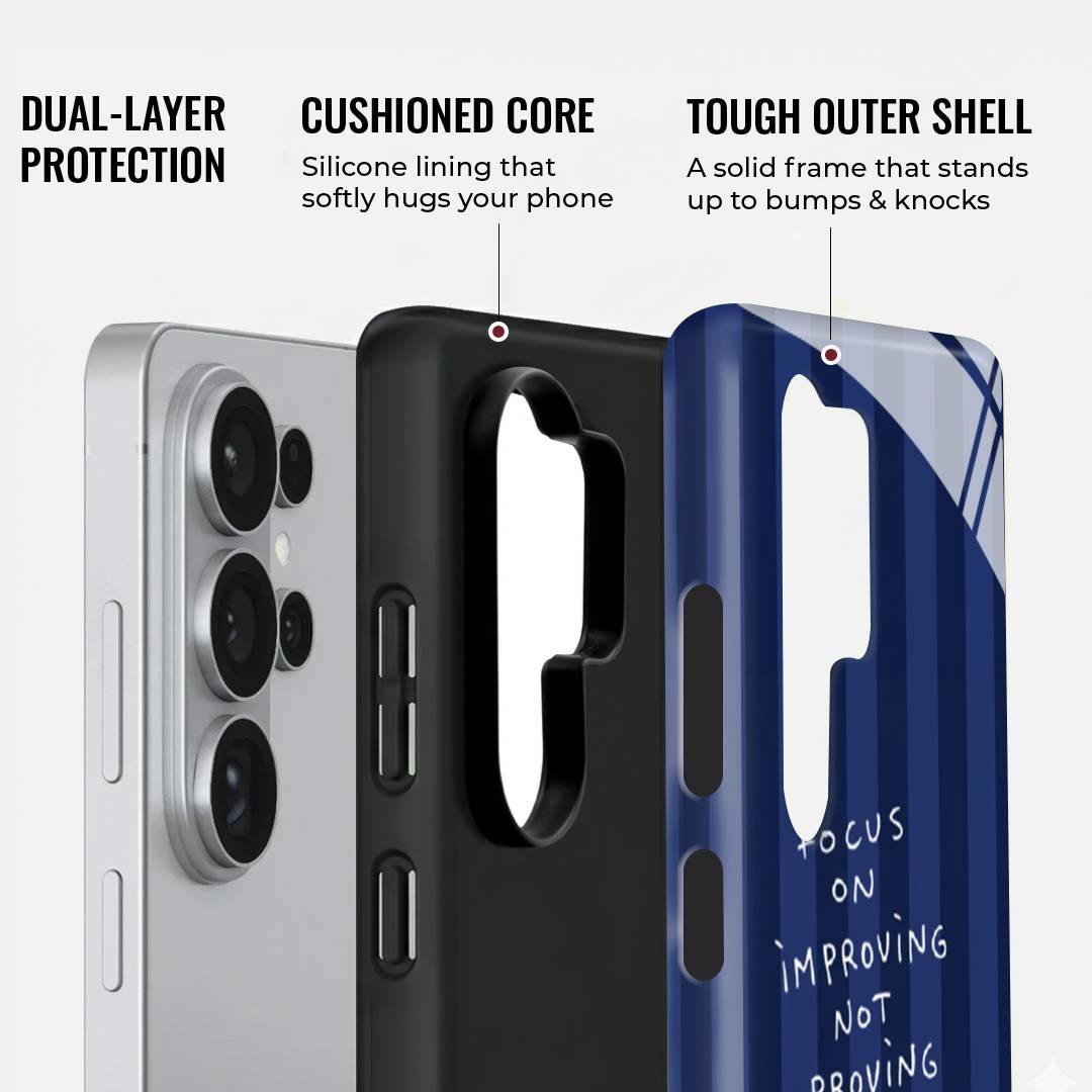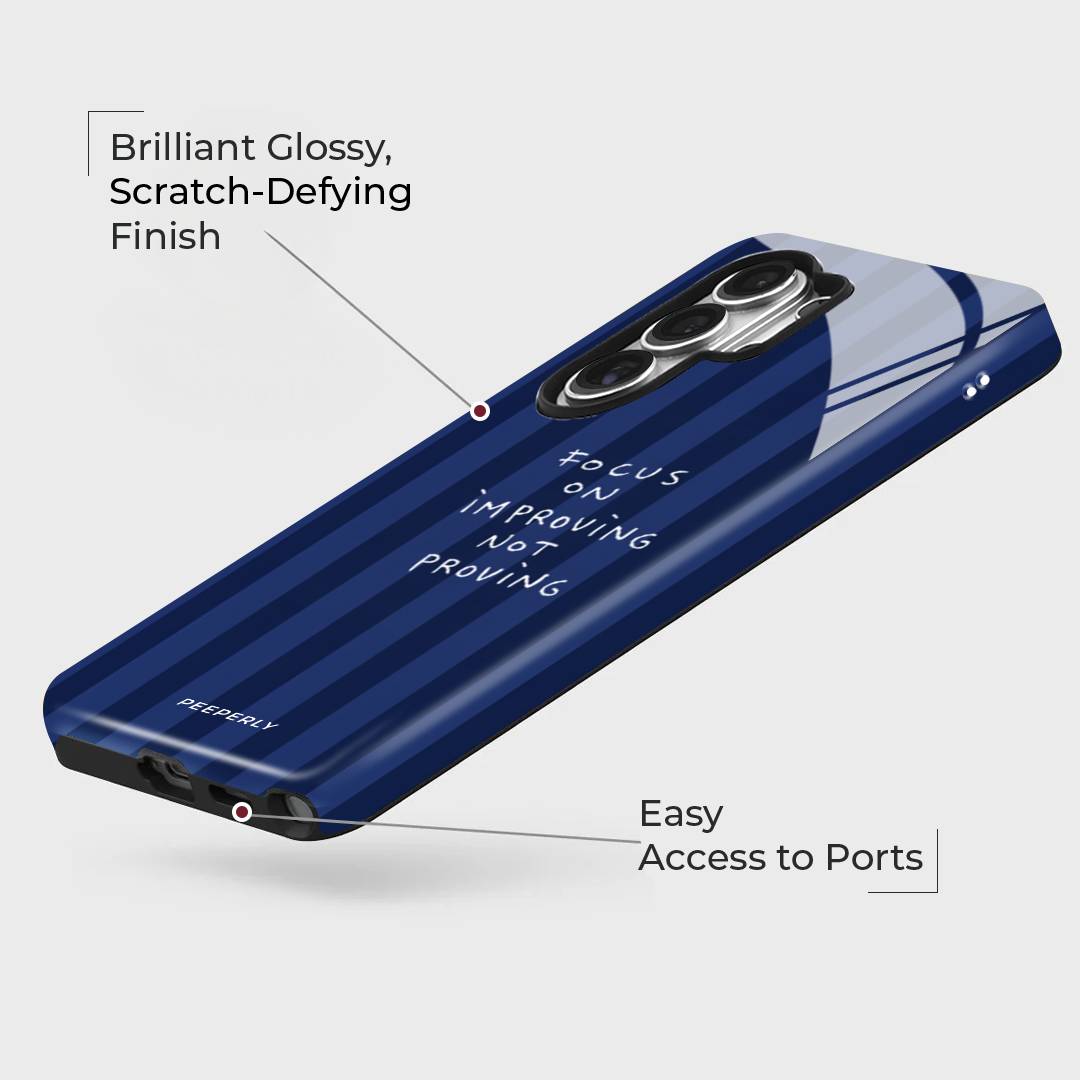 Calm, intentional, and power-driven. Focused Becoming is a reminder that growth is a journey — not a performance. Set against deep navy tones, the minimalist handwritten affirmation reflects quiet discipline and steady self-improvement.