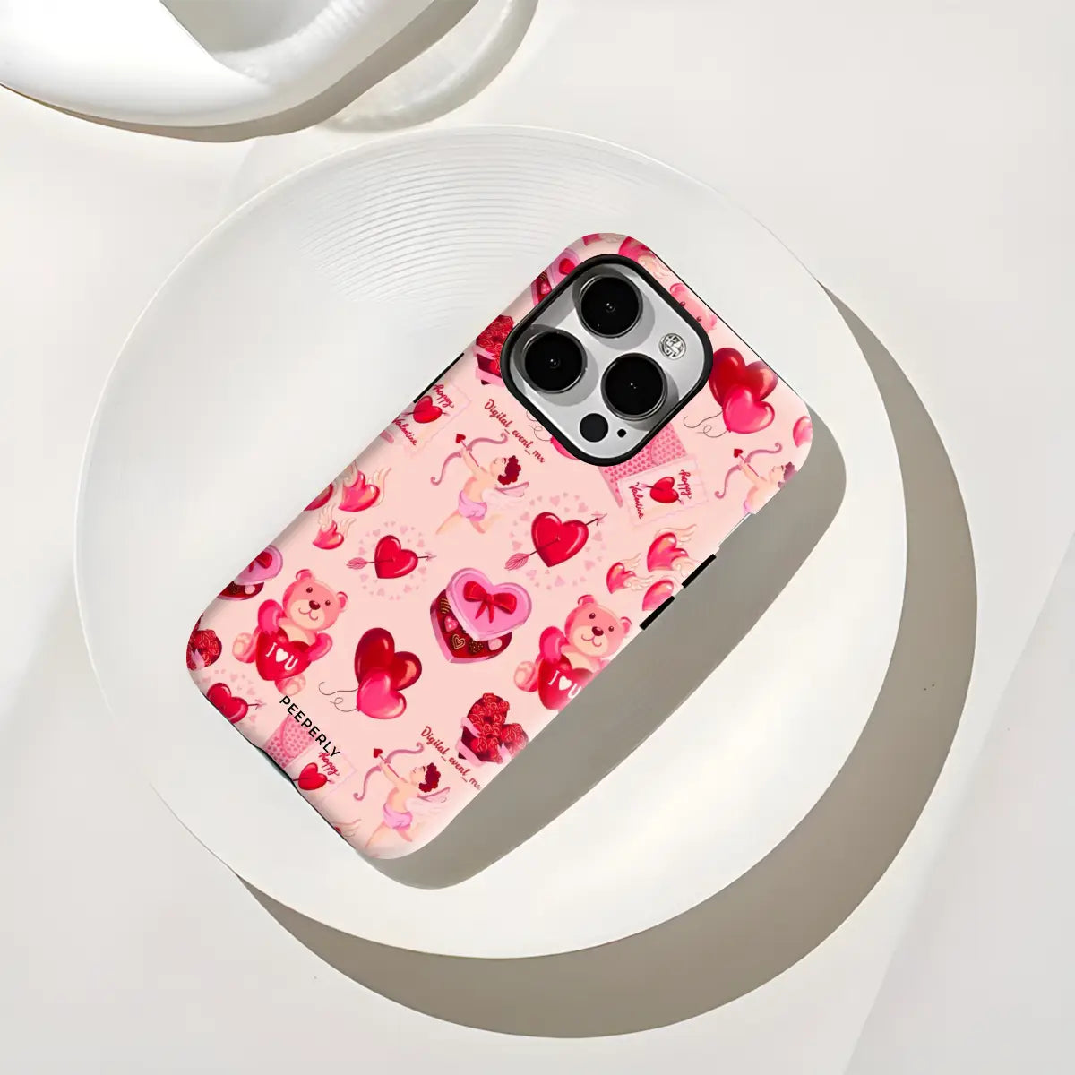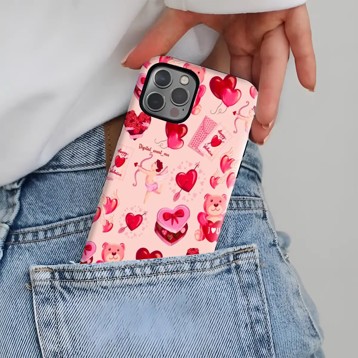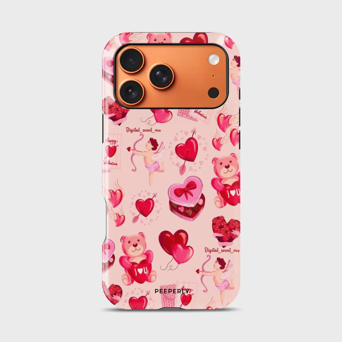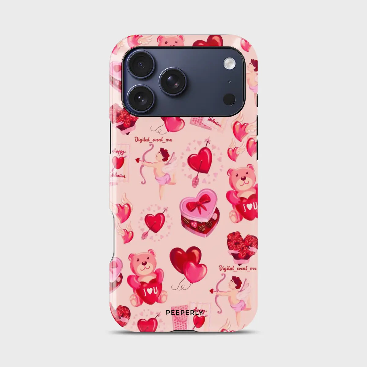 Heart Festival is a playful phone case featuring a cheerful collage of hearts, teddy bears, Cupid details, and Valentine-inspired icons. The soft pink background and vibrant red accents create a fun, festive vibe full of love and joy.