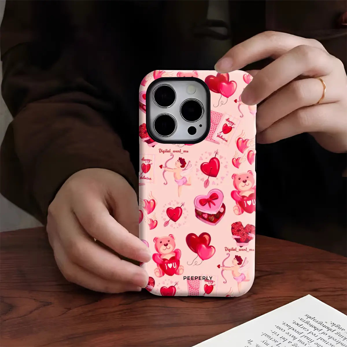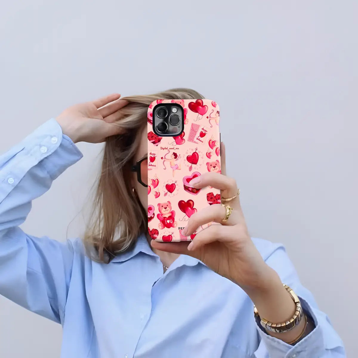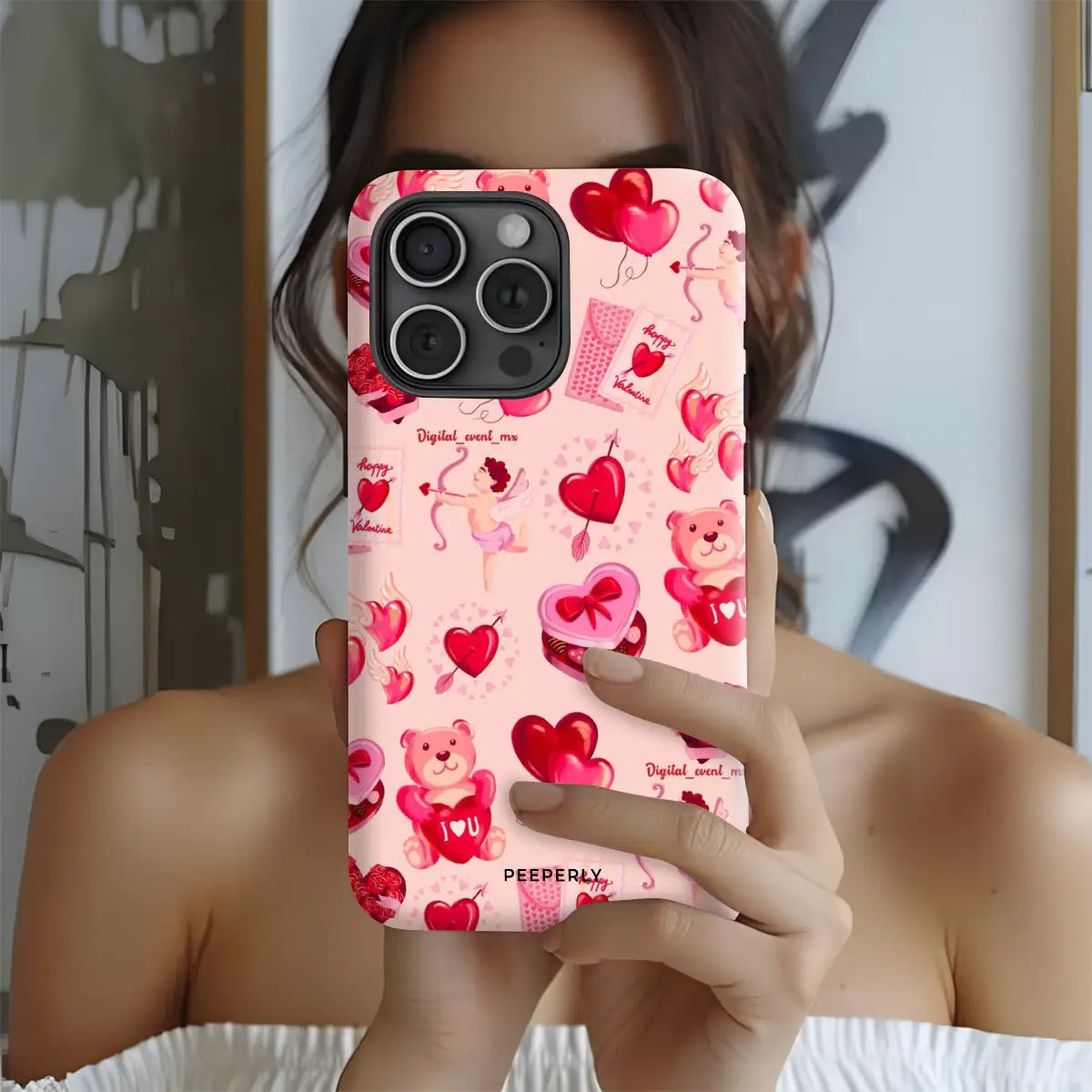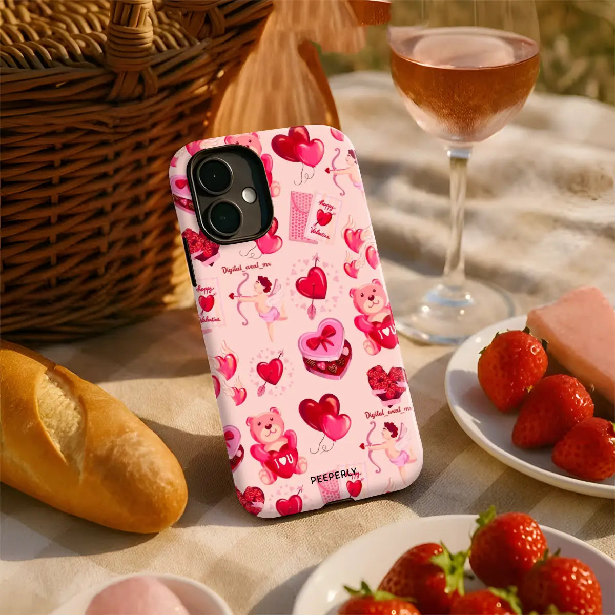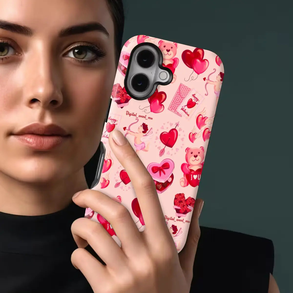 Heart Festival is a playful phone case featuring a cheerful collage of hearts, teddy bears, Cupid details, and Valentine-inspired icons. The soft pink background and vibrant red accents create a fun, festive vibe full of love and joy.