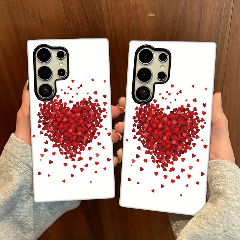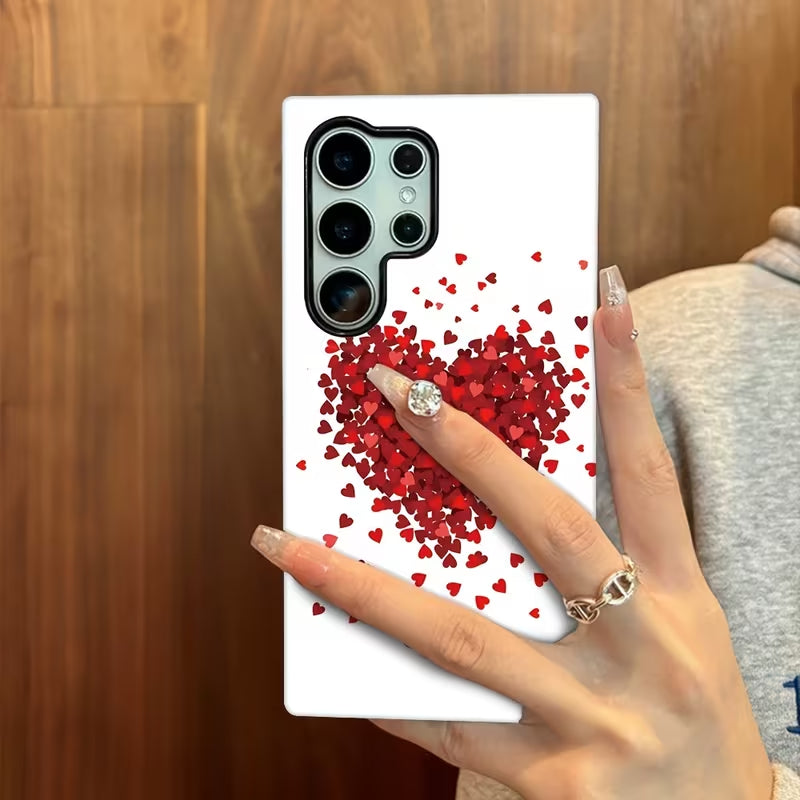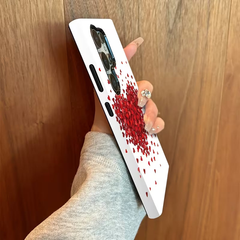 Love Confetti is a clean, modern phone case featuring a burst of tiny red hearts forming a striking central design against a crisp white background. The scattered heart effect creates a sense of motion and emotion, blending simplicity with romance.