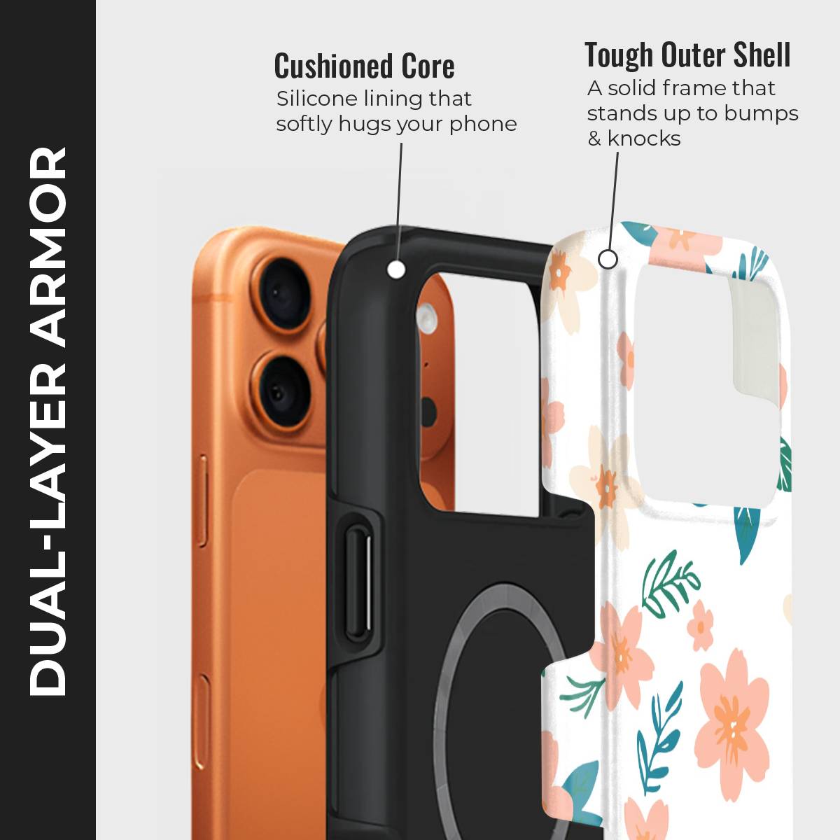 - Double-Layer Protection: Silicon interior cushions impacts + rigid PC exterior shields against drops and scratches.