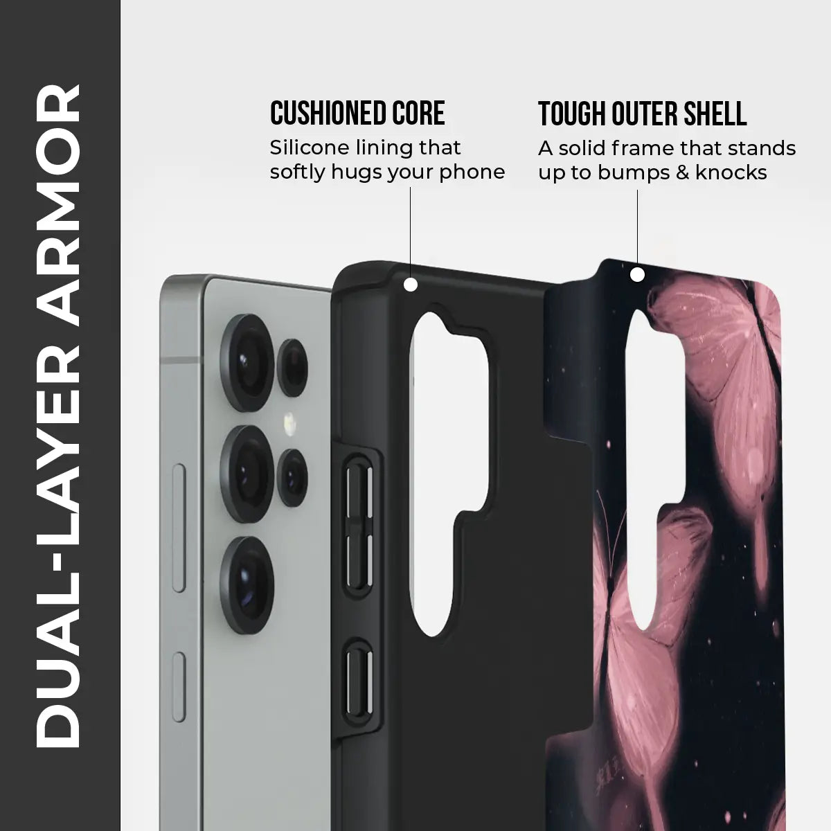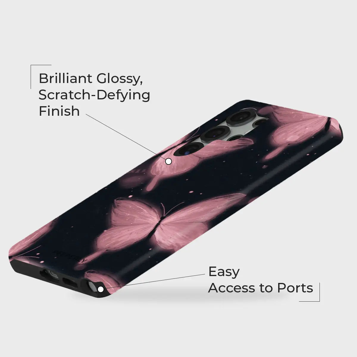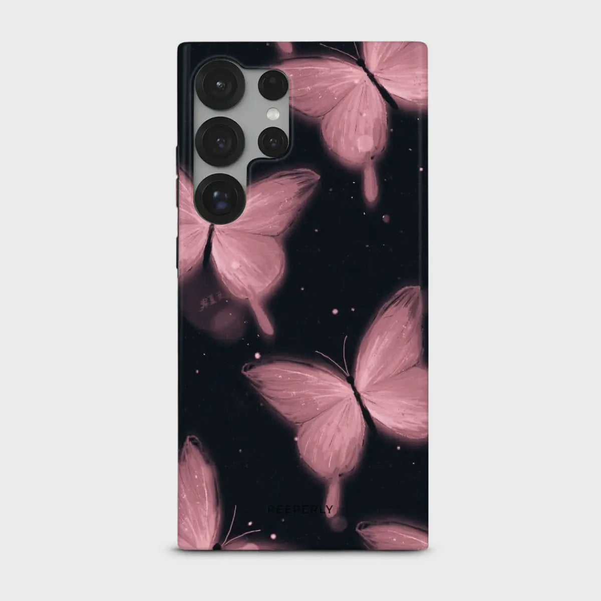 Moonlit Butterflies is a sleek, elegant phone case featuring soft blush butterflies drifting across a deep, midnight background. The contrast of delicate wings against dark tones creates a dreamy, almost celestial feel.