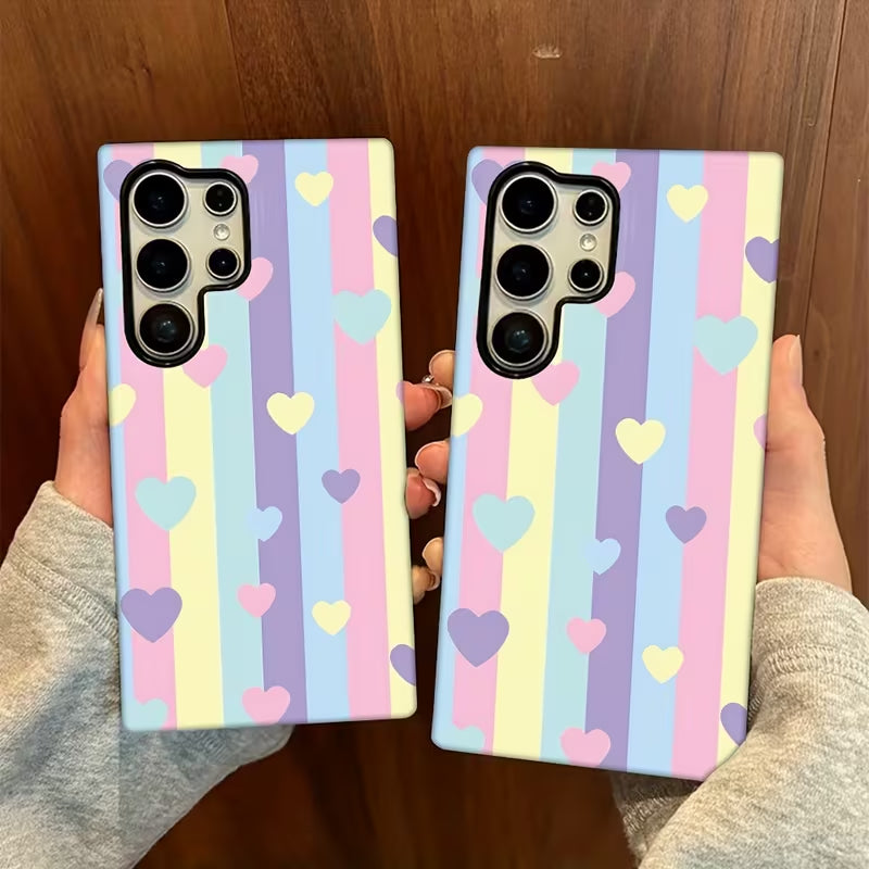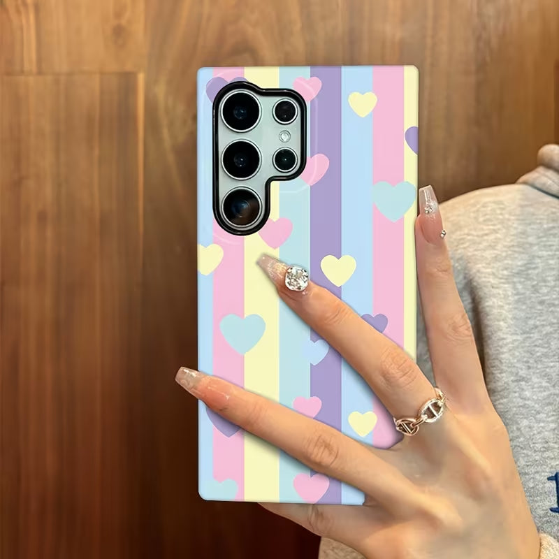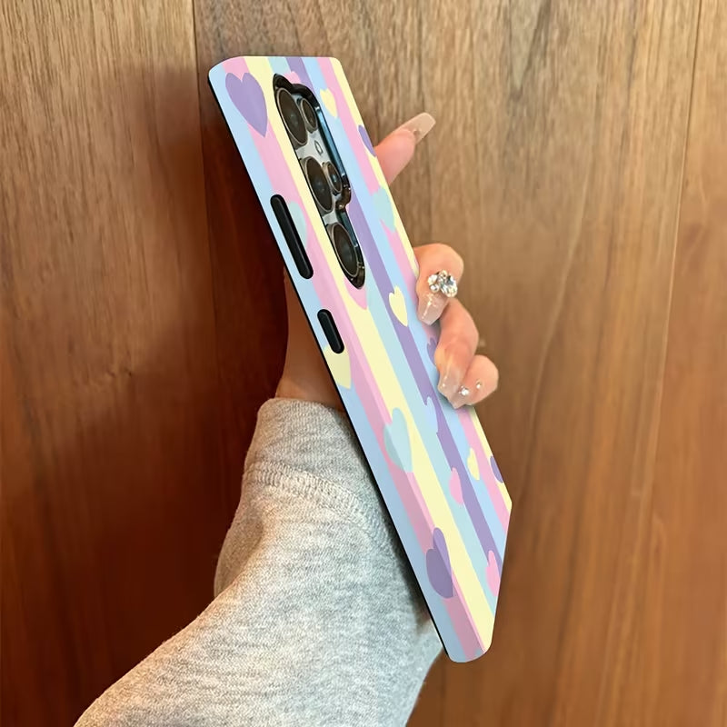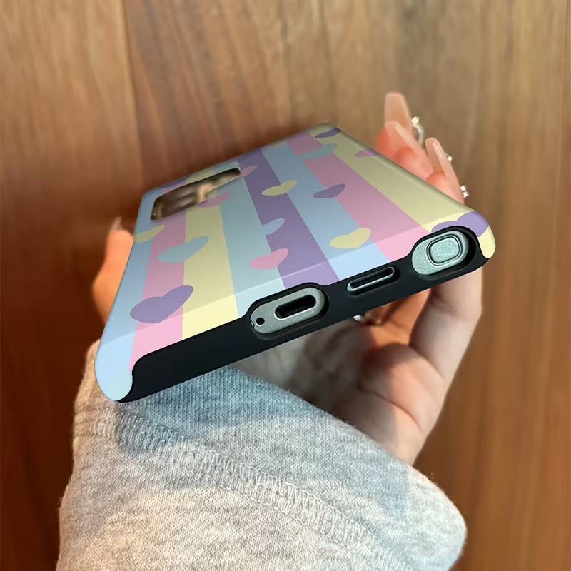 Rainbow Crush is a cheerful phone case featuring soft pastel stripes scattered with sweet heart accents. The playful color palette brings a bright, feel-good vibe while keeping the look light and modern.