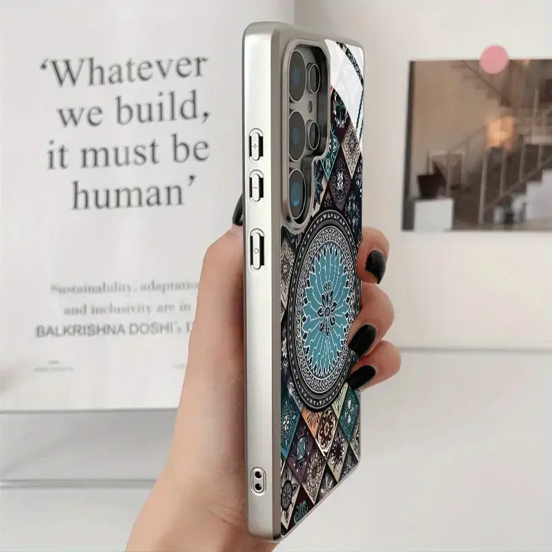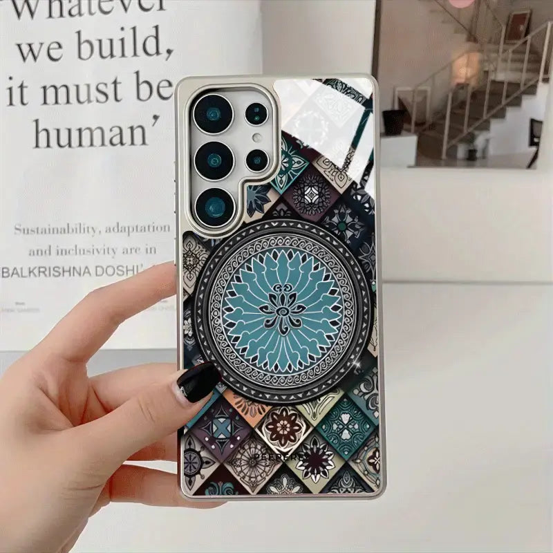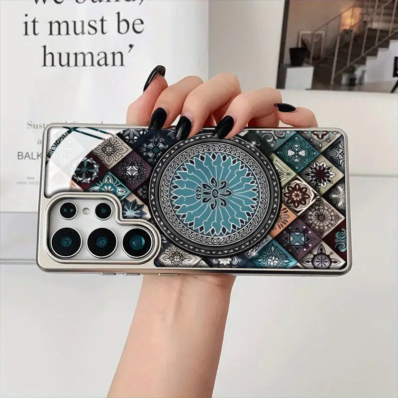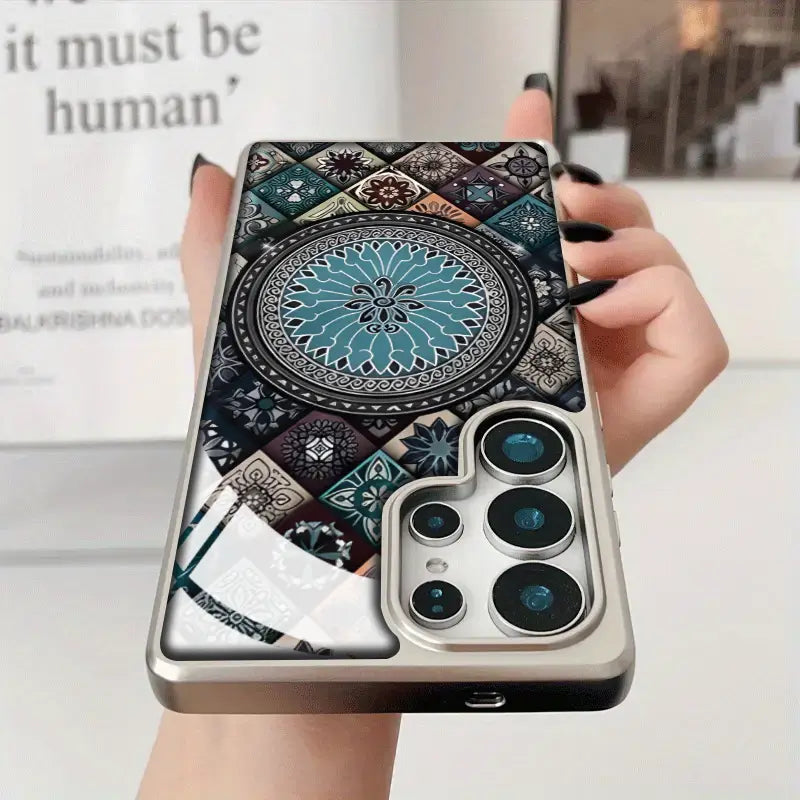 The Regal Pattern Case is a statement of refined luxury and timeless design. Featuring an intricate mosaic-inspired mandala at its center, this case blends rich textures with symmetrical elegance for a look that feels both royal and artistic.