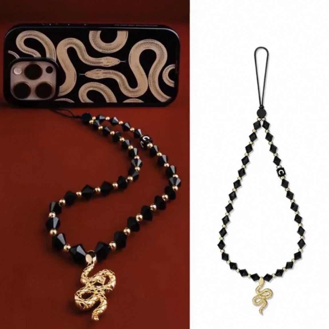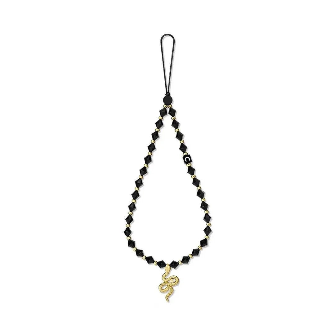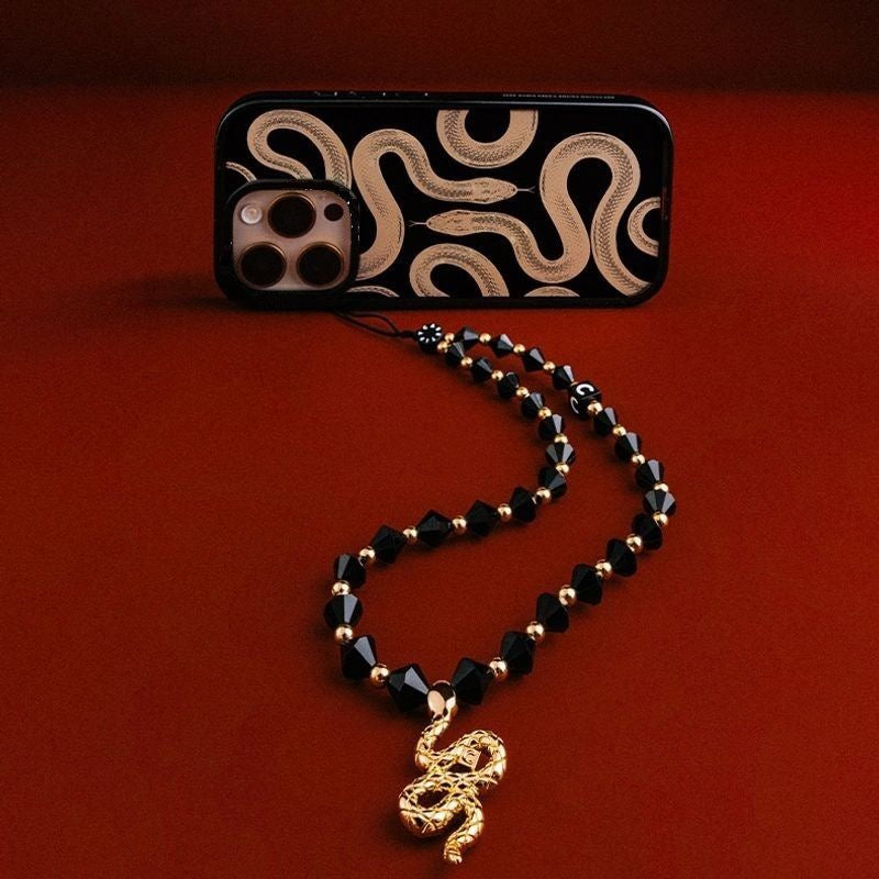 The Dark Glam Snake Charm is a bold fusion of mystique and luxury. Featuring sleek black faceted beads accented with gold-toned details and finished with a striking serpent charm, this lanyard exudes confidence and edge. Designed to stand out, it adds a powerful, fashion-forward statement to your phone, keys, or small essentials—perfect for those who love dark glamour with a touch of symbolism.