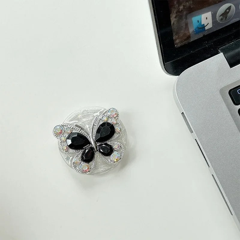 Graceful, radiant, and full of sparkle — the Brilliant Gem Butterfly Phone Gripper is a dazzling accessory designed to make your phone stand out. Shaped like a delicate butterfly and adorned with faceted gem-like stones, this gripper captures light beautifully from every angle, creating a brilliant shimmer effect.