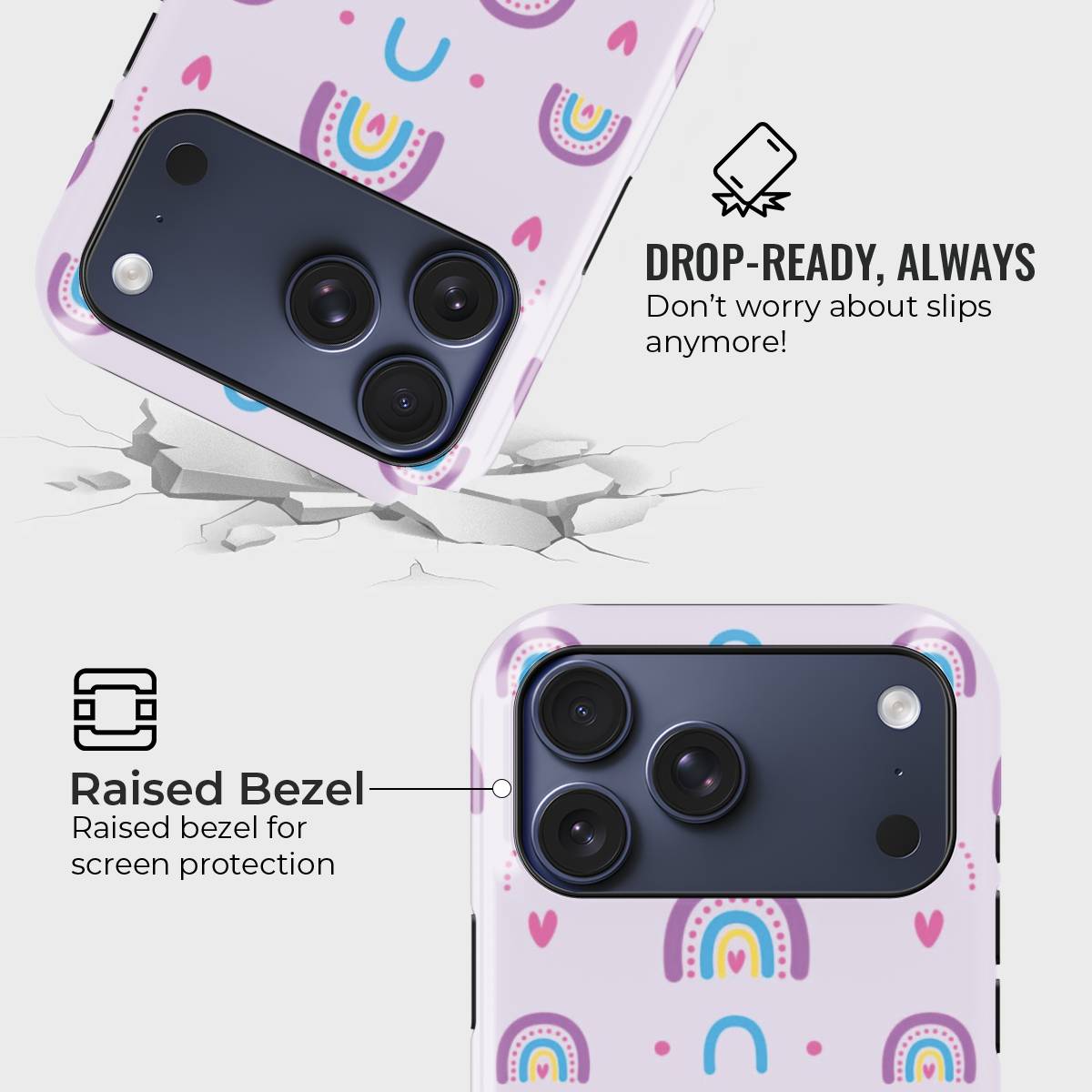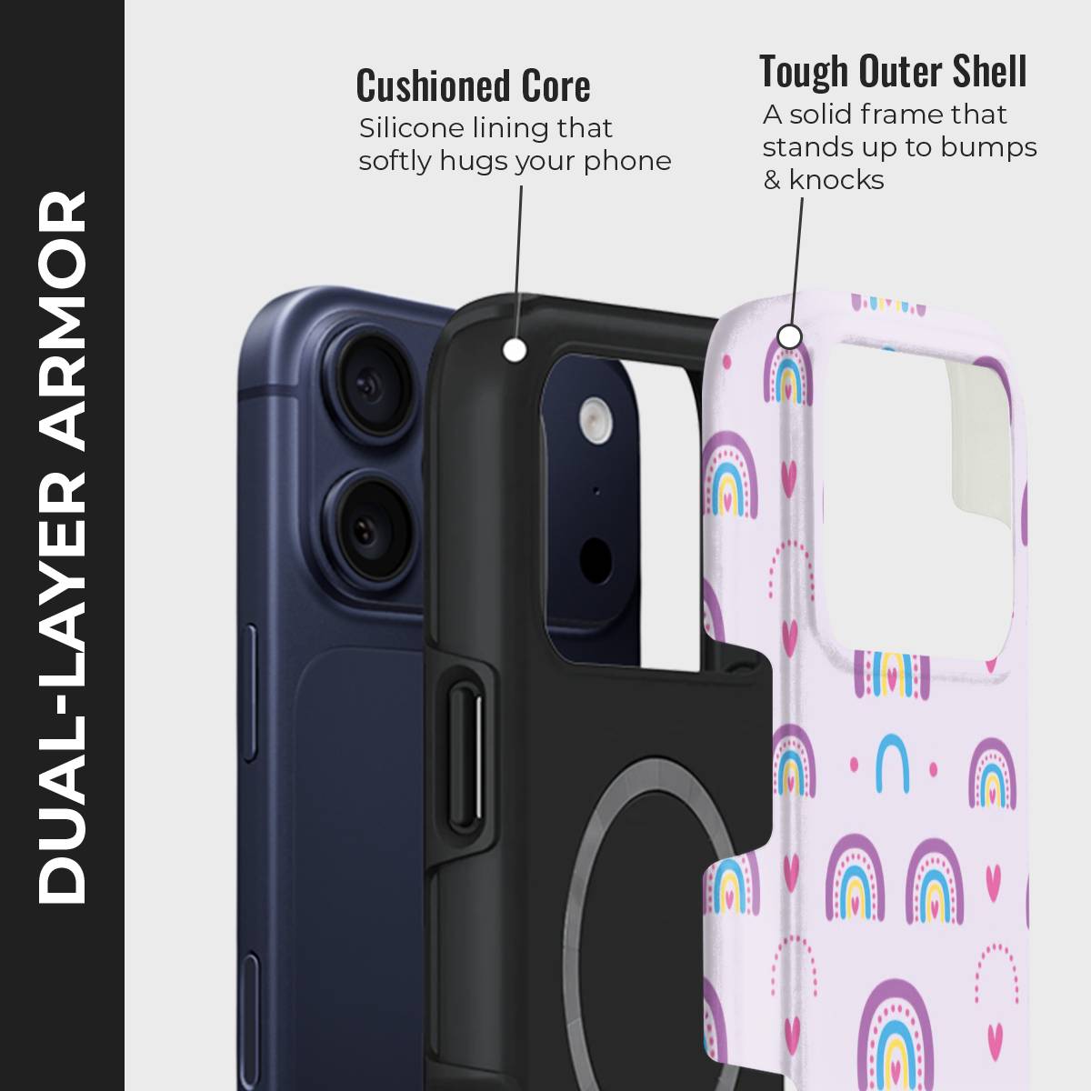 - Double-Layer Protection: Silicon interior cushions impacts + rigid PC exterior shields against drops and scratches.