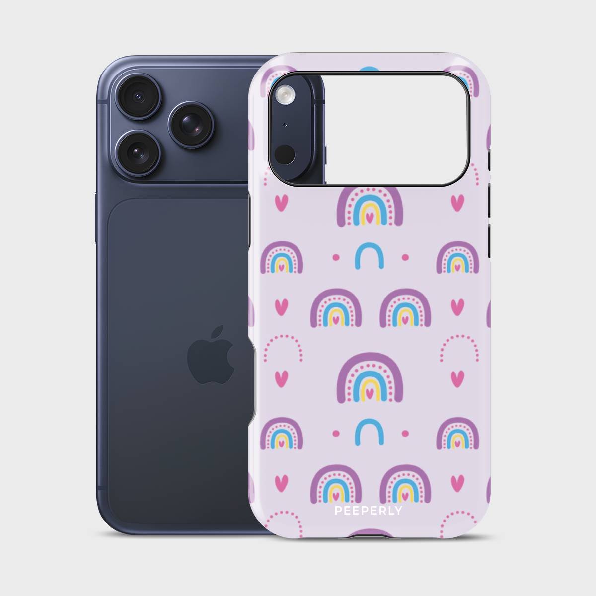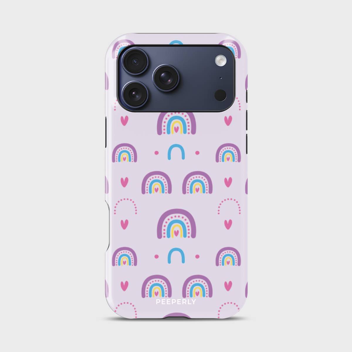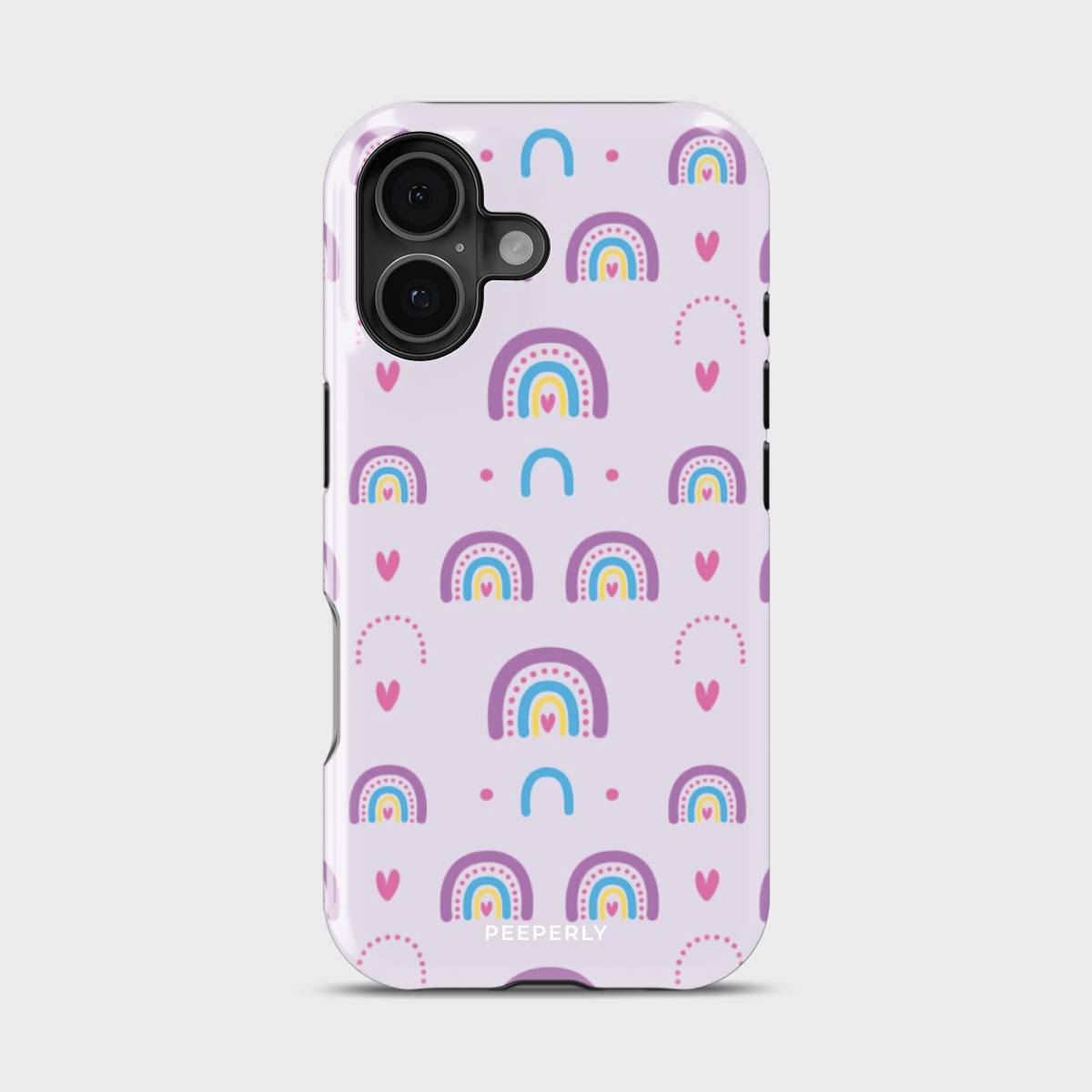 Chasing Rainbows is all about spreading joy, color, and good vibes wherever you go. With its playful pattern of vibrant rainbows, hearts, and soft pastel tones, this phone case is a celebration of positivity and whimsy.