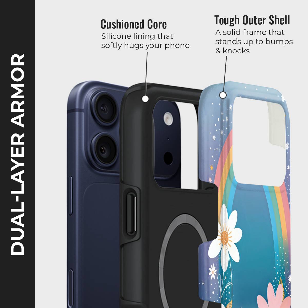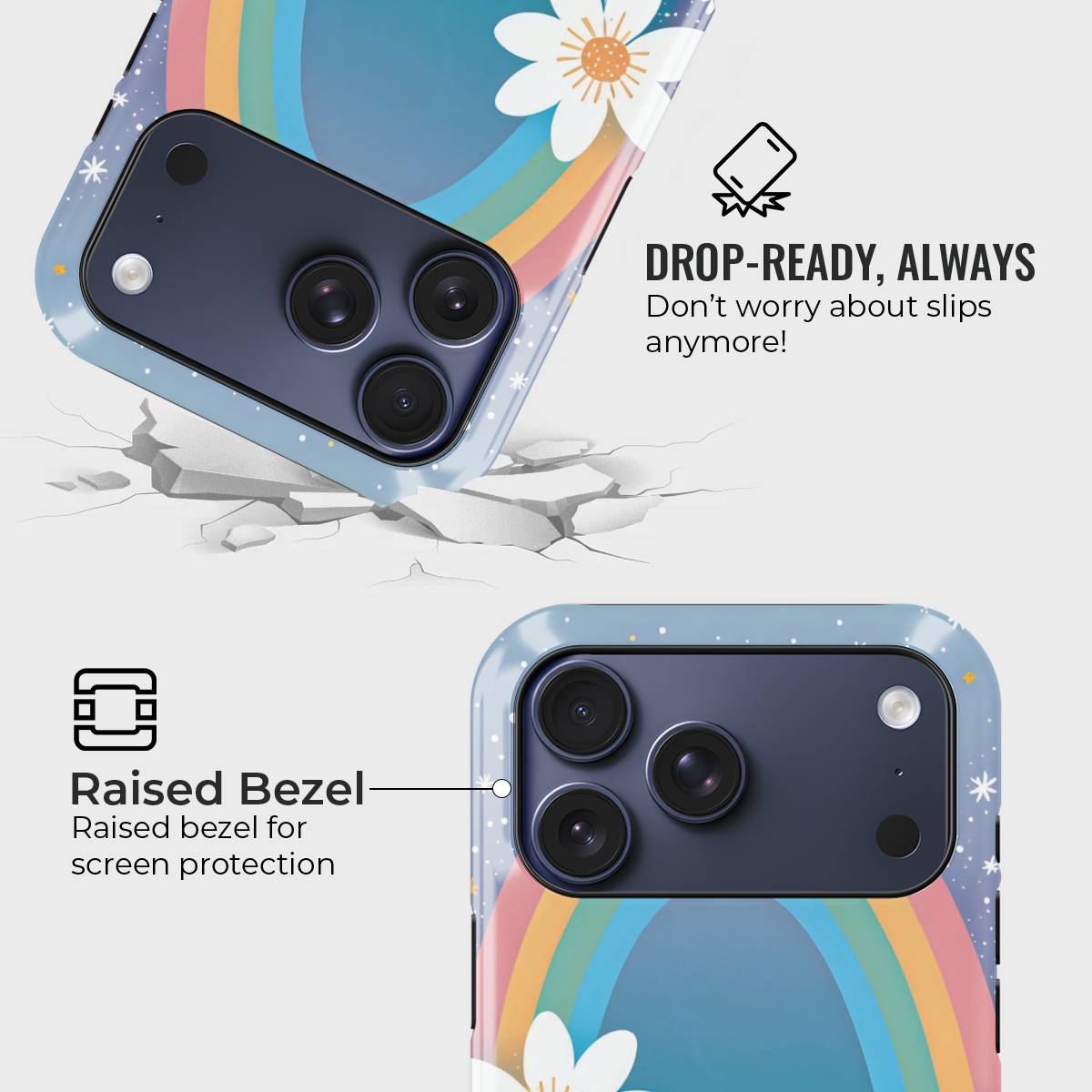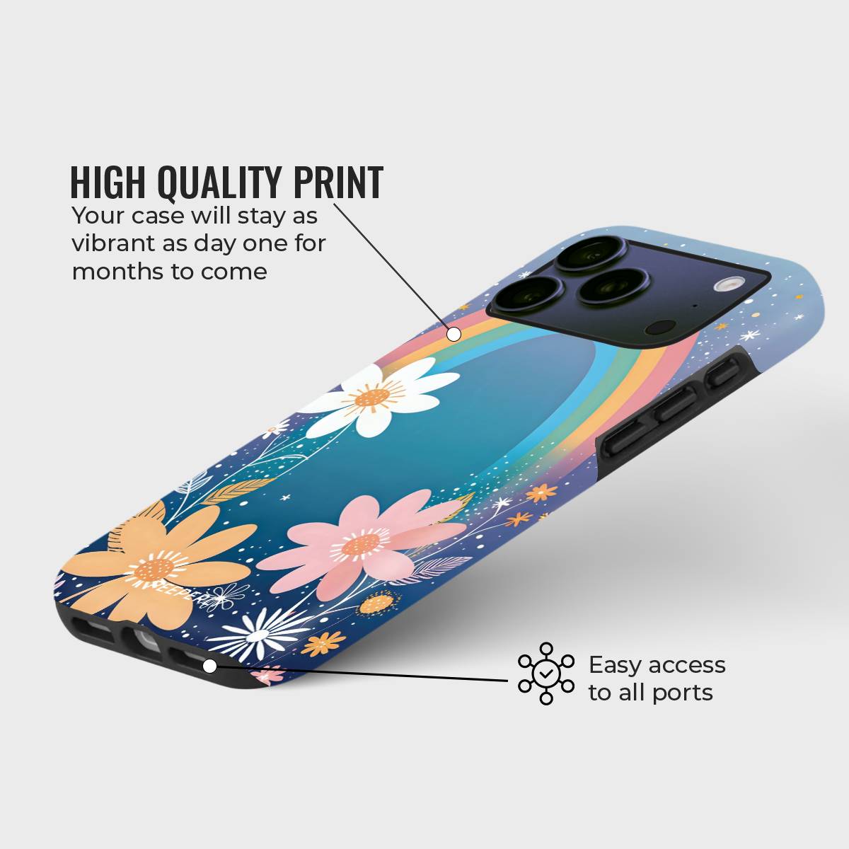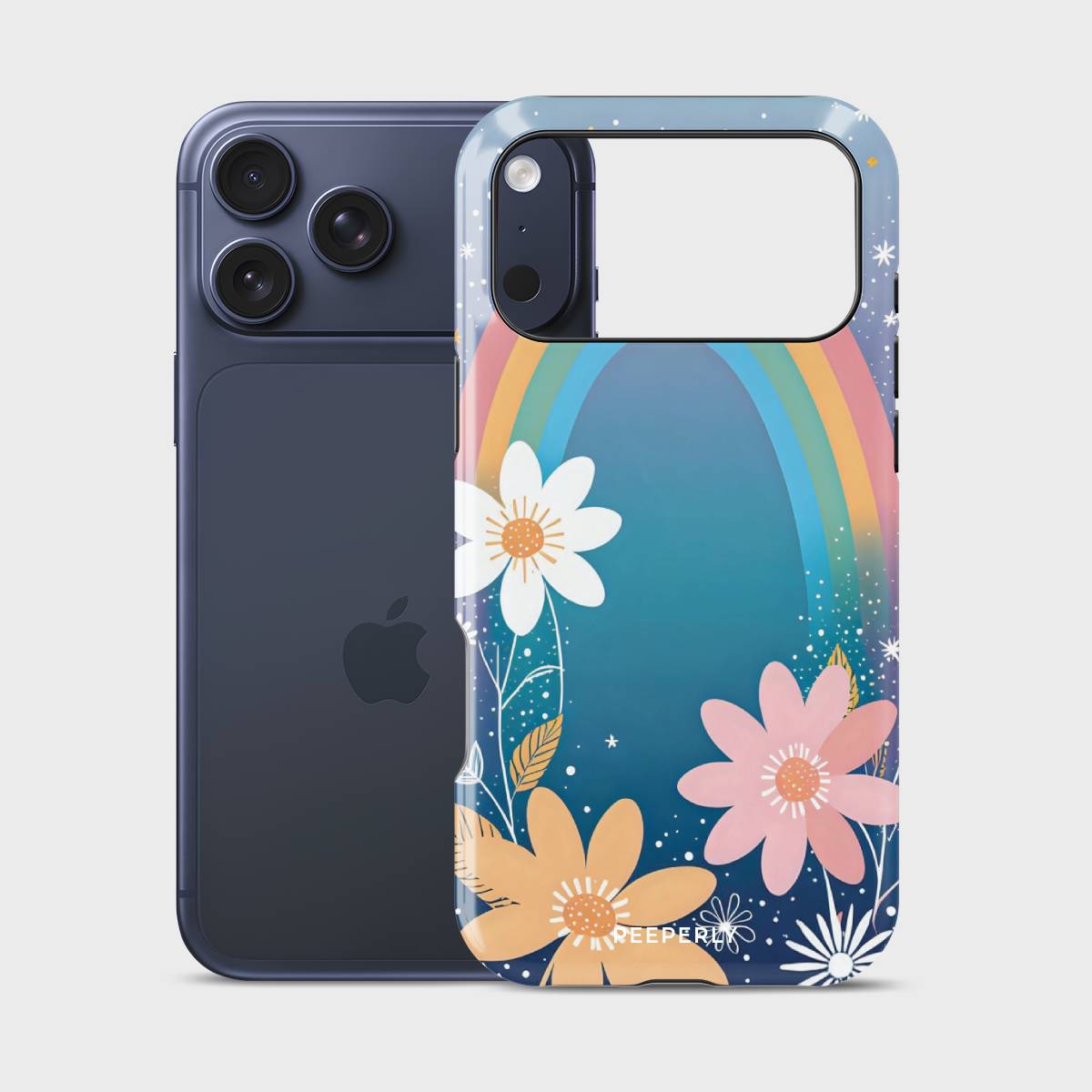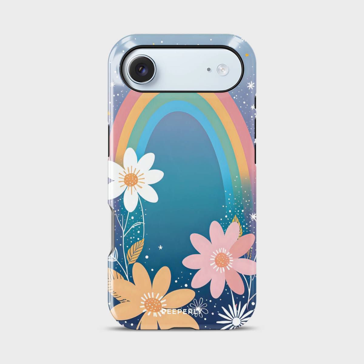 Step into a world where rainbows touch flower fields and stars sparkle like confetti with Dreamfield Arc. This enchanting phone case features a radiant pastel rainbow arching over whimsical blossoms, set against a dreamy twilight sky filled with twinkling stardust.