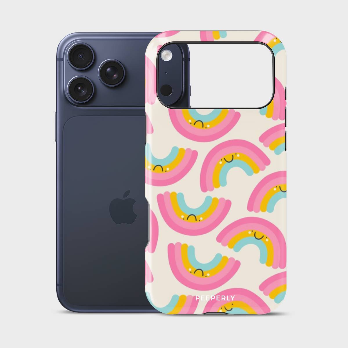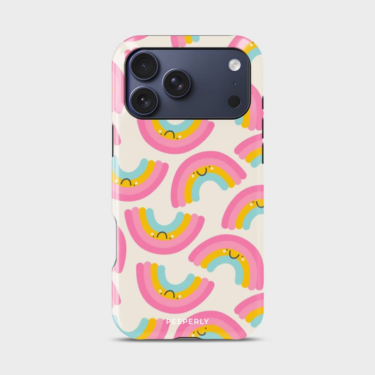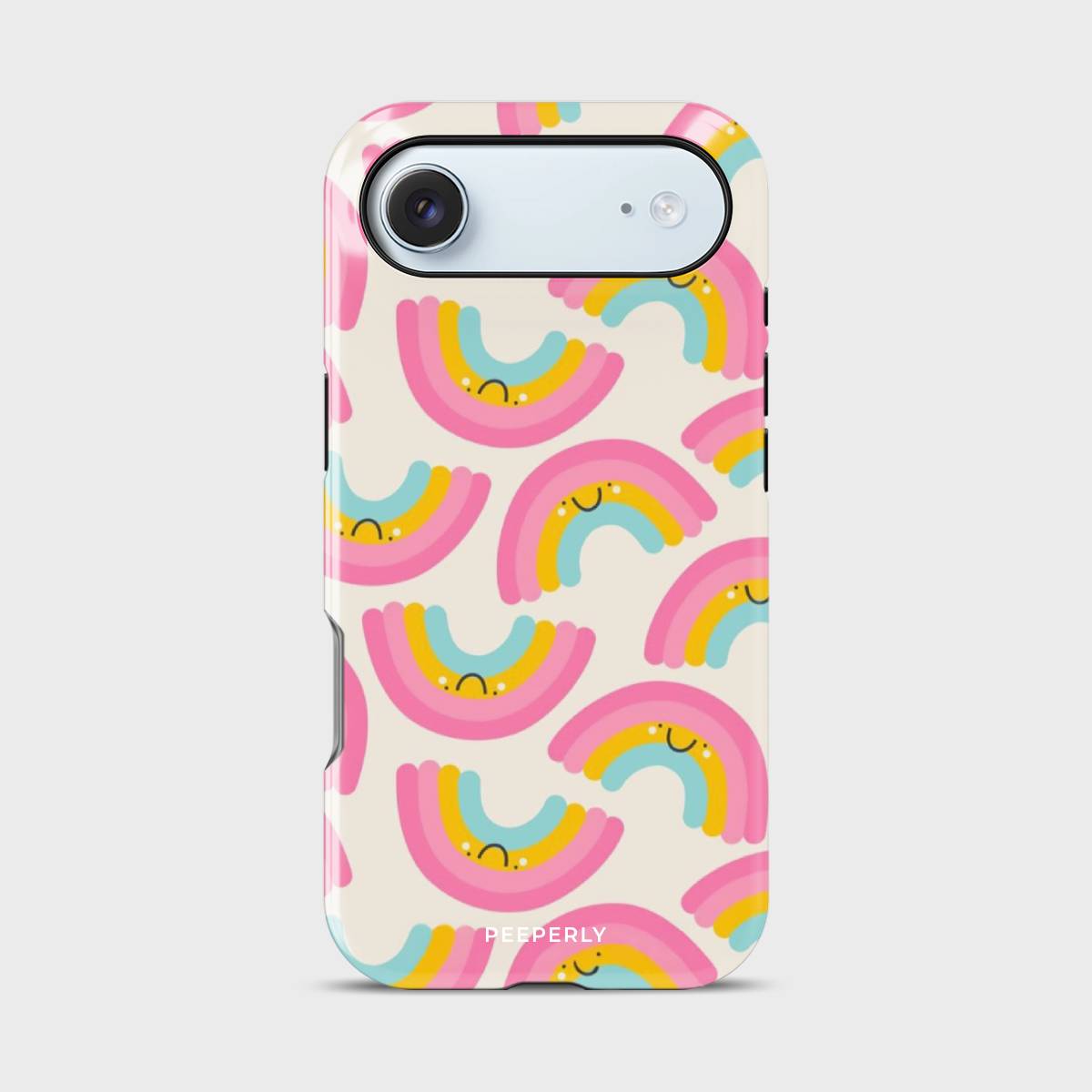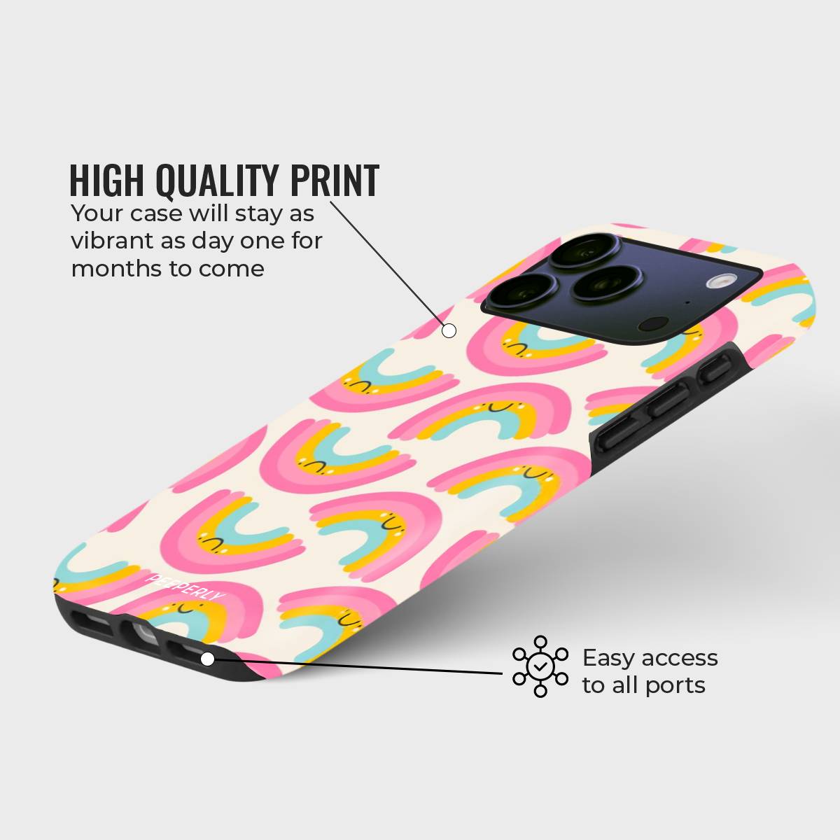 Brighten your day with Smiley Arcs — a feel-good phone case that brings instant joy. Featuring a playful pattern of pastel rainbows with adorable smiling faces, this design radiates positivity and charm.