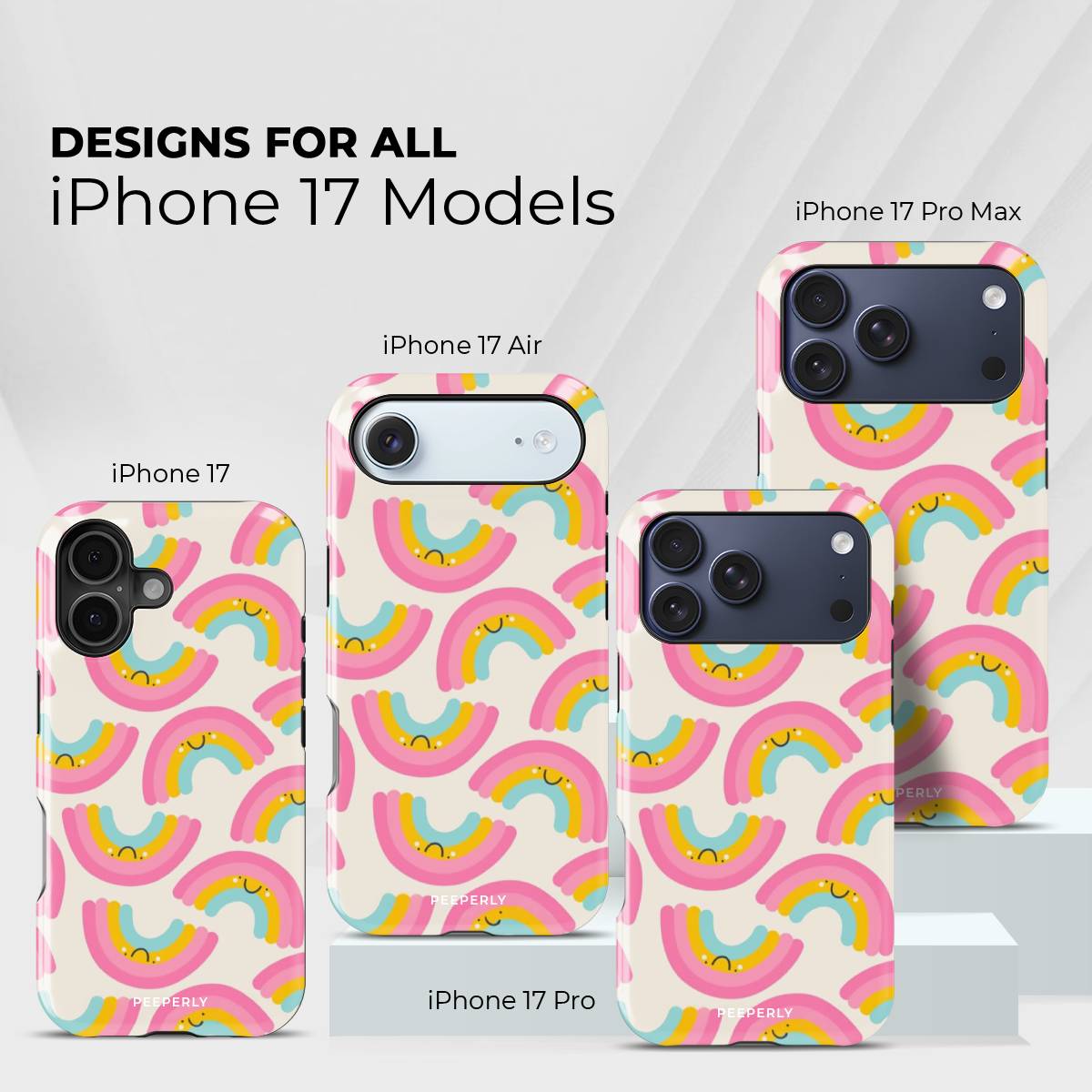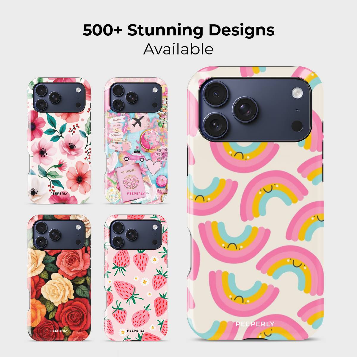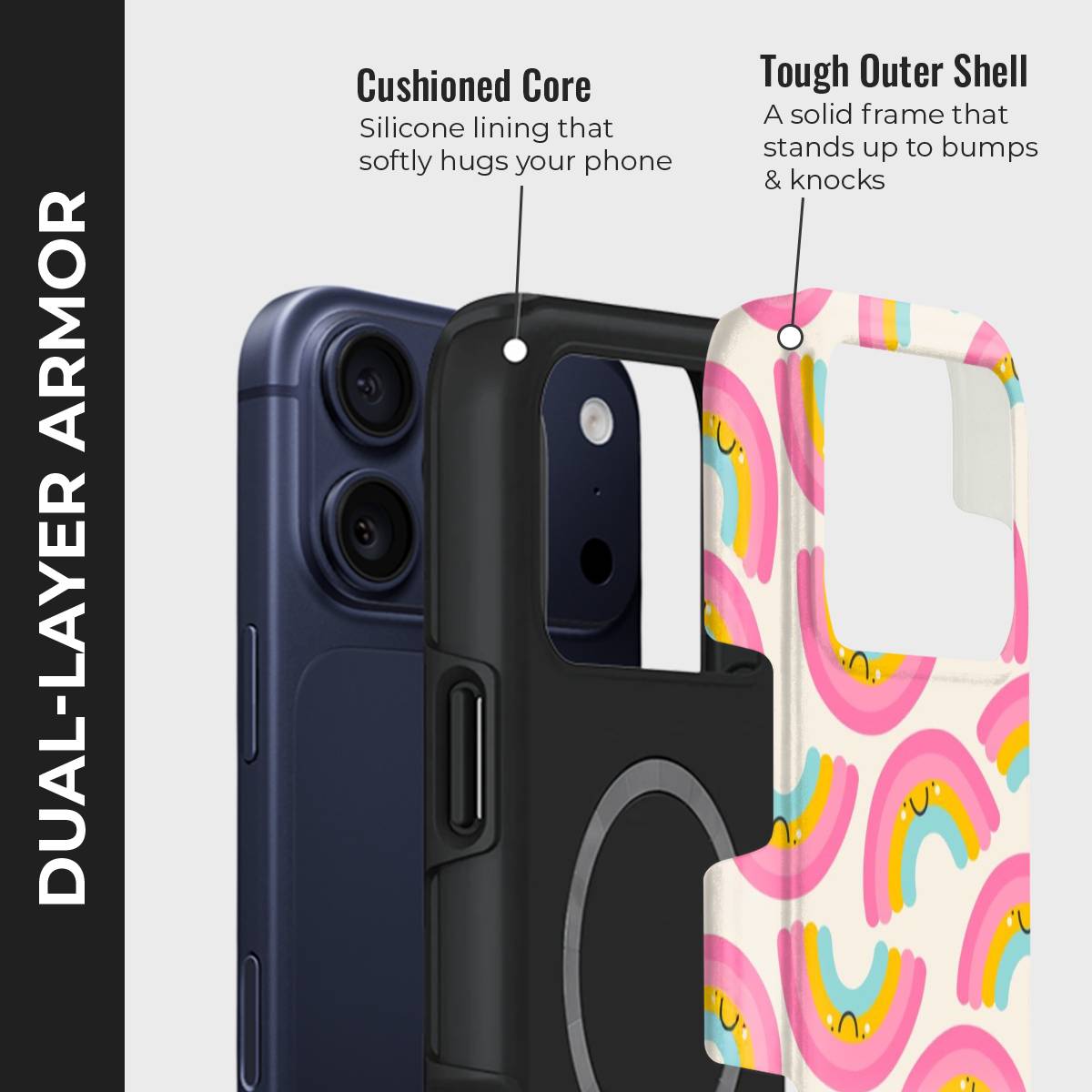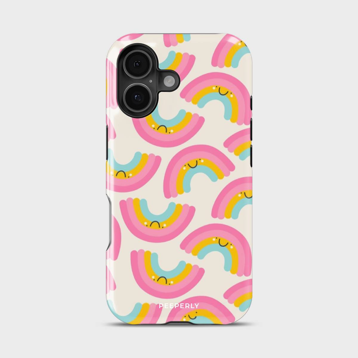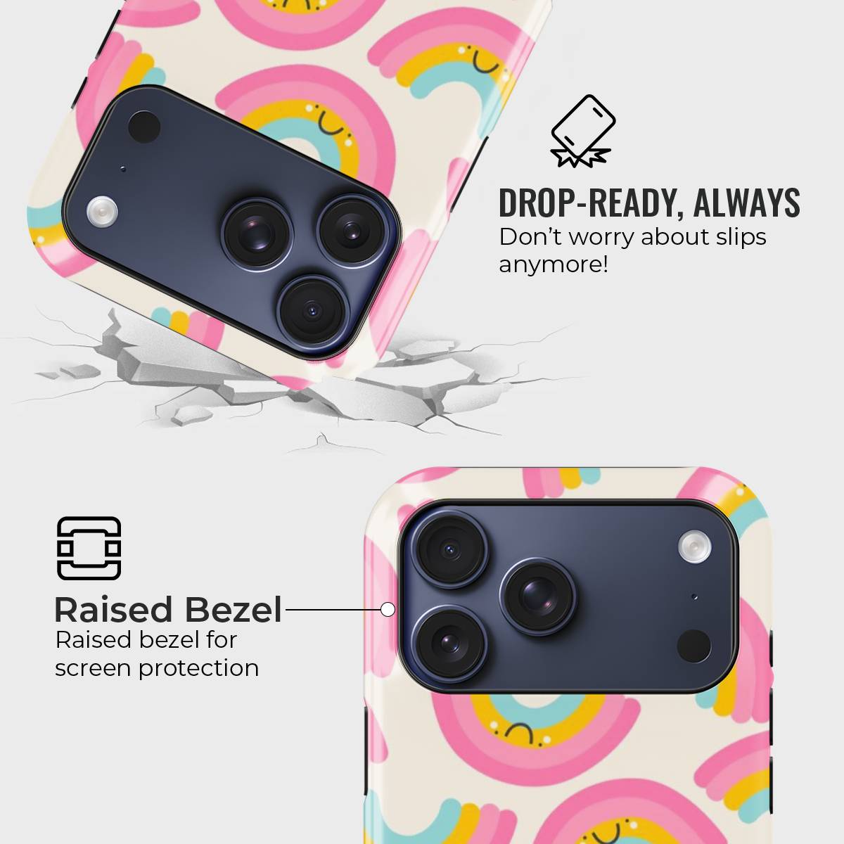 Brighten your day with Smiley Arcs — a feel-good phone case that brings instant joy. Featuring a playful pattern of pastel rainbows with adorable smiling faces, this design radiates positivity and charm.