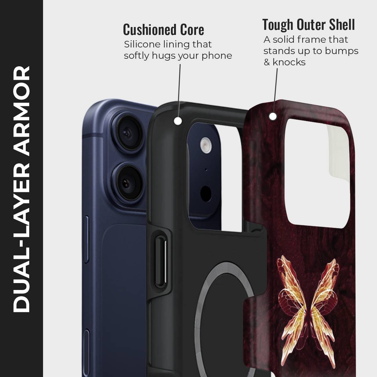 - Double-Layer Protection: Silicon interior cushions impacts + rigid PC exterior shields against drops and scratches.