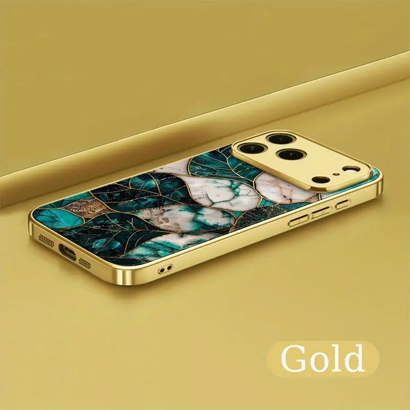 Experience timeless elegance with the Gilded Leaf Case, where nature meets luxury in perfect harmony. Designed with a breathtaking mosaic of emerald, jade, and marble hues intertwined with shimmering gold veins, this case transforms your phone into a piece of art.
