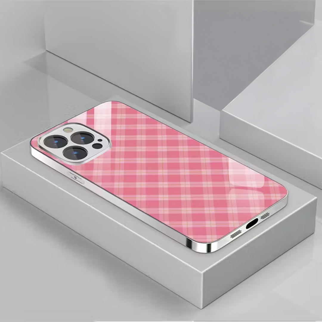 The Rose Plaid case brings classic sophistication to your device with its soft pink checkered design — a graceful blend of vintage pattern and contemporary flair. The smooth, glossy finish catches the light beautifully, adding a touch of warmth and personality to your phone.