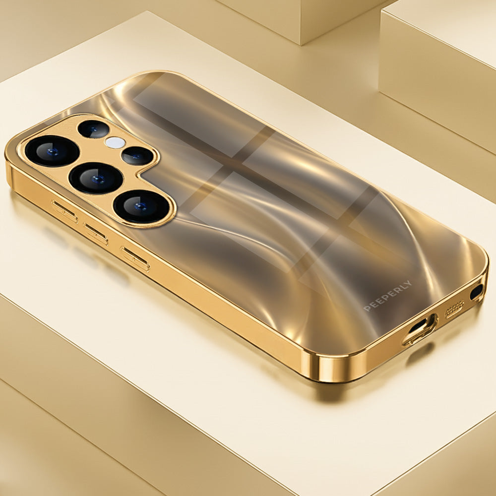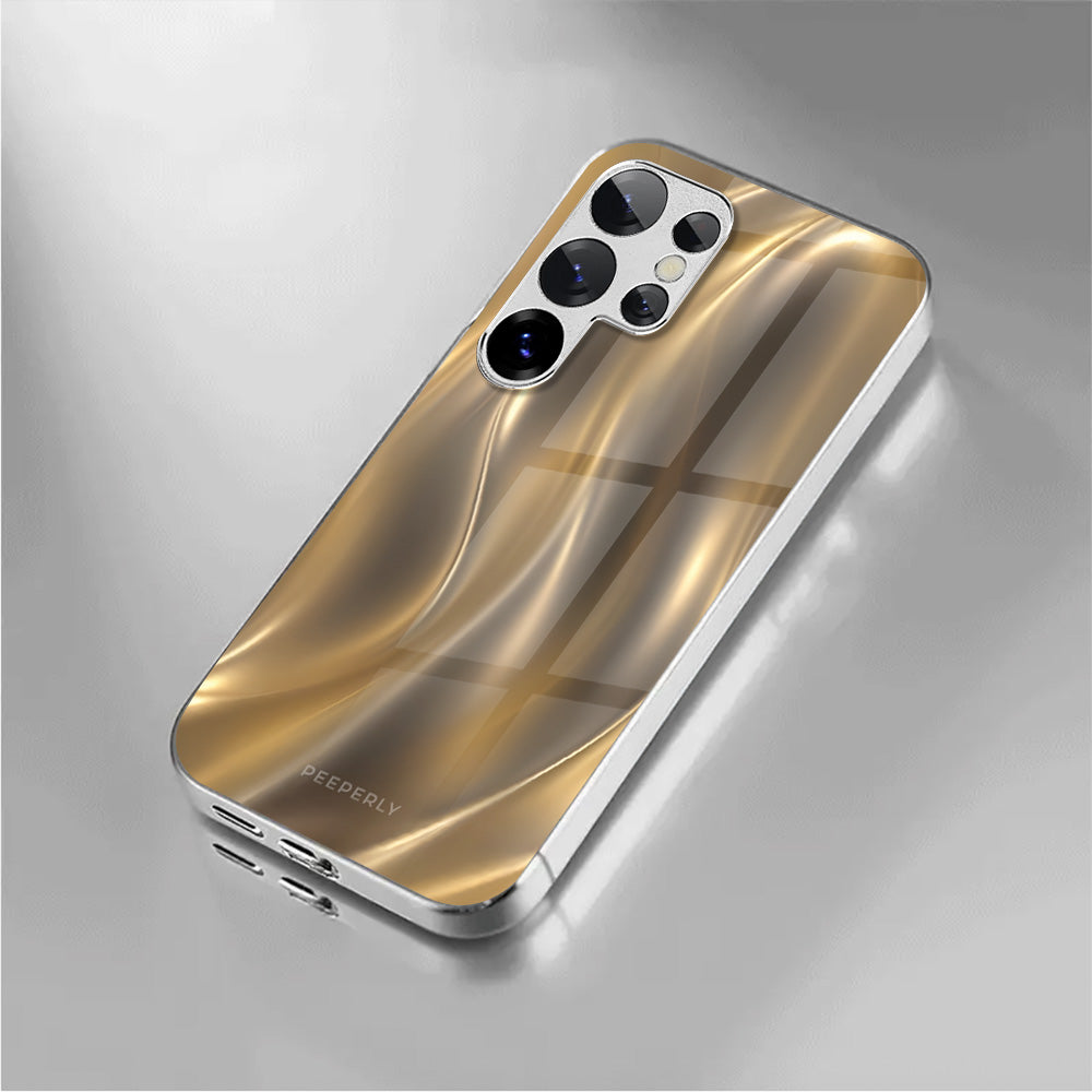 Where elegance meets motion — the Gilded Motion Case is a statement of pure sophistication. Designed with a fluid gold wave pattern that catches the light beautifully, this case radiates warmth, luxury, and confidence. The sleek reflective finish creates a sense of movement and depth, turning your phone into a piece of modern art.