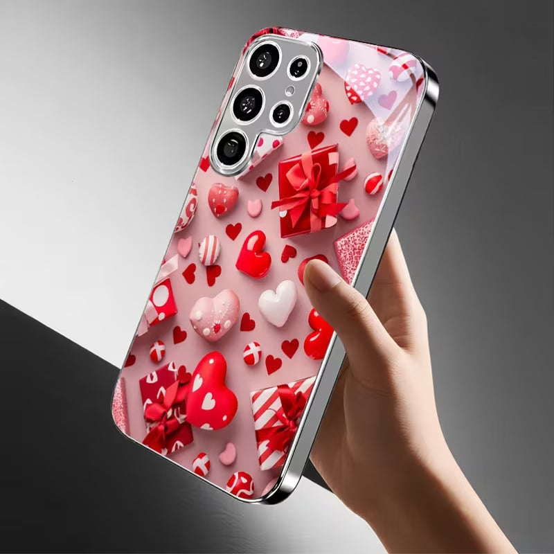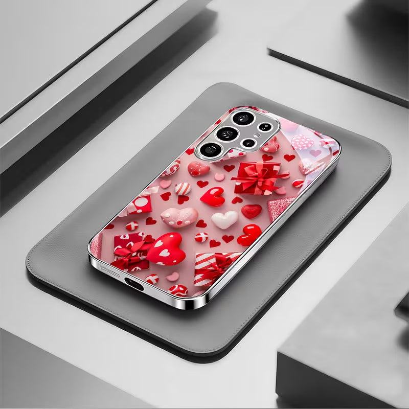Heart Treats is a playful, candy-inspired phone case filled with charming hearts, sweets, and gift details in soft pink and bold red tones. The glossy finish brings the design to life, creating a fun and festive look that feels sweet and romantic.
