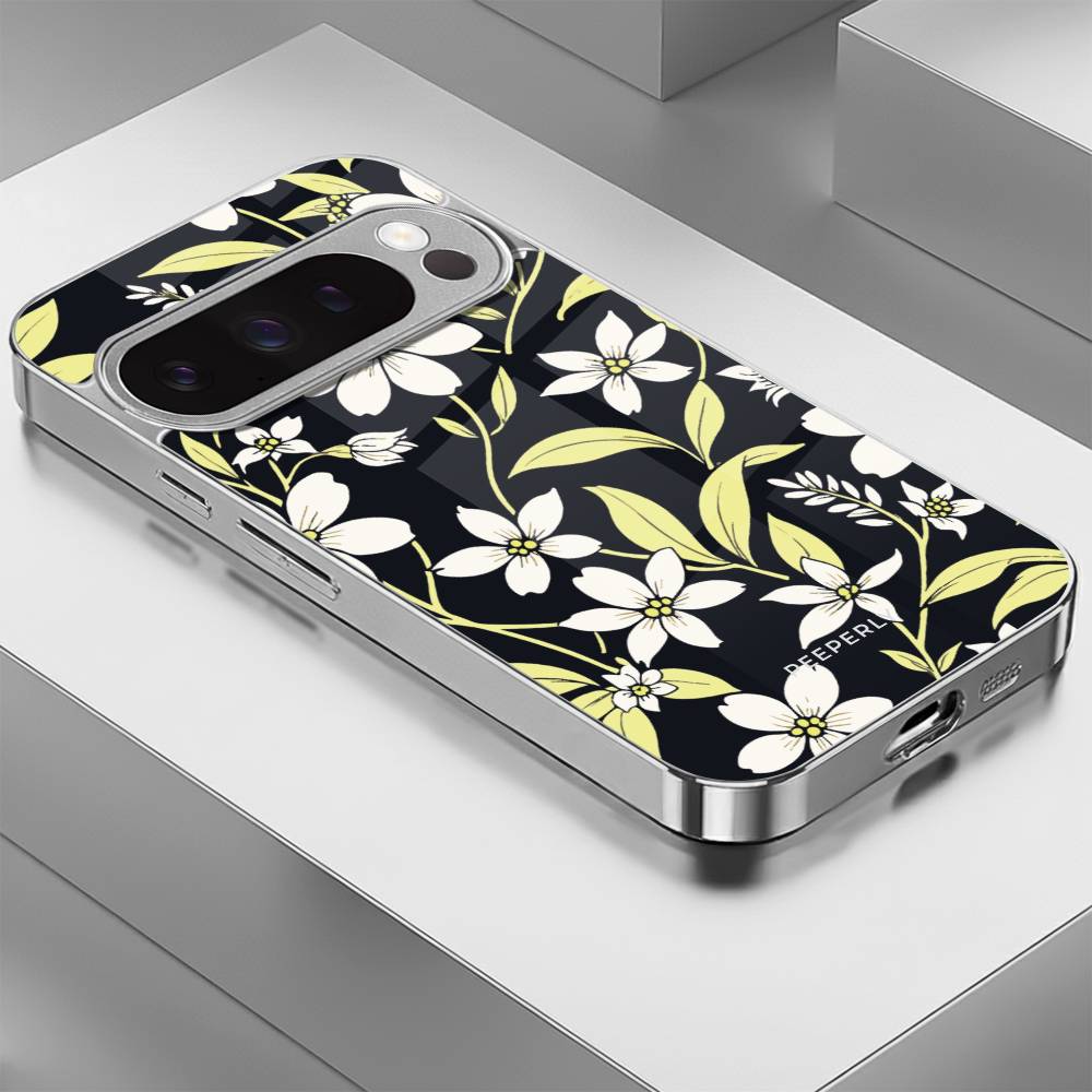 Embrace the elegance of nature after dusk with the Mystic Grace mobile case. Featuring a delicate arrangement of soft white blossoms and pale green leaves against a deep, midnight backdrop, this case captures the serene charm of a moonlit garden. Designed for those who love beauty with a bold edge, Mystic Grace blends sophistication with subtle mystique.