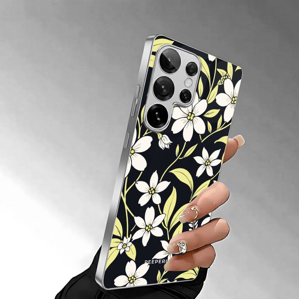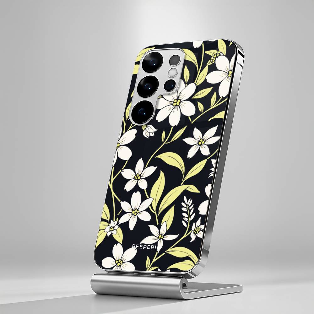 Embrace the elegance of nature after dusk with the Mystic Grace mobile case. Featuring a delicate arrangement of soft white blossoms and pale green leaves against a deep, midnight backdrop, this case captures the serene charm of a moonlit garden. Designed for those who love beauty with a bold edge, Mystic Grace blends sophistication with subtle mystique.