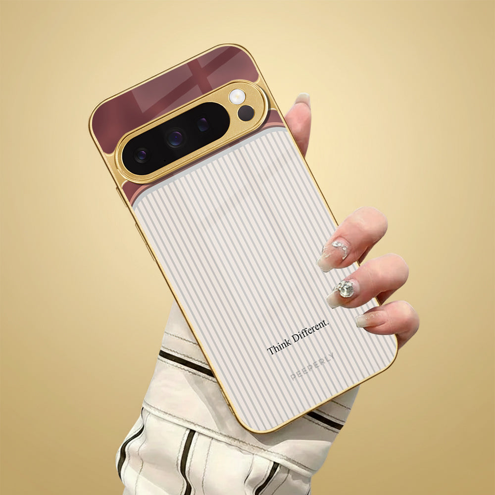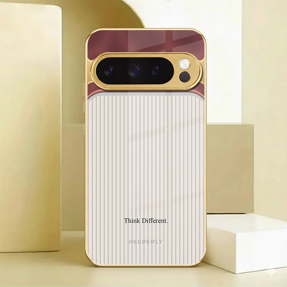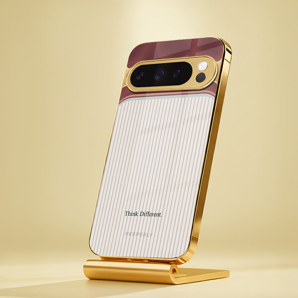 The Think Different case celebrates innovation and individuality — inspired by the spirit of creativity that dares to challenge the norm. Its dual-tone design blends a refined rose-gold metallic finish with a soft ivory striped texture, symbolizing the harmony between bold thinking and classic elegance.