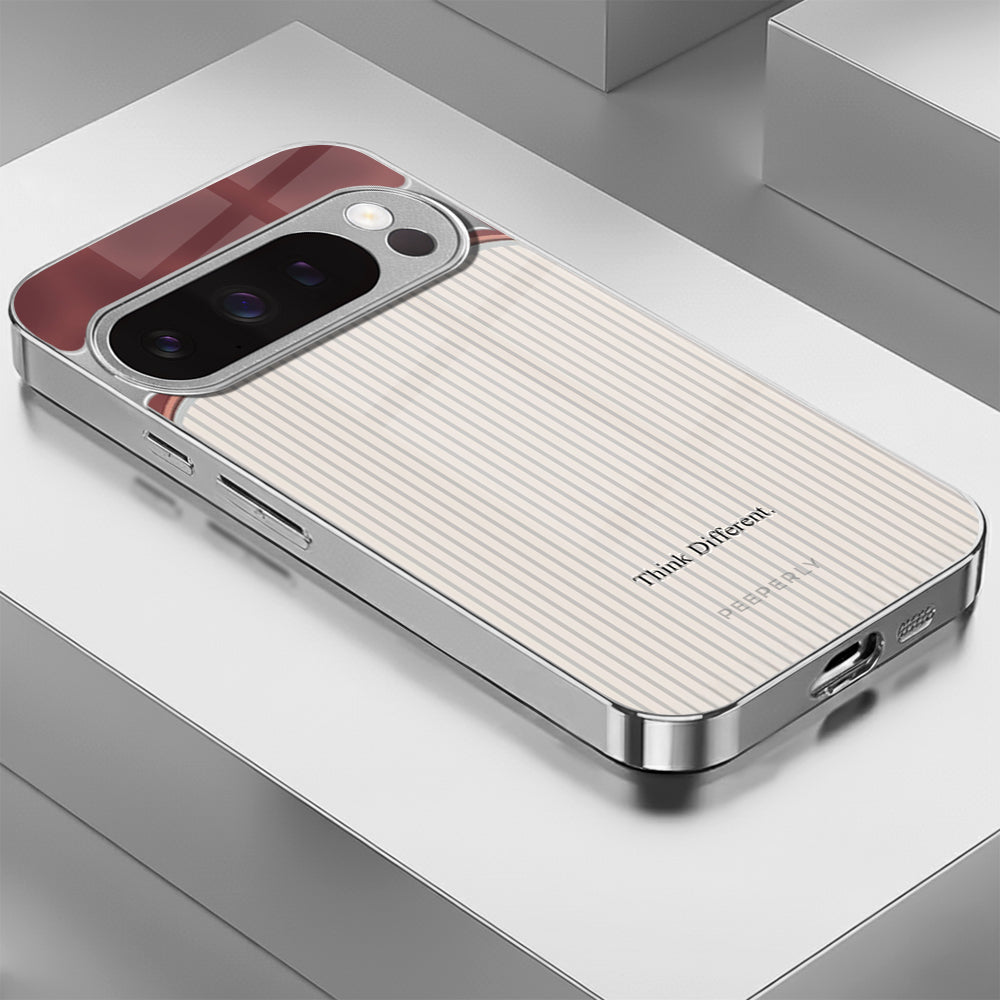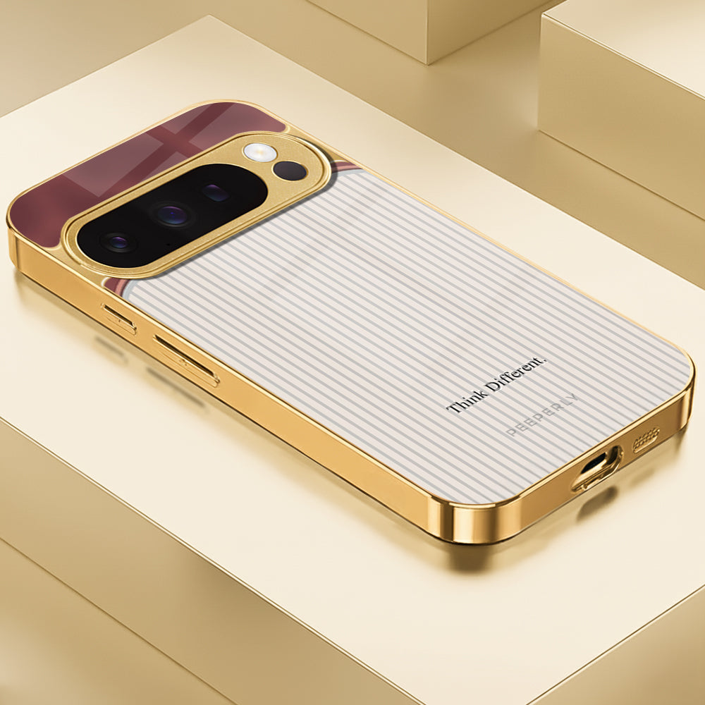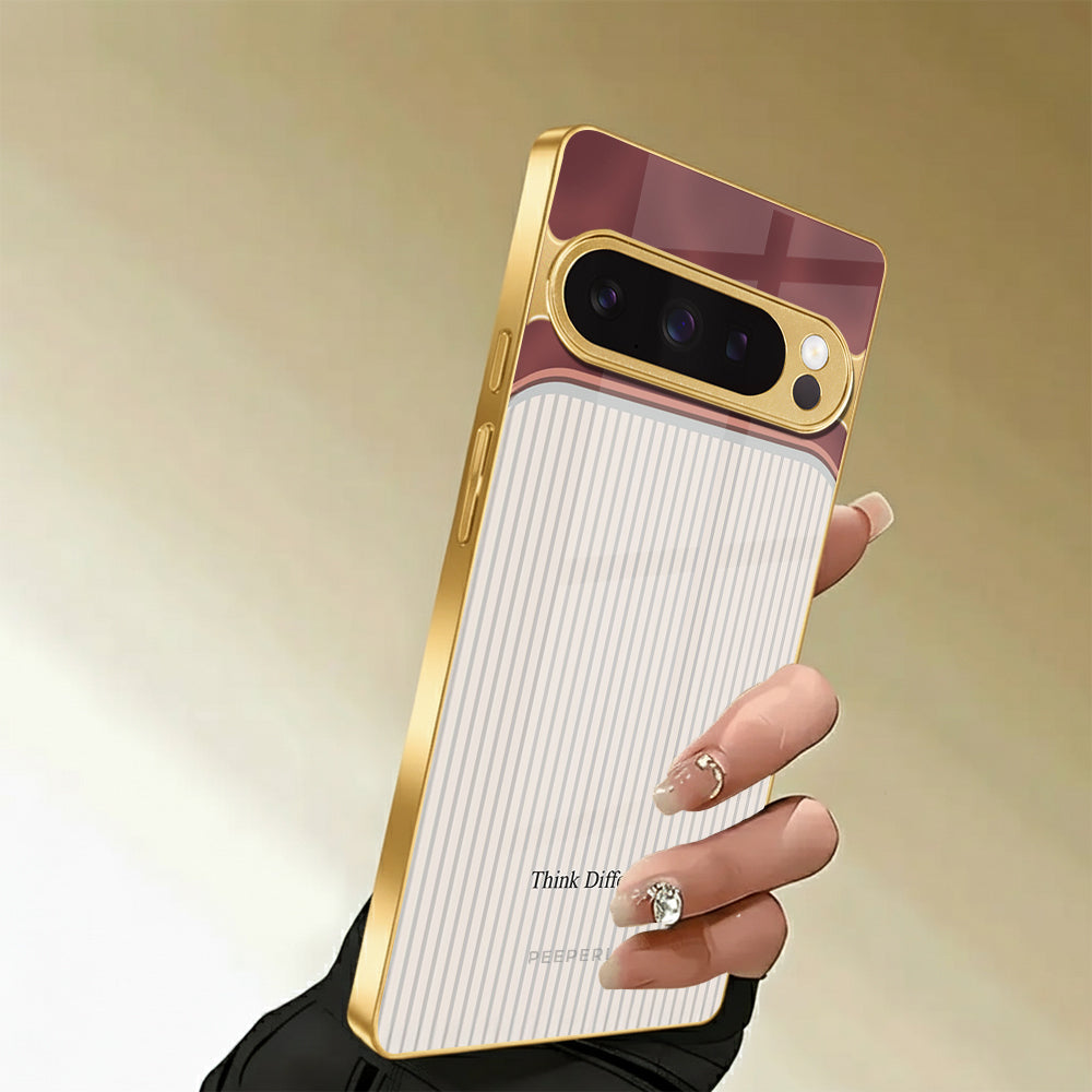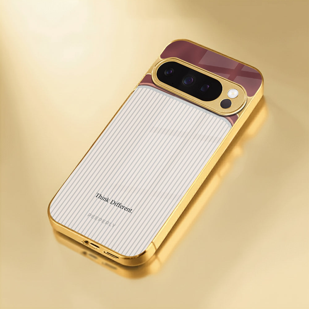 The Think Different case celebrates innovation and individuality — inspired by the spirit of creativity that dares to challenge the norm. Its dual-tone design blends a refined rose-gold metallic finish with a soft ivory striped texture, symbolizing the harmony between bold thinking and classic elegance.