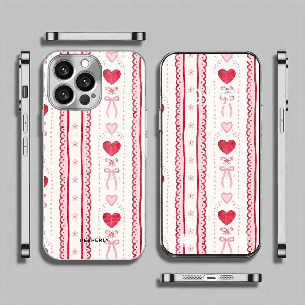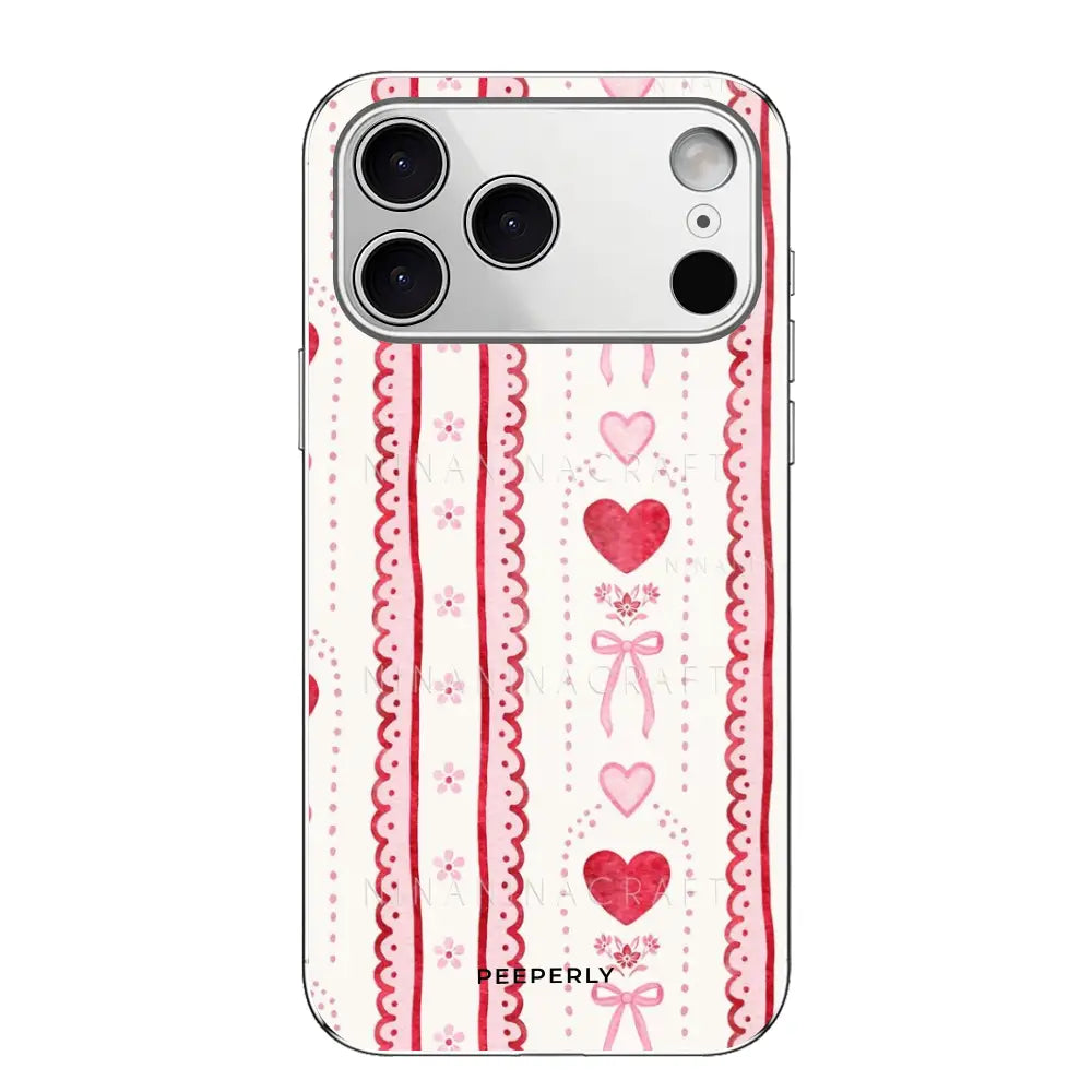 Lace Hearts — A soft, romantic design featuring delicate lace-inspired stripes, dainty bows, and sweet heart motifs. Perfect for adding a touch of vintage charm and gentle elegance to your everyday style.
