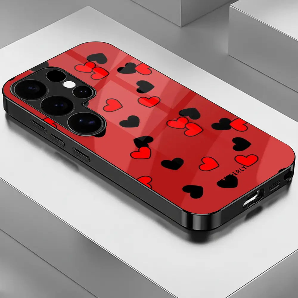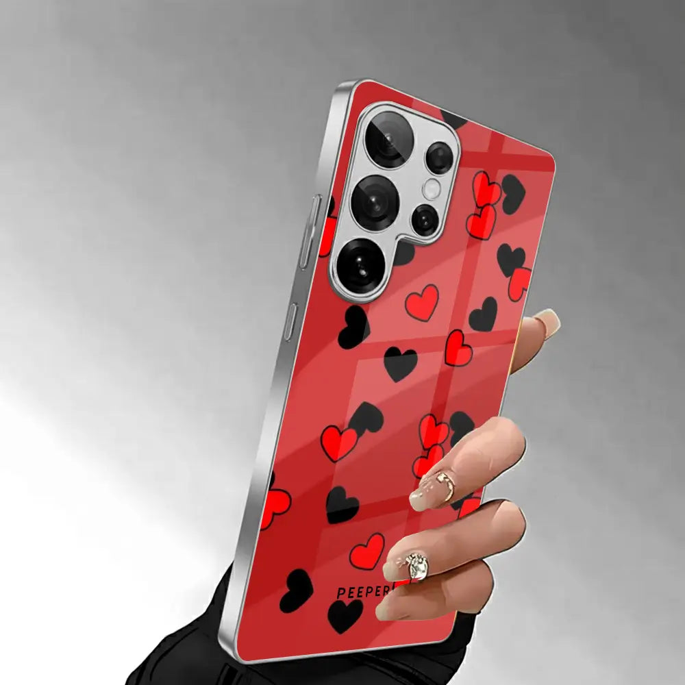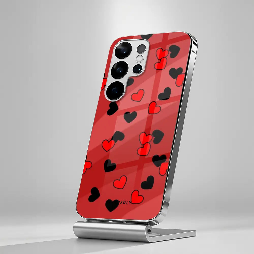 Bold Love celebrates fearless romance with a striking red base scattered in playful black and crimson hearts. The vibrant contrast creates a confident, modern look—perfect for those who wear their heart out loud and love with unapologetic style.