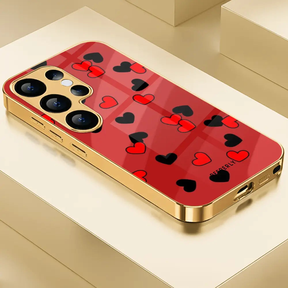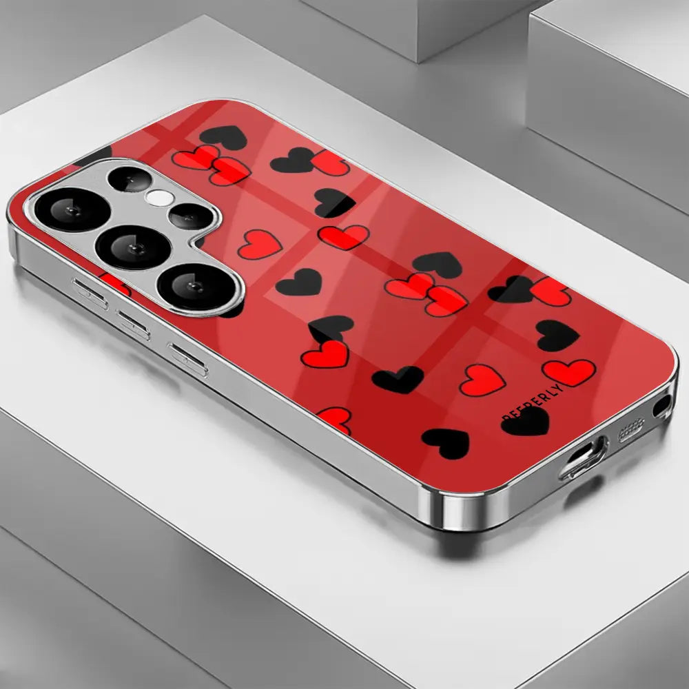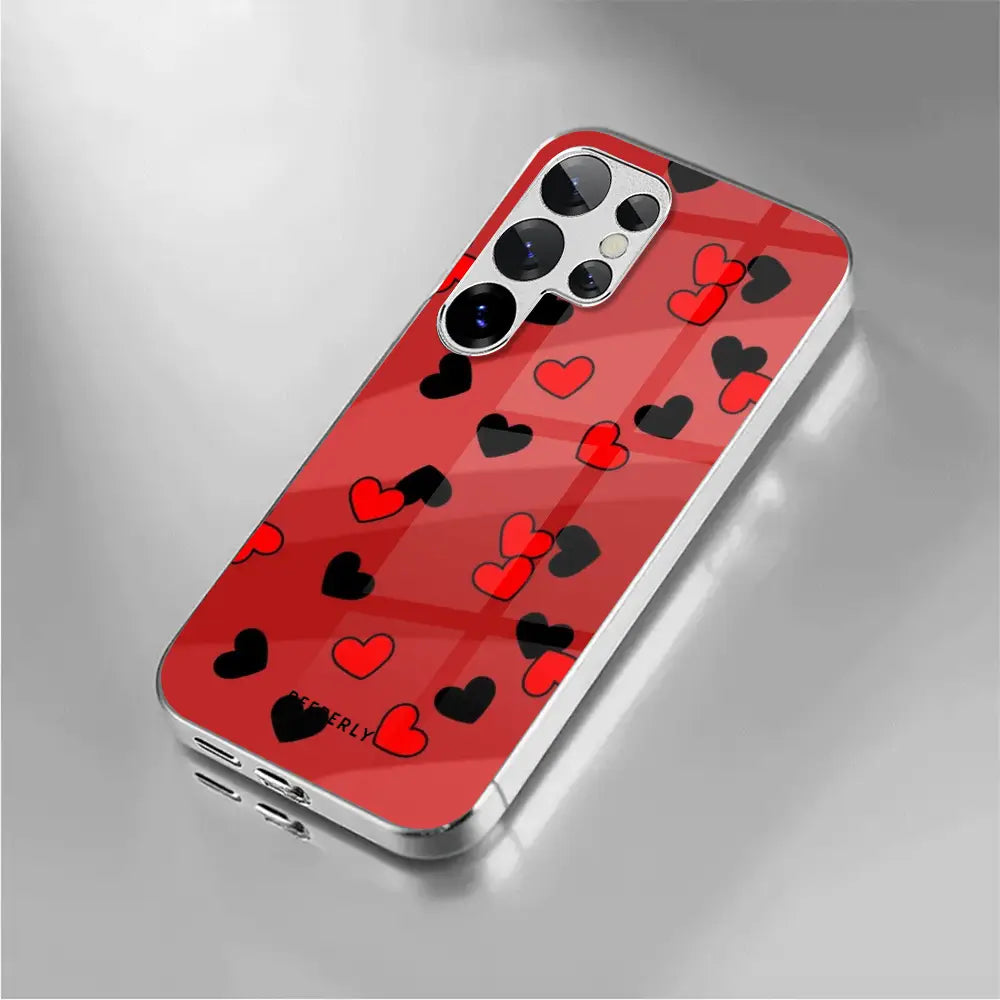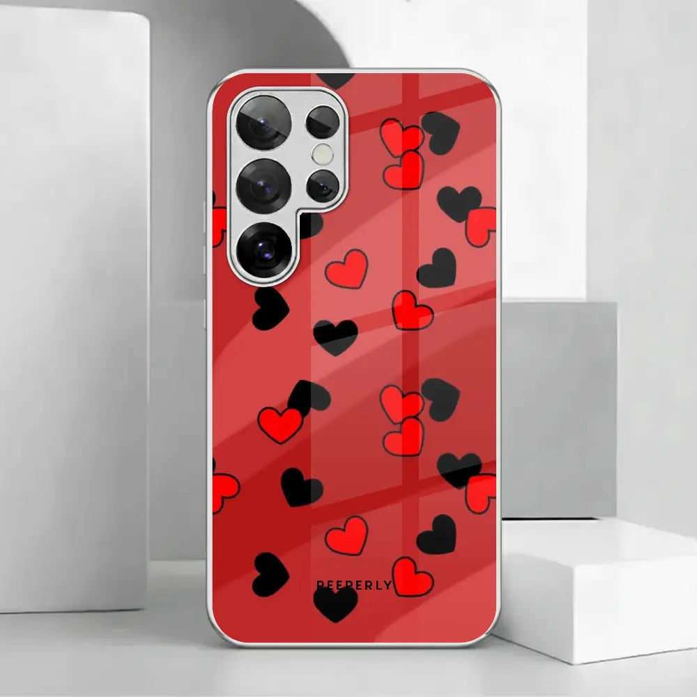 Bold Love celebrates fearless romance with a striking red base scattered in playful black and crimson hearts. The vibrant contrast creates a confident, modern look—perfect for those who wear their heart out loud and love with unapologetic style.