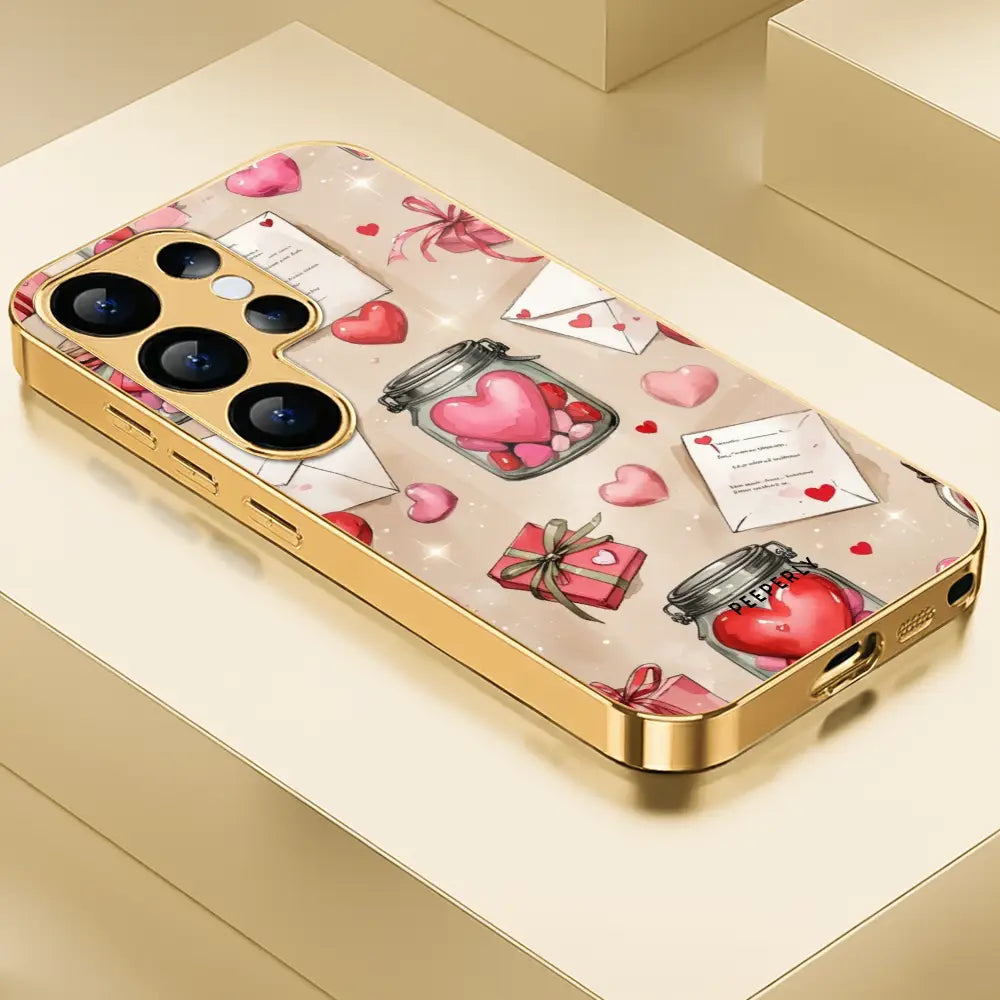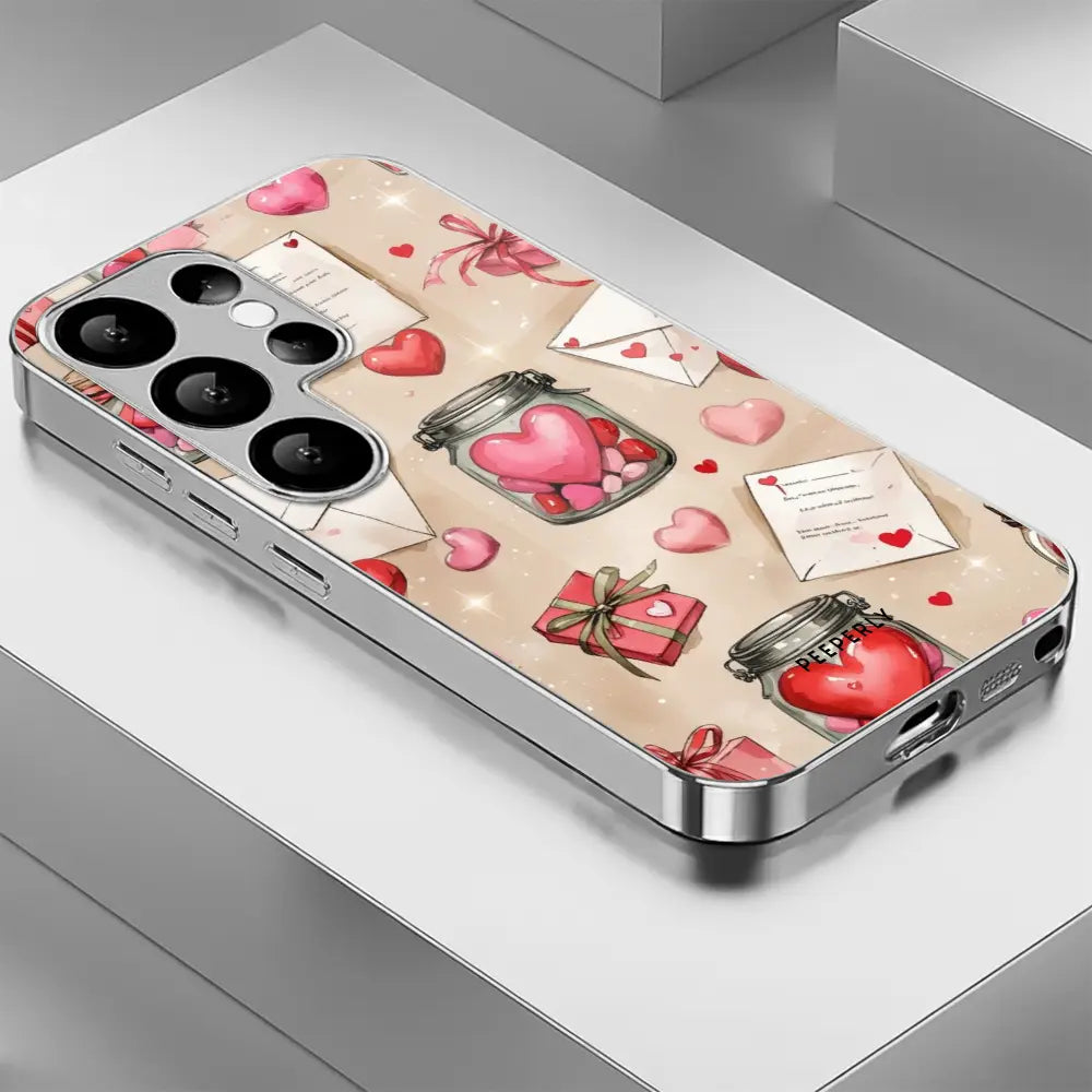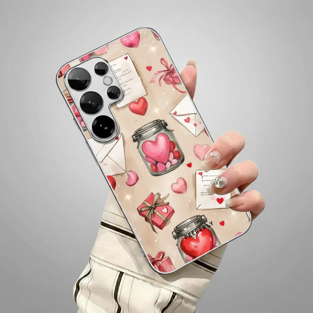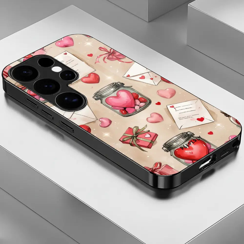 Love Keepsakes is a charming phone case that captures the magic of heartfelt memories. Featuring delicate illustrations of love letters, gift boxes, and heart-filled jars, this design celebrates the little moments that make love special.