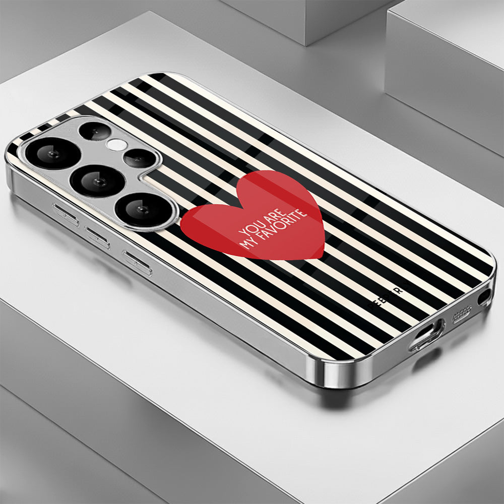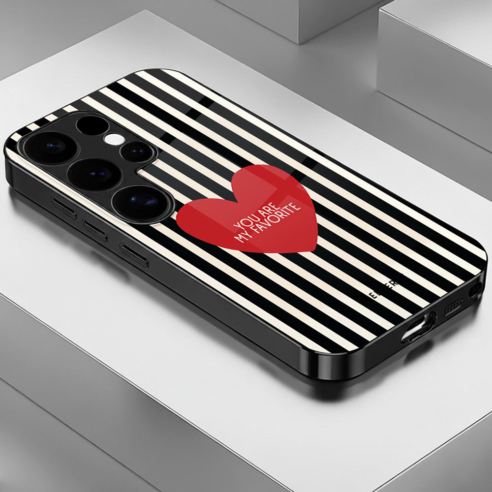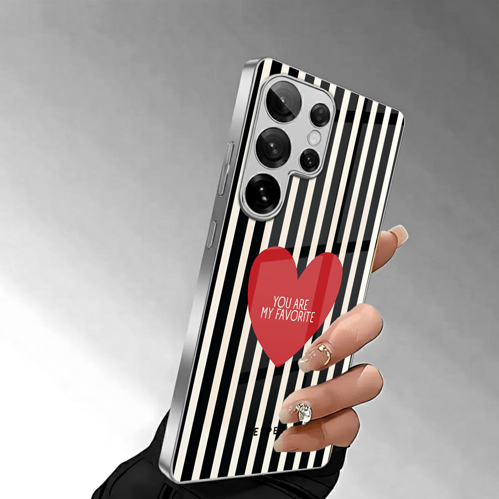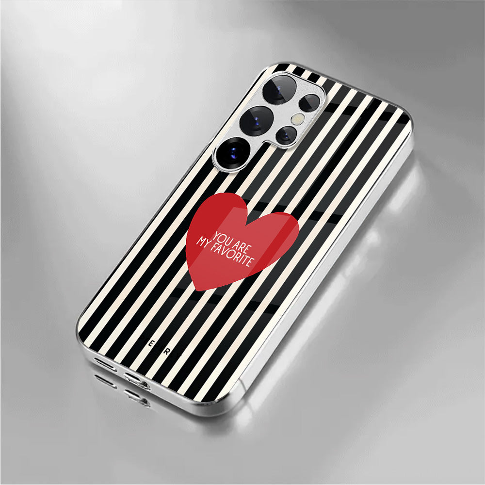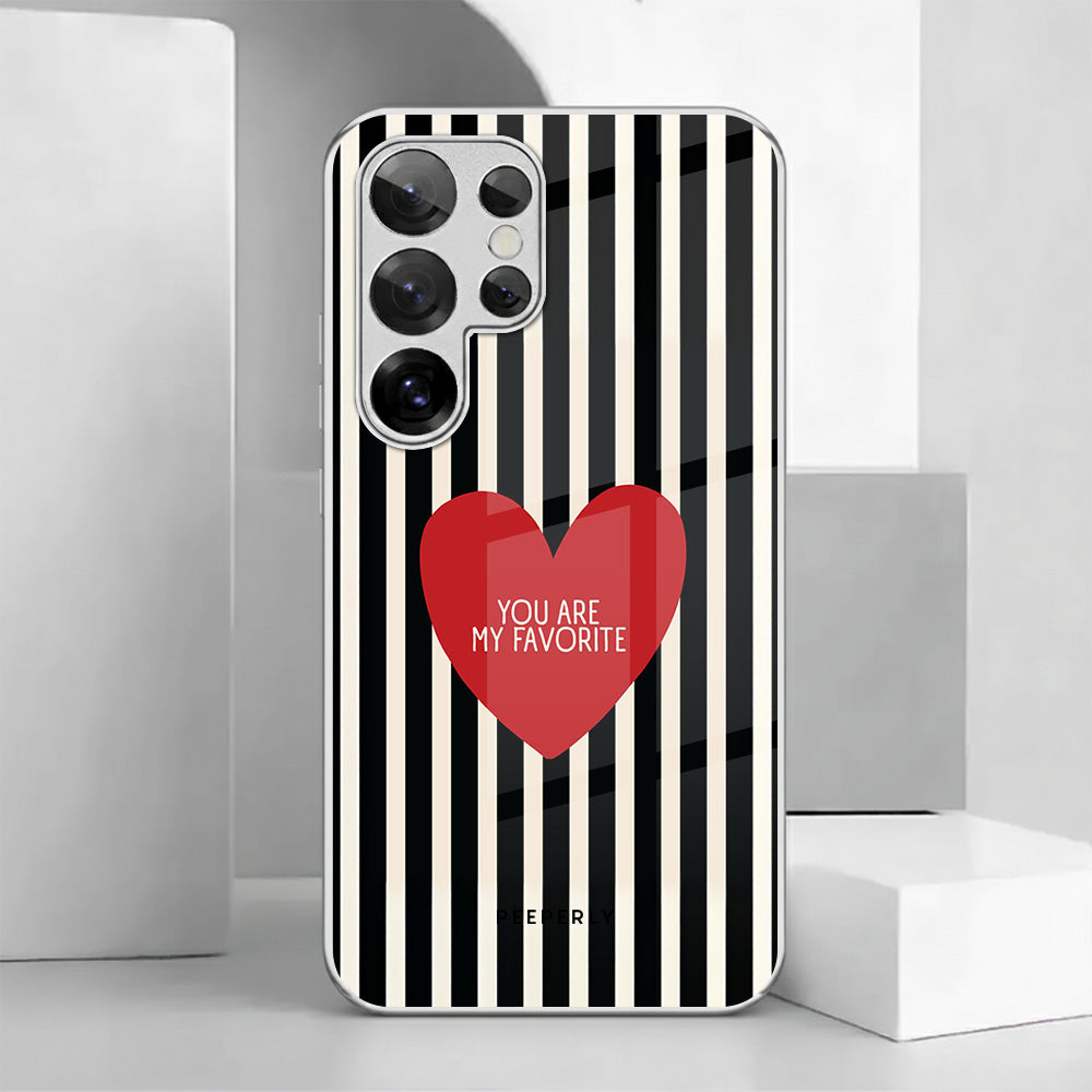 A bold declaration of love wrapped in timeless style. Featuring striking black-and-white stripes paired with a vibrant red heart, My Favorite One says it all—simple, confident, and unforgettable.