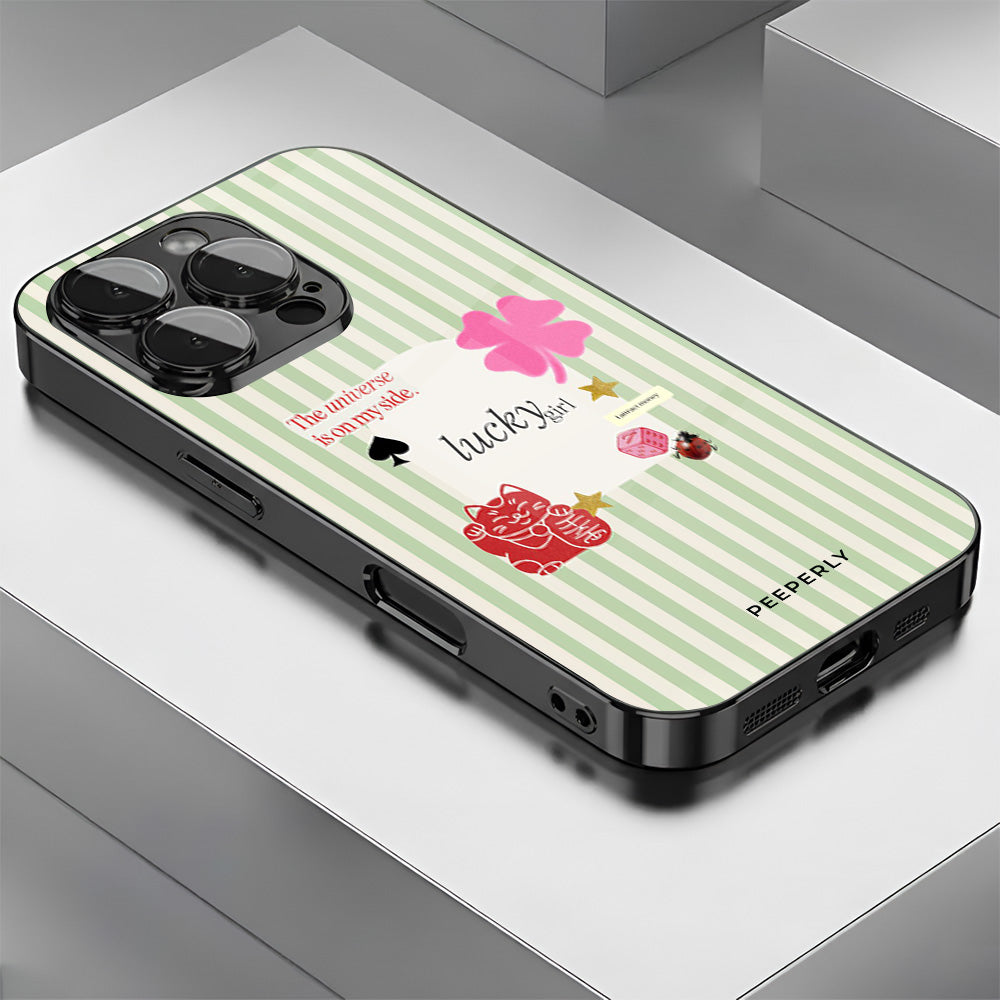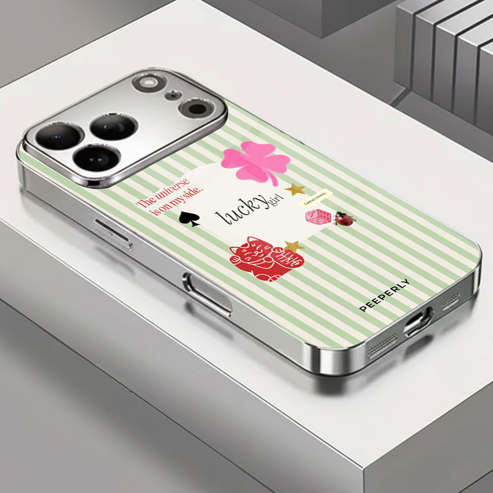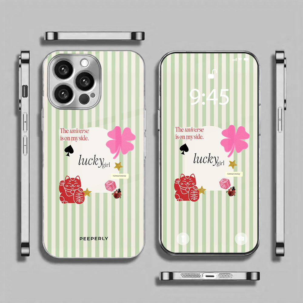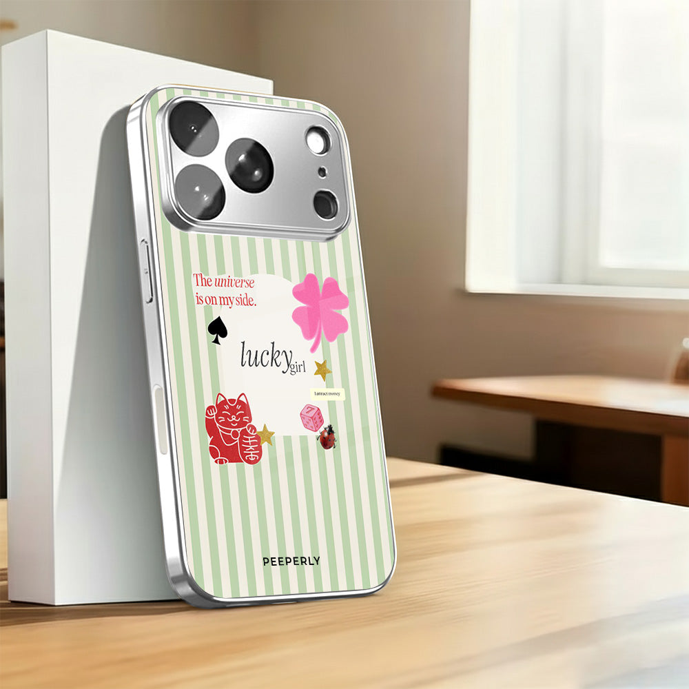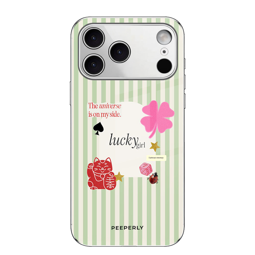 A charming blend of soft stripes and playful symbols that celebrate everyday luck. From clovers to lucky icons, this design is all about small joys, positive signs, and feel-good moments—perfect for carrying a little fortune with you wherever you go.