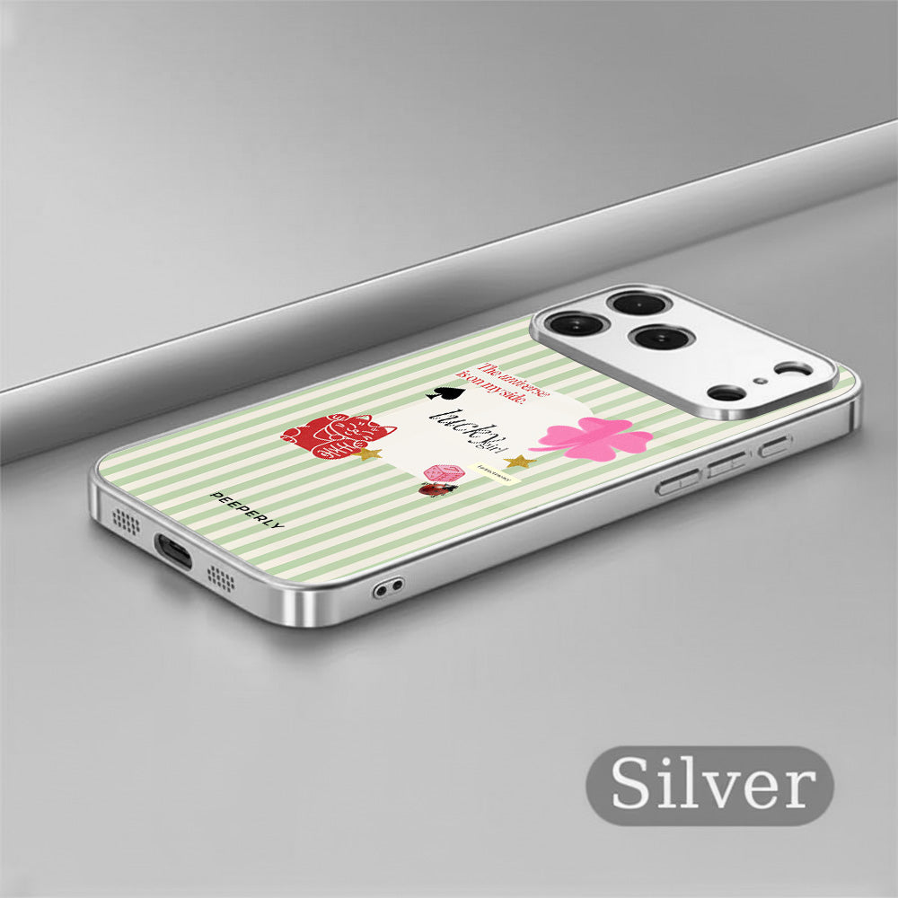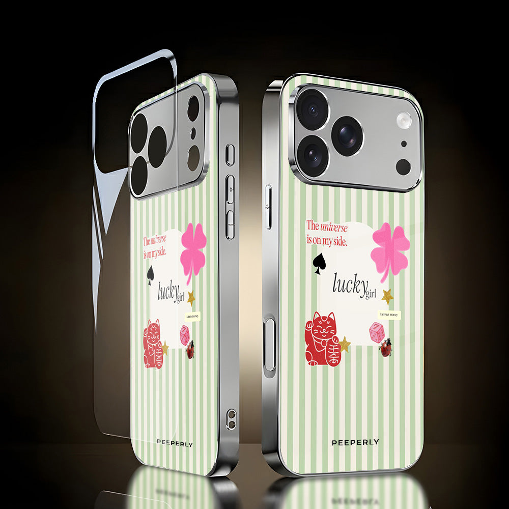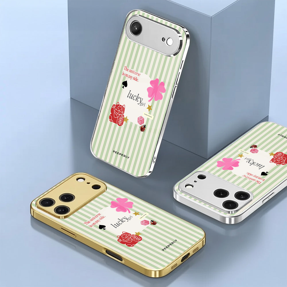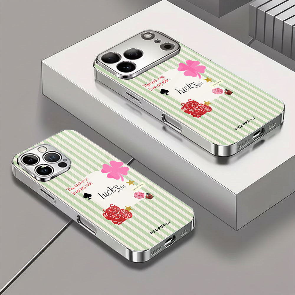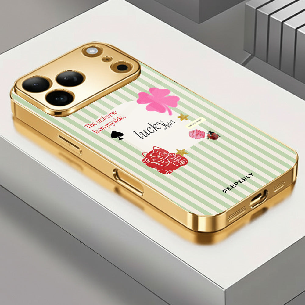 A charming blend of soft stripes and playful symbols that celebrate everyday luck. From clovers to lucky icons, this design is all about small joys, positive signs, and feel-good moments—perfect for carrying a little fortune with you wherever you go.