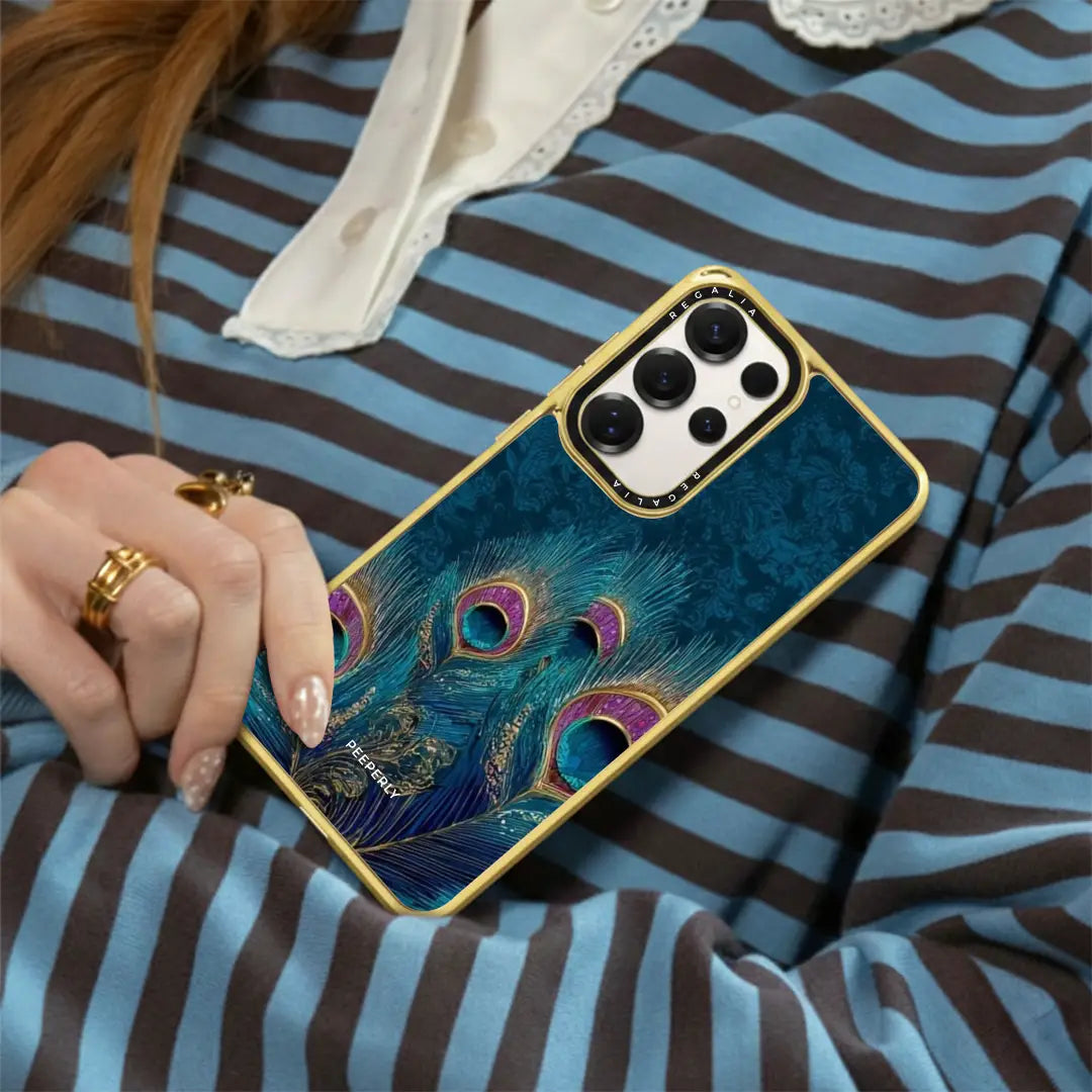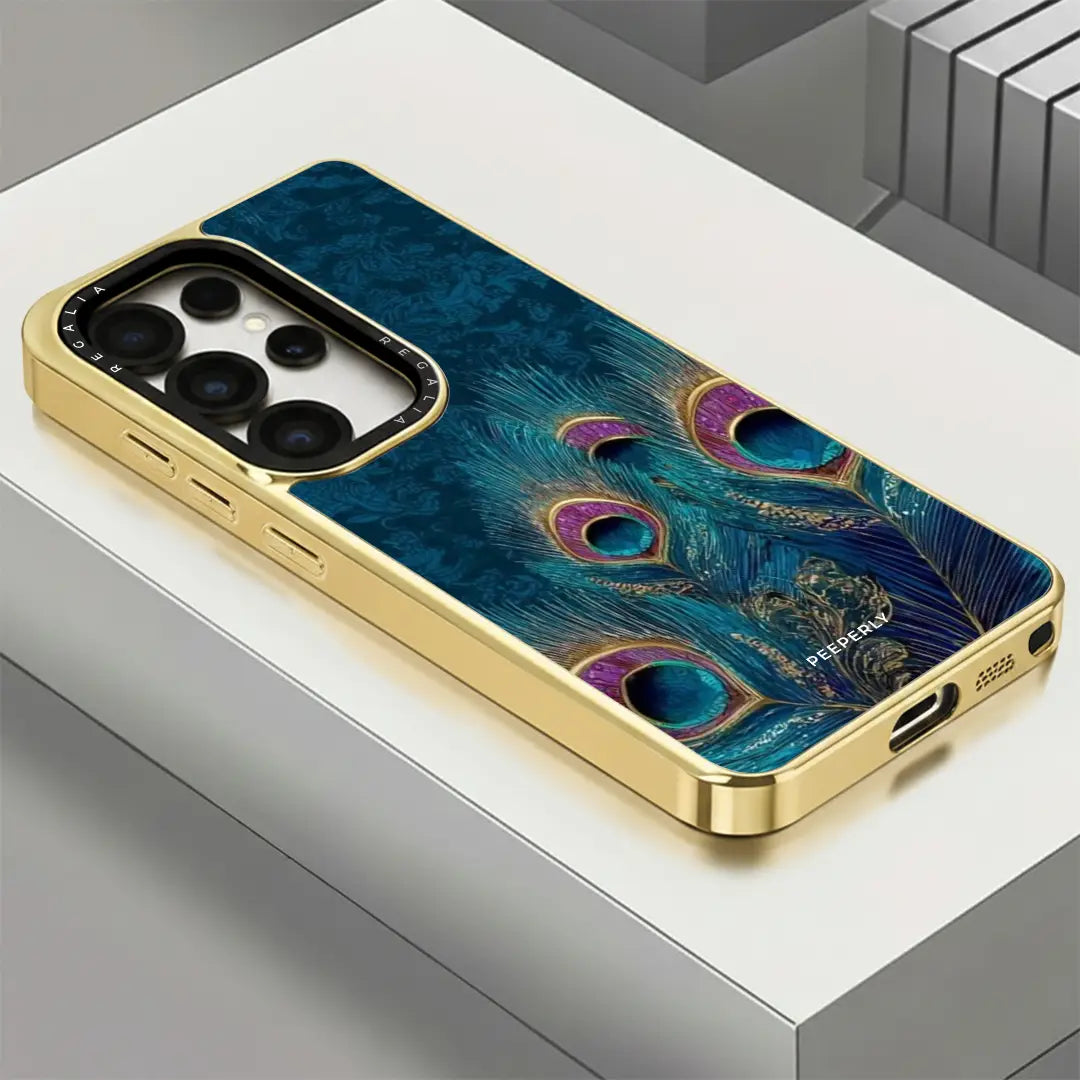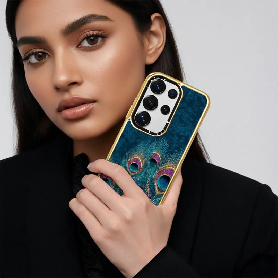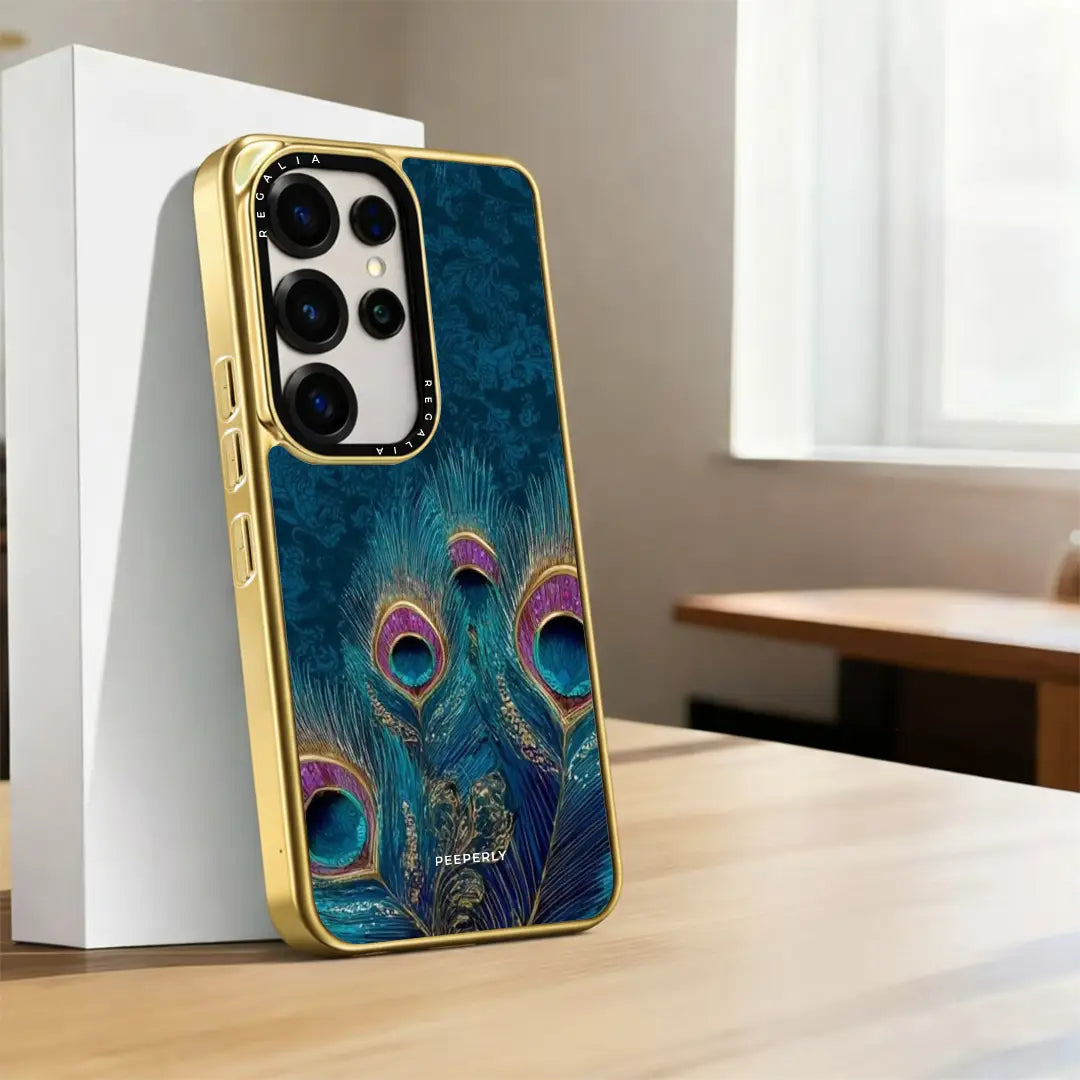 Neel Mayur draws inspiration from the peacock — a symbol of grace, beauty, and spiritual abundance. Rendered in deep sapphire blues with hints of emerald and gold, the flowing feathers create a sense of quiet luxury and celestial balance.
