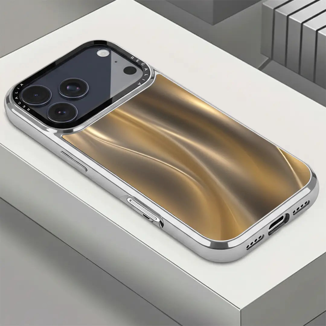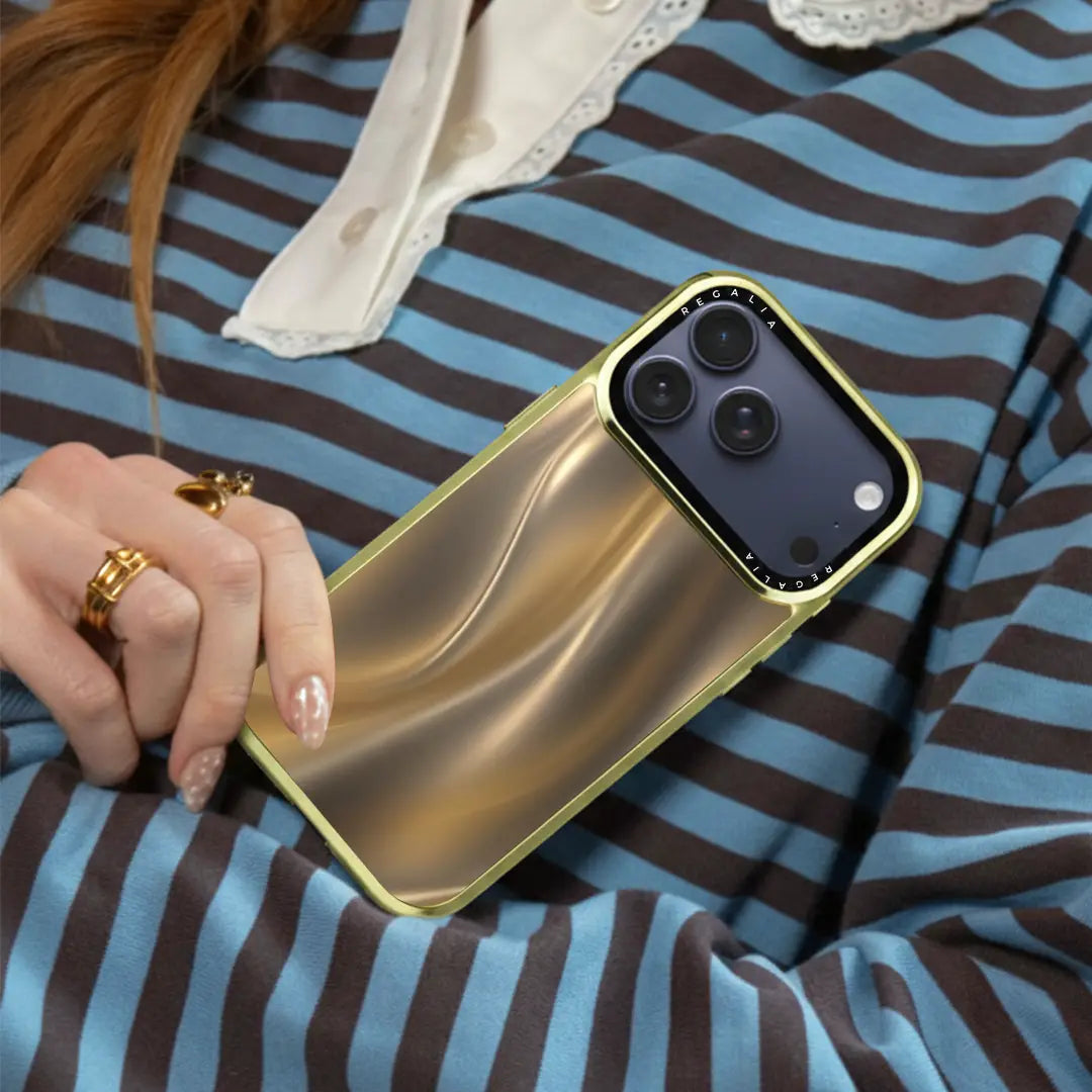 Where elegance meets motion — the Gilded Motion Case is a statement of pure sophistication. Designed with a fluid gold wave pattern that catches the light beautifully, this case radiates warmth, luxury, and confidence. The sleek reflective finish creates a sense of movement and depth, turning your phone into a piece of modern art.