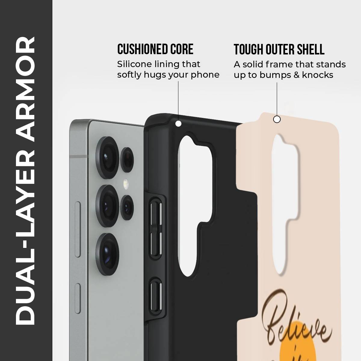 Carry a daily dose of motivation with the Believe In Yourself Case. Featuring a warm sunrise-inspired design with bold typography, this case is a reminder to stay confident and positive every day. The soft beige background with vibrant yellow arcs creates a modern, uplifting aesthetic that blends style with encouragement.