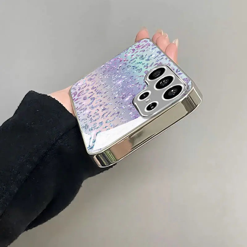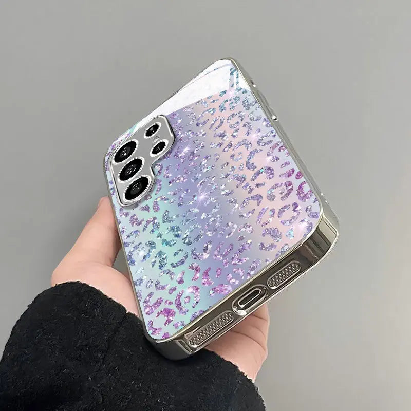Unleash your bold side with the mesmerizing Iridescent Wild case — where untamed spirit meets ethereal shine. This design blends a soft pastel gradient with a glitter-infused leopard pattern, creating a captivating fusion of wild elegance and modern glamour.