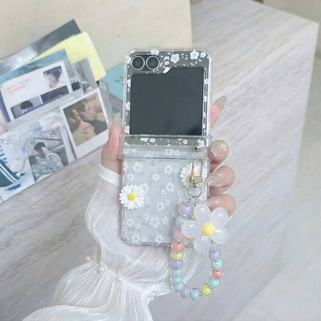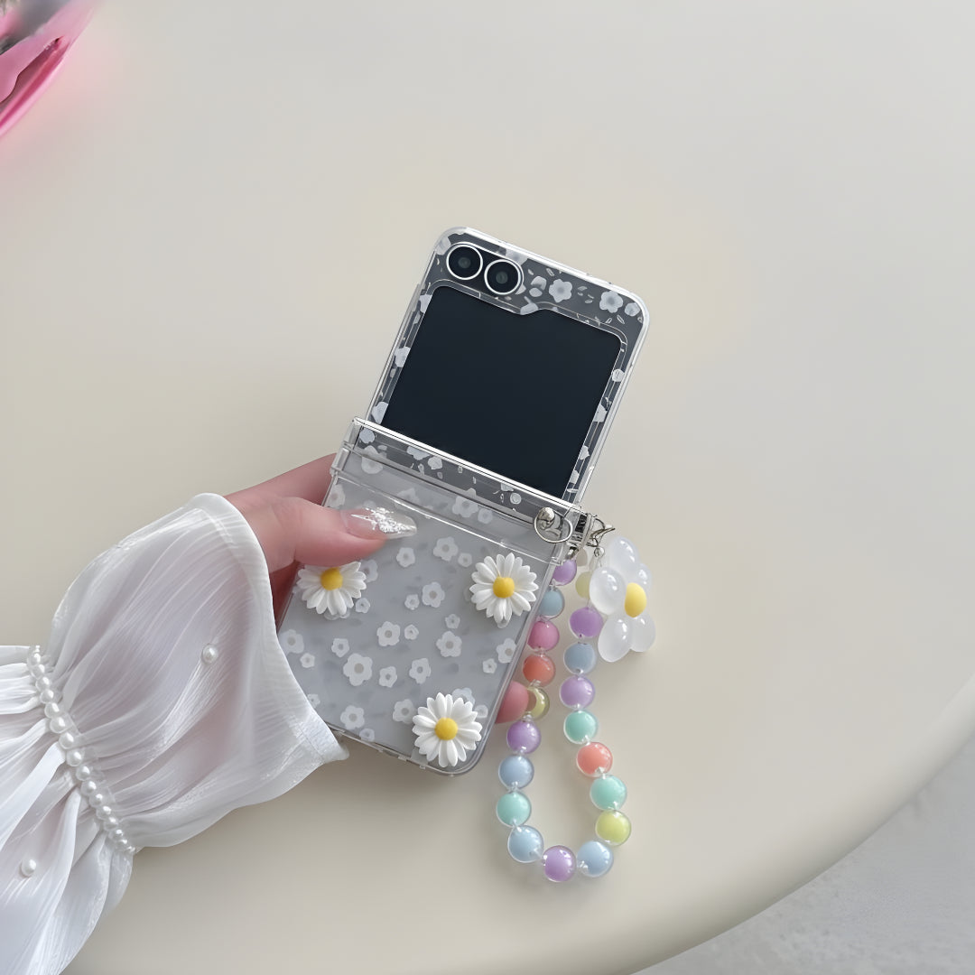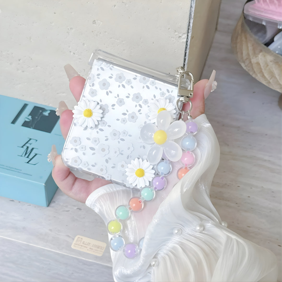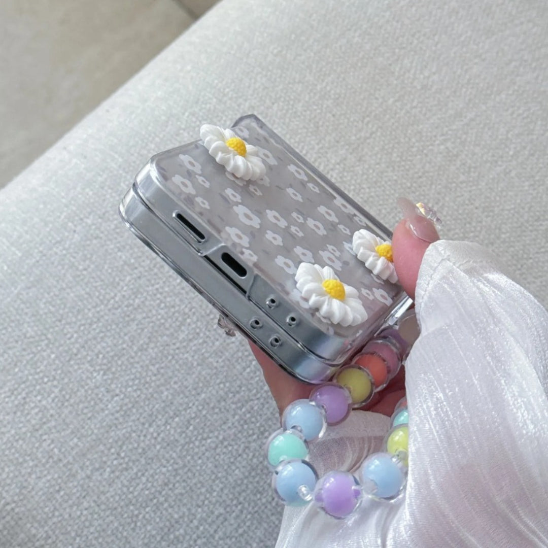 Add a touch of charm and elegance to your everyday style with the Lush Bloom Floral Wrist Case. Designed to perfectly blend fashion and function, this case features delicate floral patterns with 3D daisy accents and a pastel beaded wrist charm for effortless carrying.