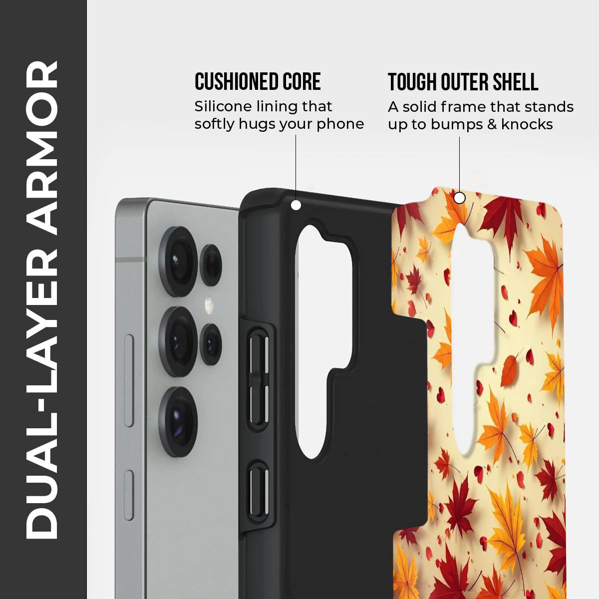 Swirl into the cozy charm of autumn with Maple Whirl, a phone case that captures the magic of falling leaves in vivid reds, oranges, and golds. Inspired by nature’s seasonal ballet, this case blends elegance with warmth, making your phone feel like a crisp autumn day in your hand.