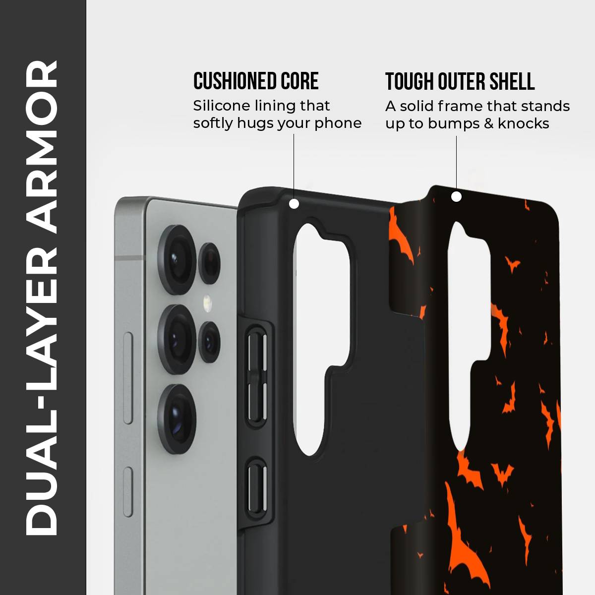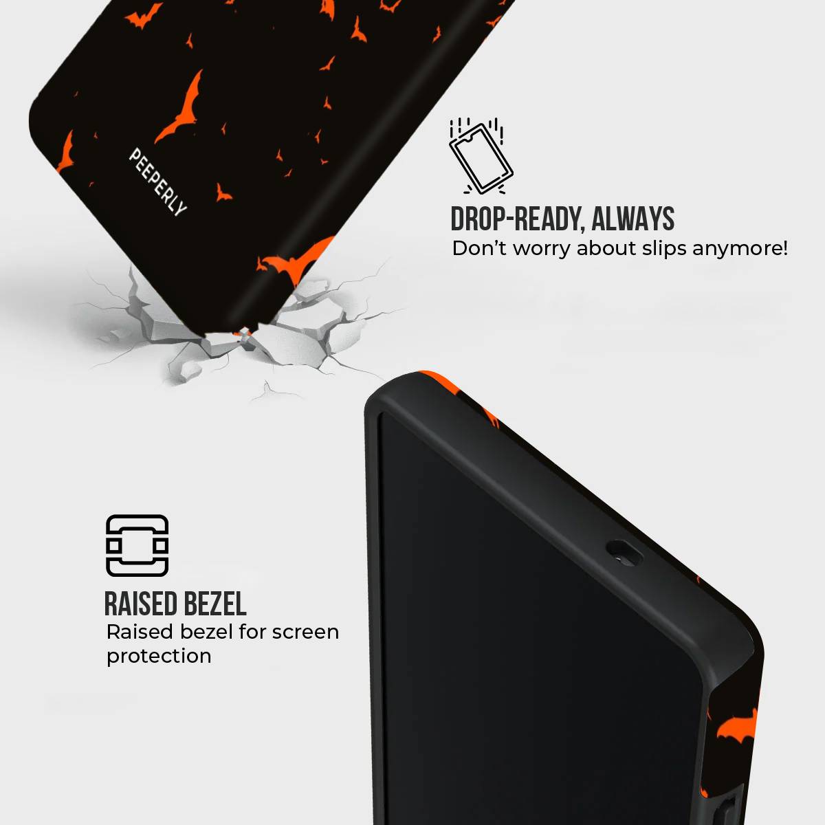 Nightfire Bats ignites your phone with a bold and mysterious design. Against a deep dark backdrop, glowing bat silhouettes soar like sparks across the night sky, creating an electrifying mix of drama and style.