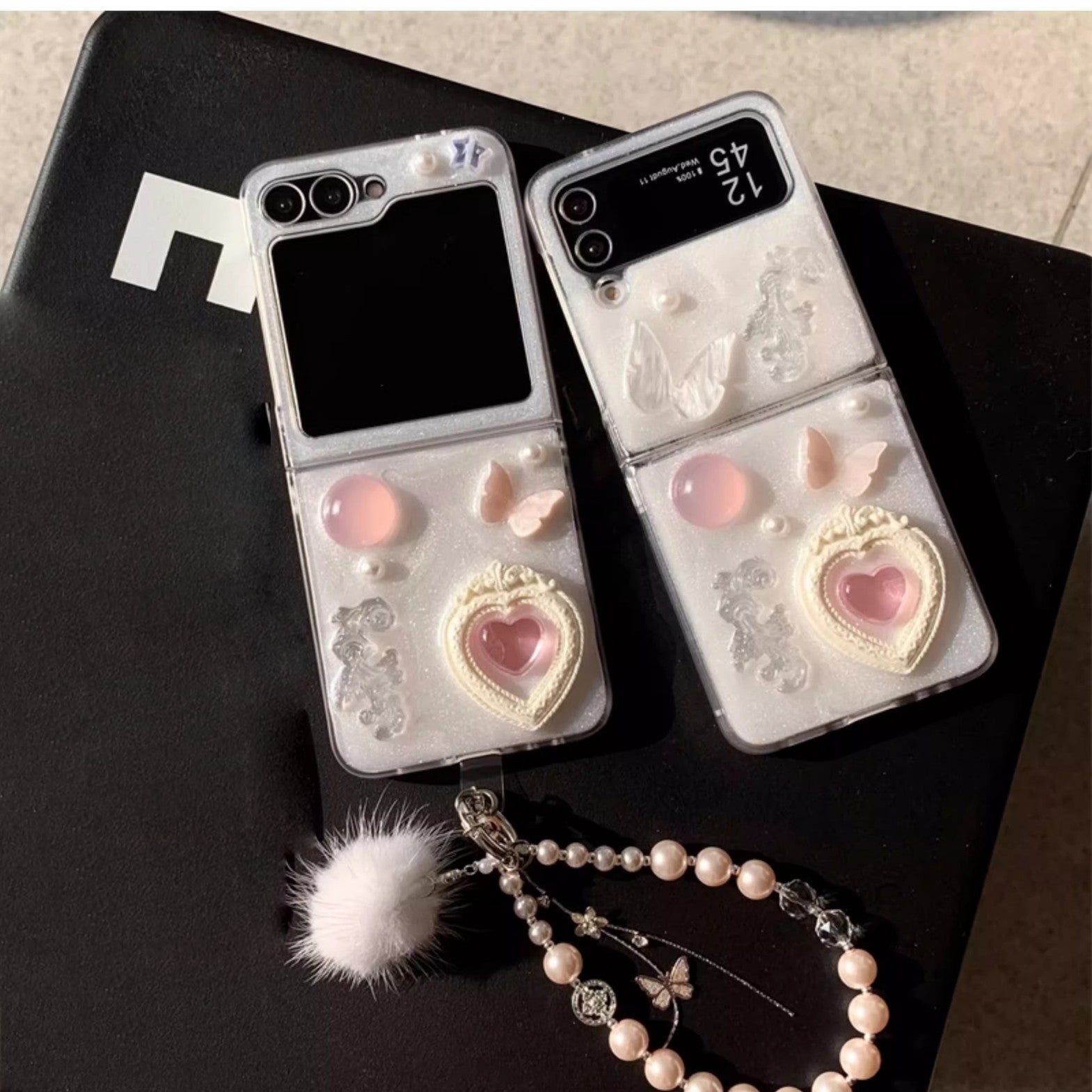 Step into a dream of elegance with Pearl Reverie — a case that captures the essence of soft romance and timeless beauty. Adorned with delicate pearls, sculpted butterflies, and a pastel heart centerpiece, this design glows with a gentle, ethereal charm.