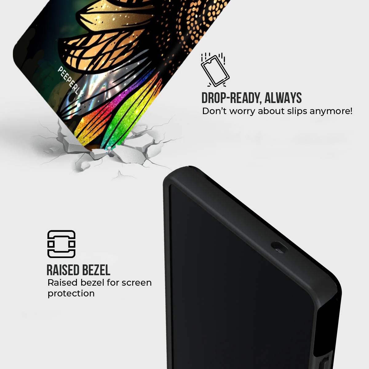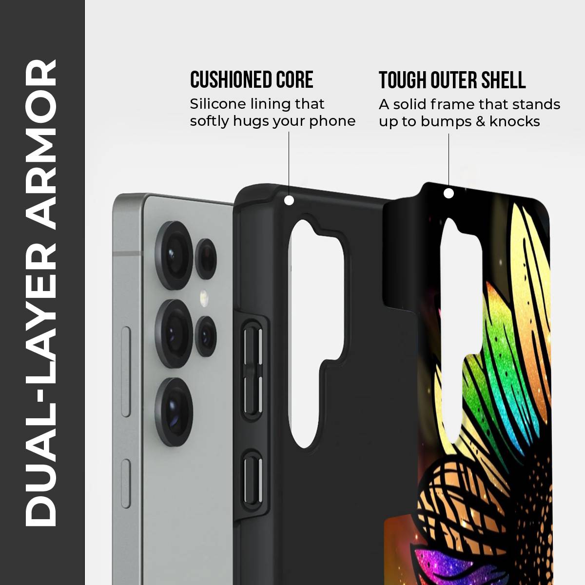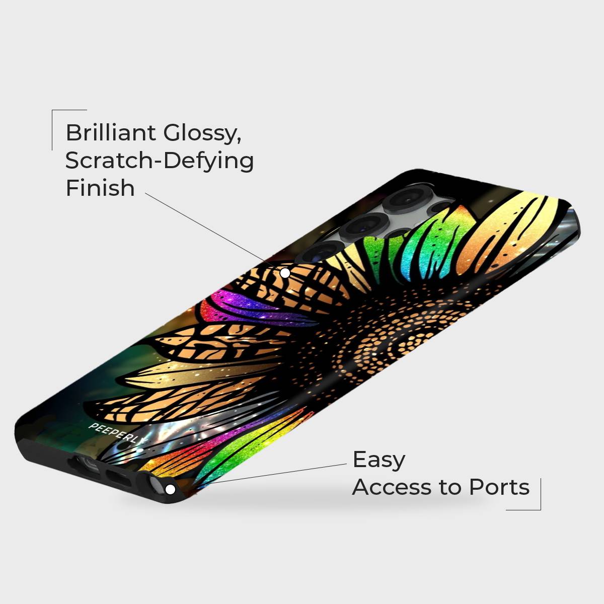 Unleash the energy of light and color with the Solar Bloom Case, a dazzling fusion of nature and artistry. Designed with a bold sunflower motif bursting into vibrant rainbow shades, this case captures the warmth of the sun and the brilliance of a prism. Each petal glows with intricate details, making your phone stand out as a true work of art.