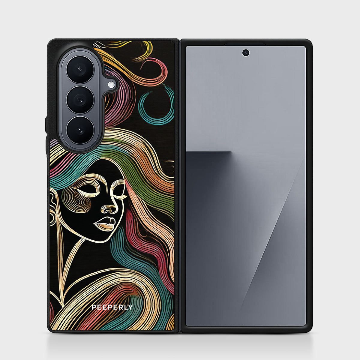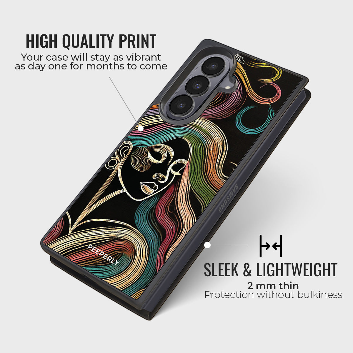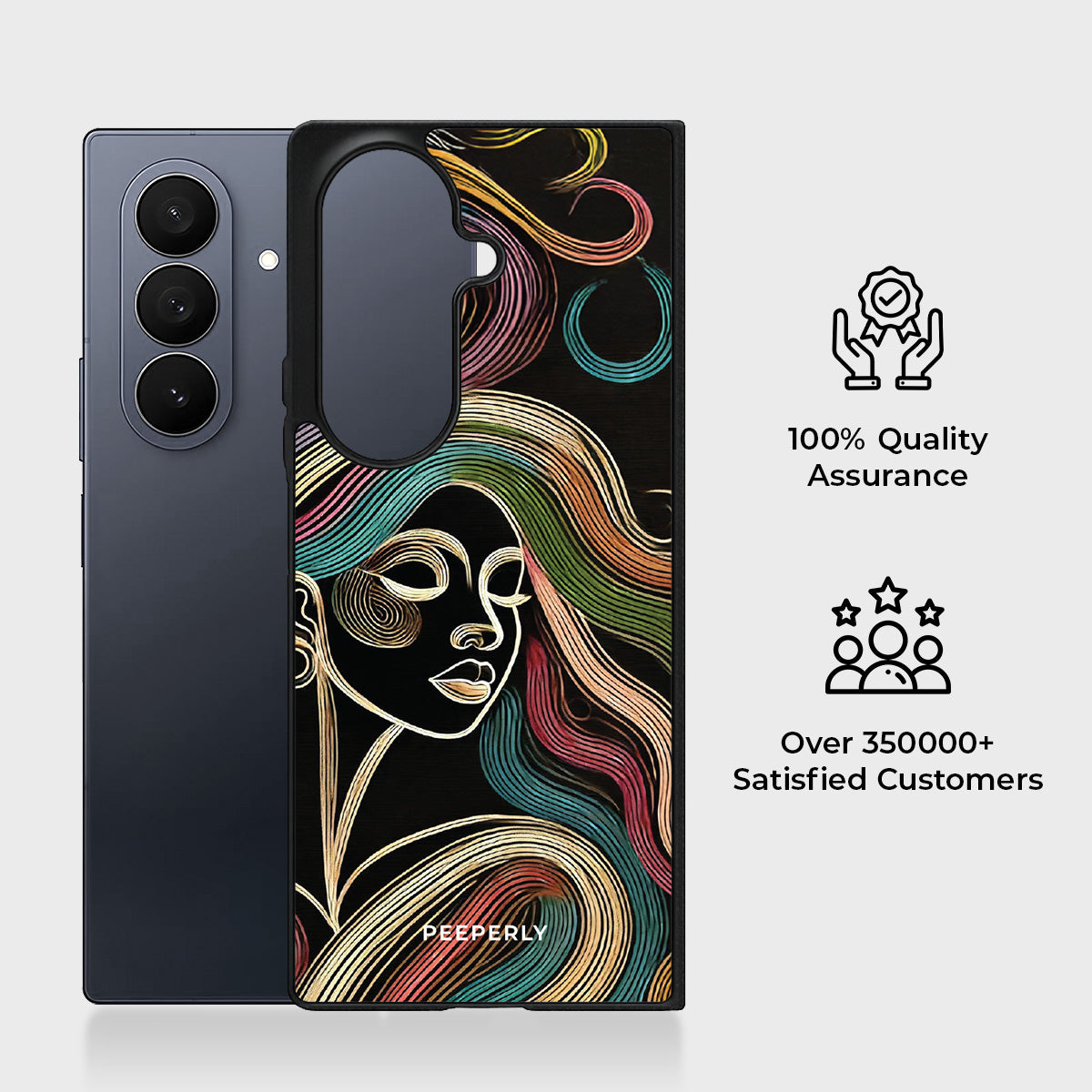 "Soul in Strokes" is a title that captures the essence of the design through an elegant yet abstract lens. The combination of flowing, colorful lines that form the face evokes a sense of deep expression and emotion.